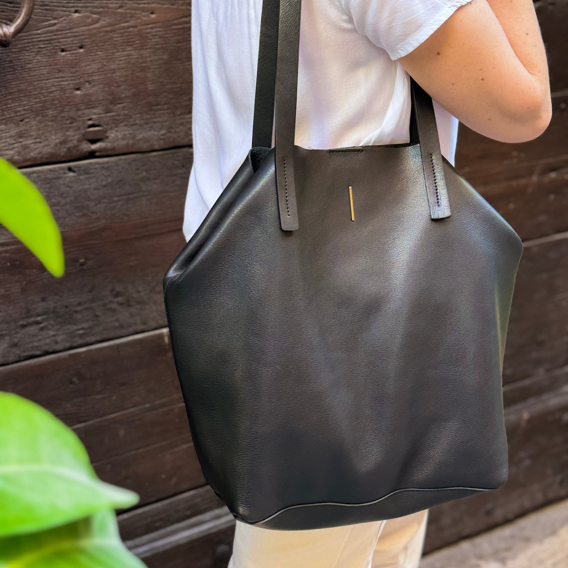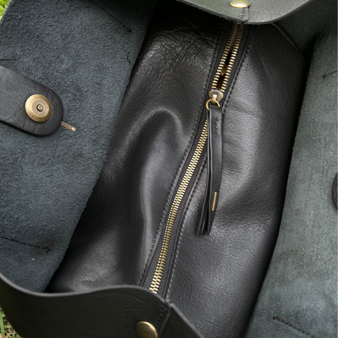 Shopper dallo stile deciso, realizzata in pelle ingrassata nera dal finish naturale e corposo. L’inserto interno con zip offre struttura e funzionalità, senza compromettere la morbidezza della linea. Una compagna affidabile per ogni giorno, resistente e piena di carattere.