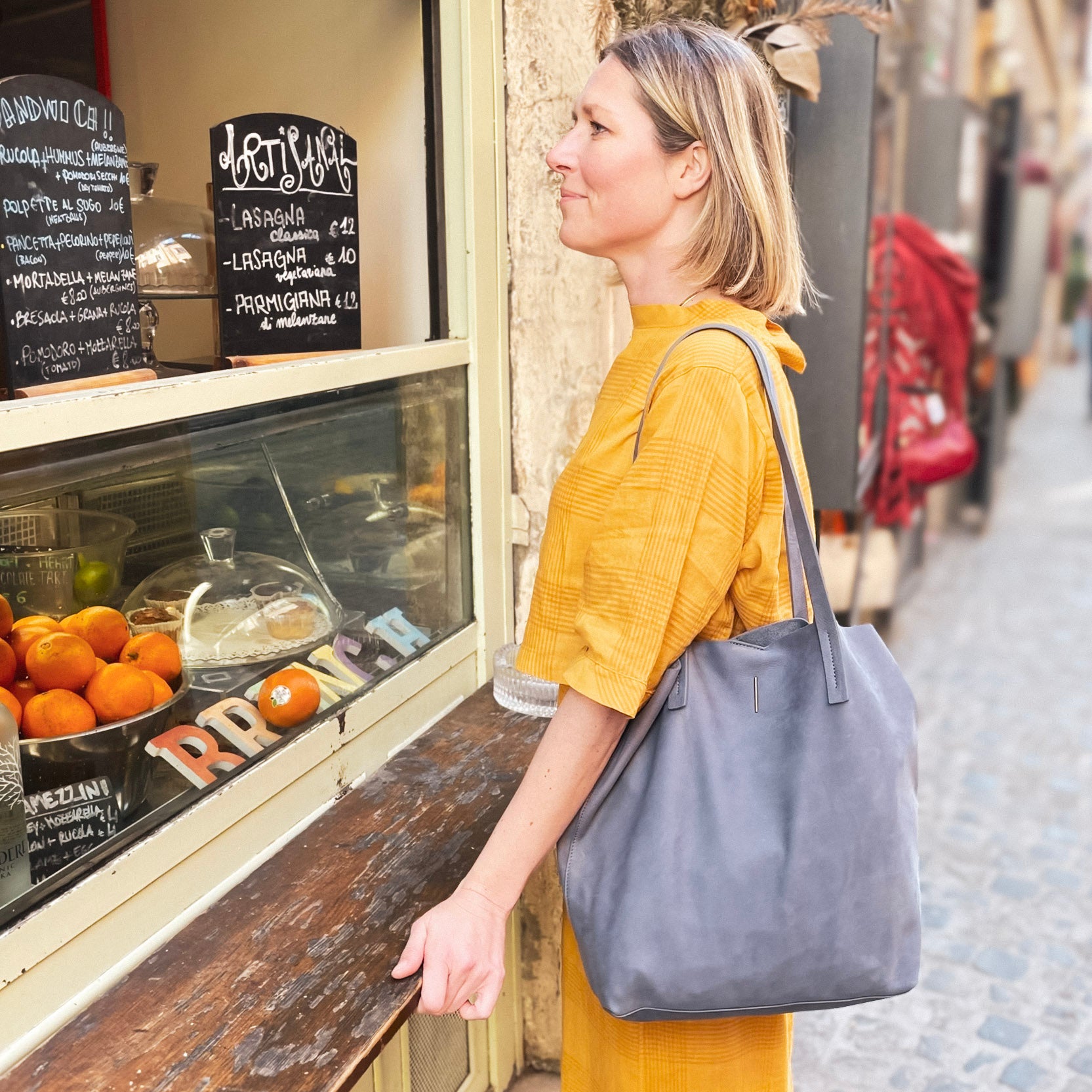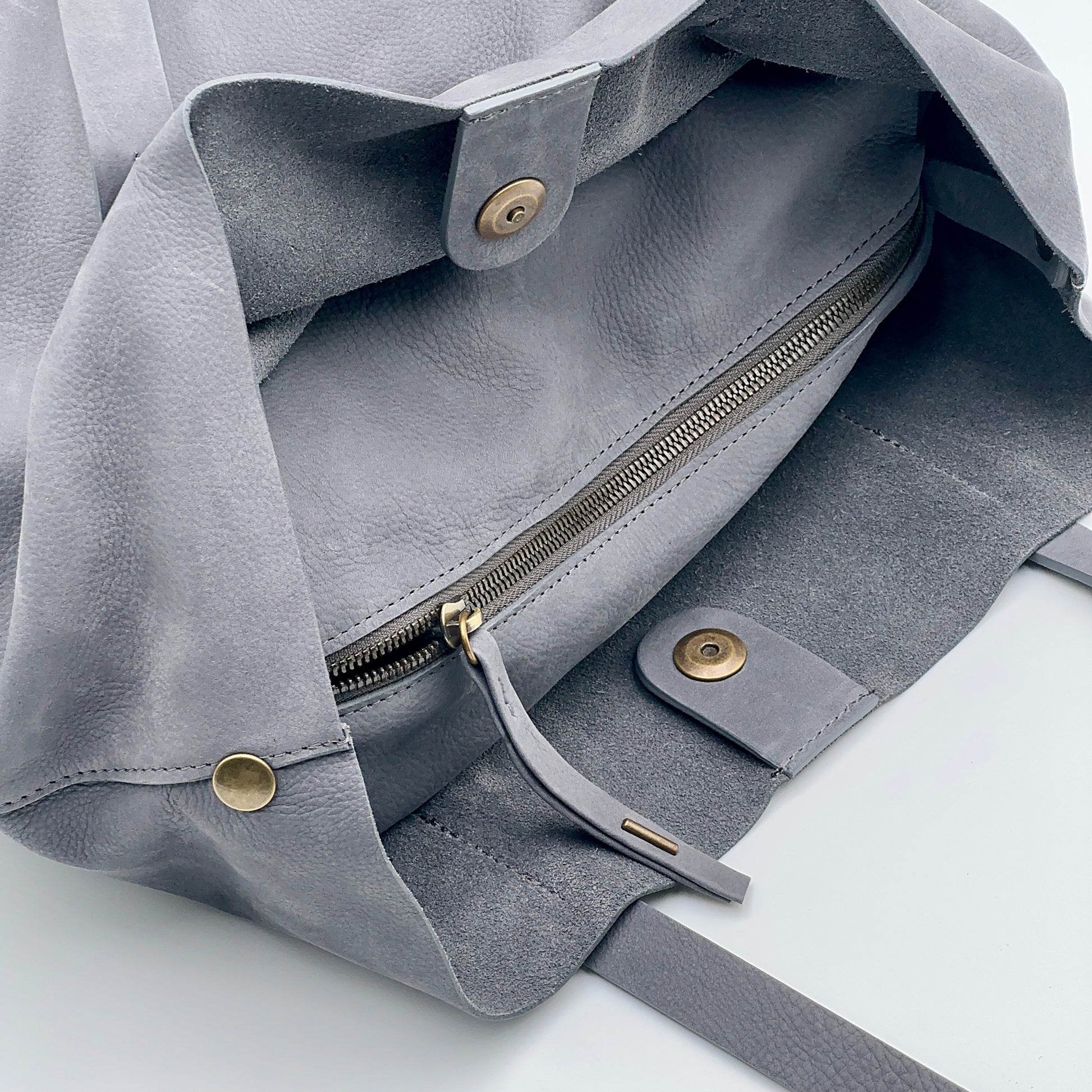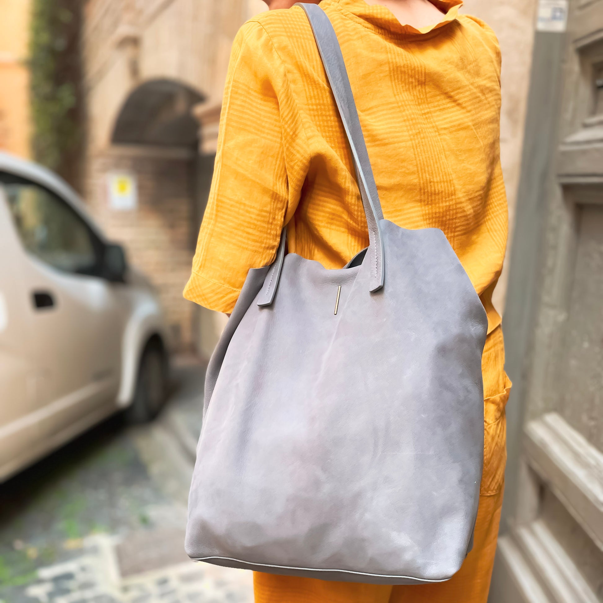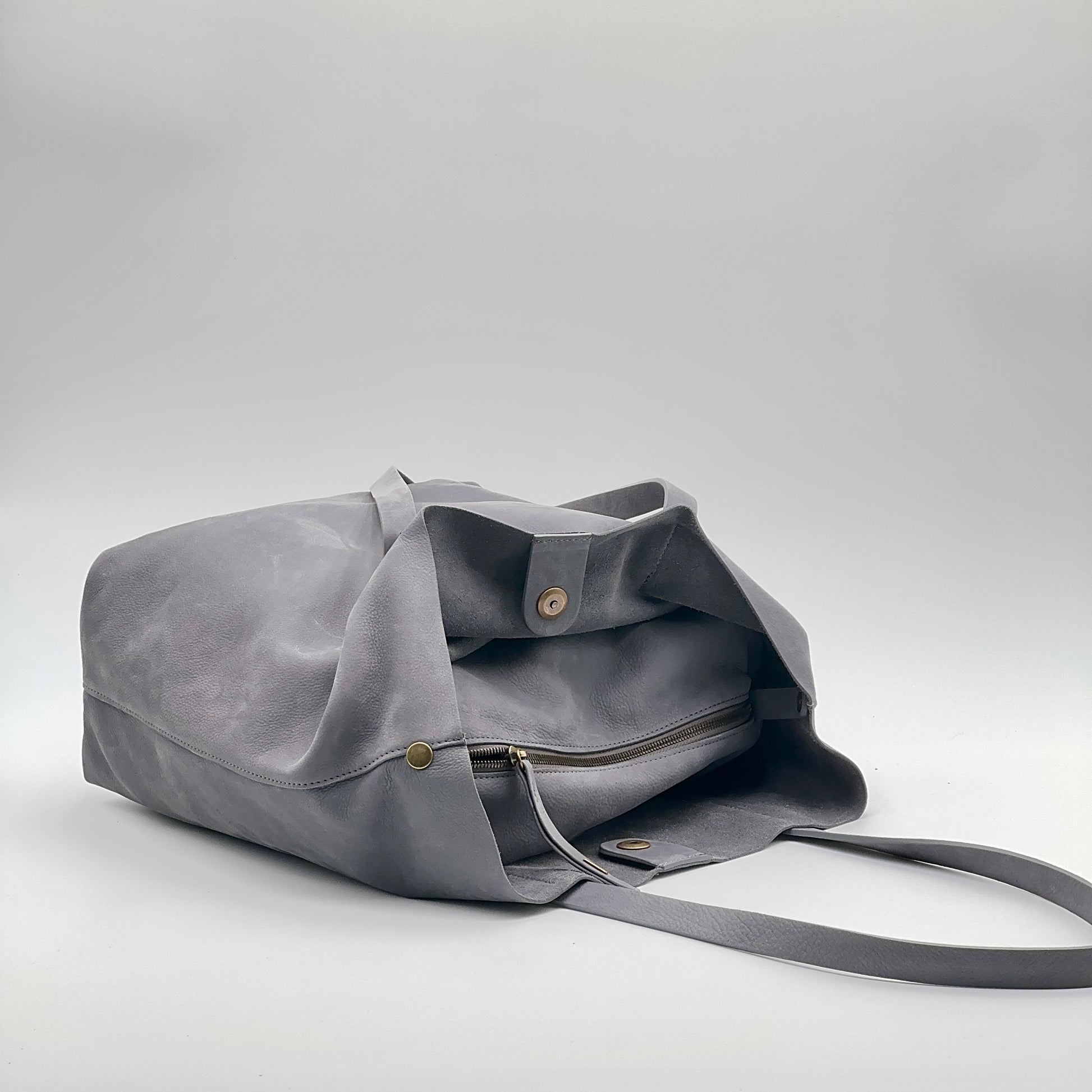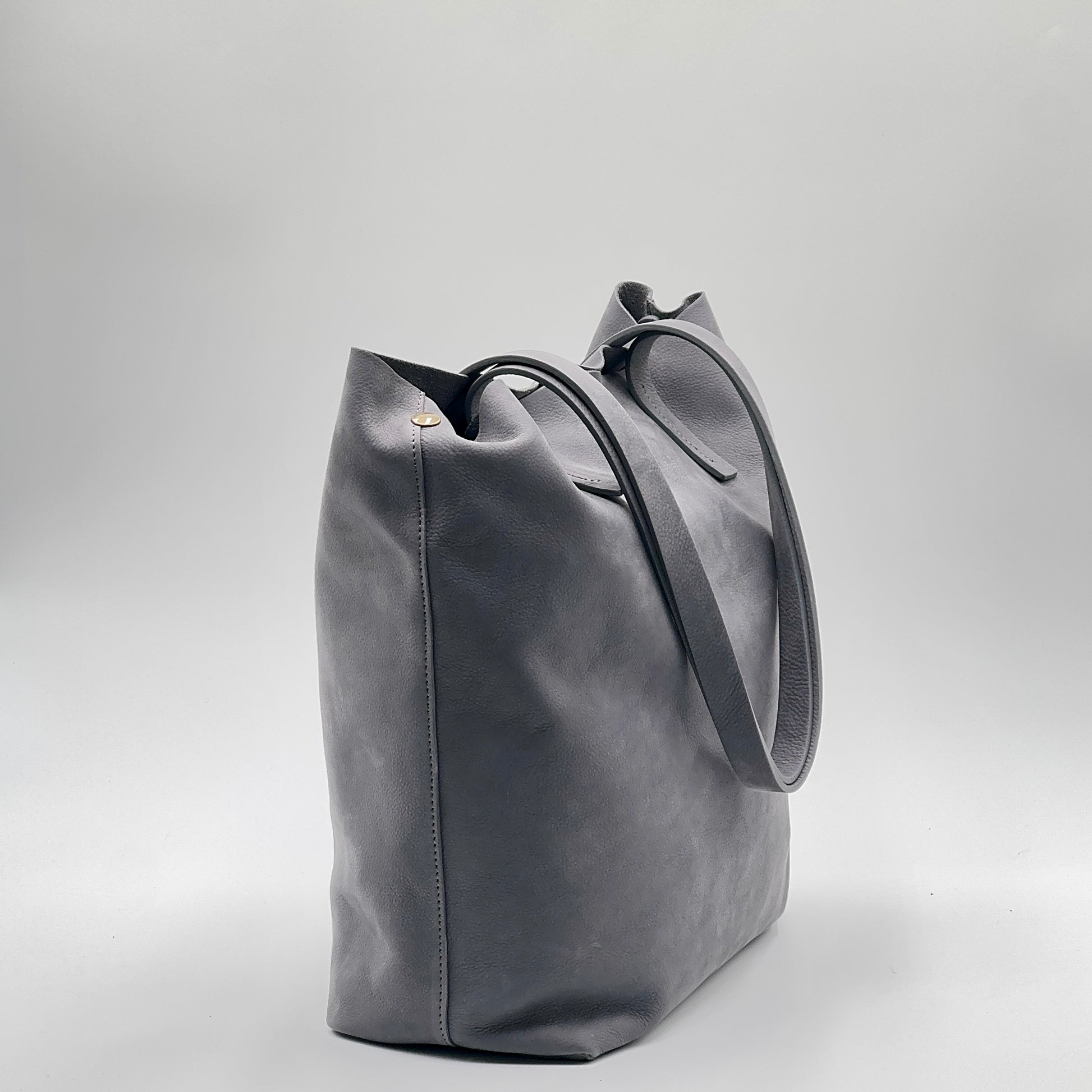 Shopper capiente ed essenziale, realizzata in pelle Long Beach color inky blue. La tonalità blu profondo esalta la linea pulita della borsa, mentre l'inserto interno con zip le dona struttura senza appesantirla. Ideale per un uso quotidiano, dal lavoro al tempo libero.
