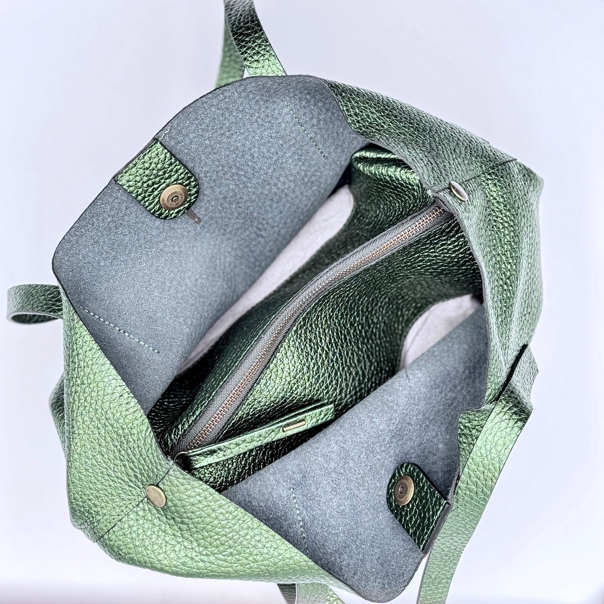 Pelle: 100% pelle naturale, finitura MetalTaurus (verde)