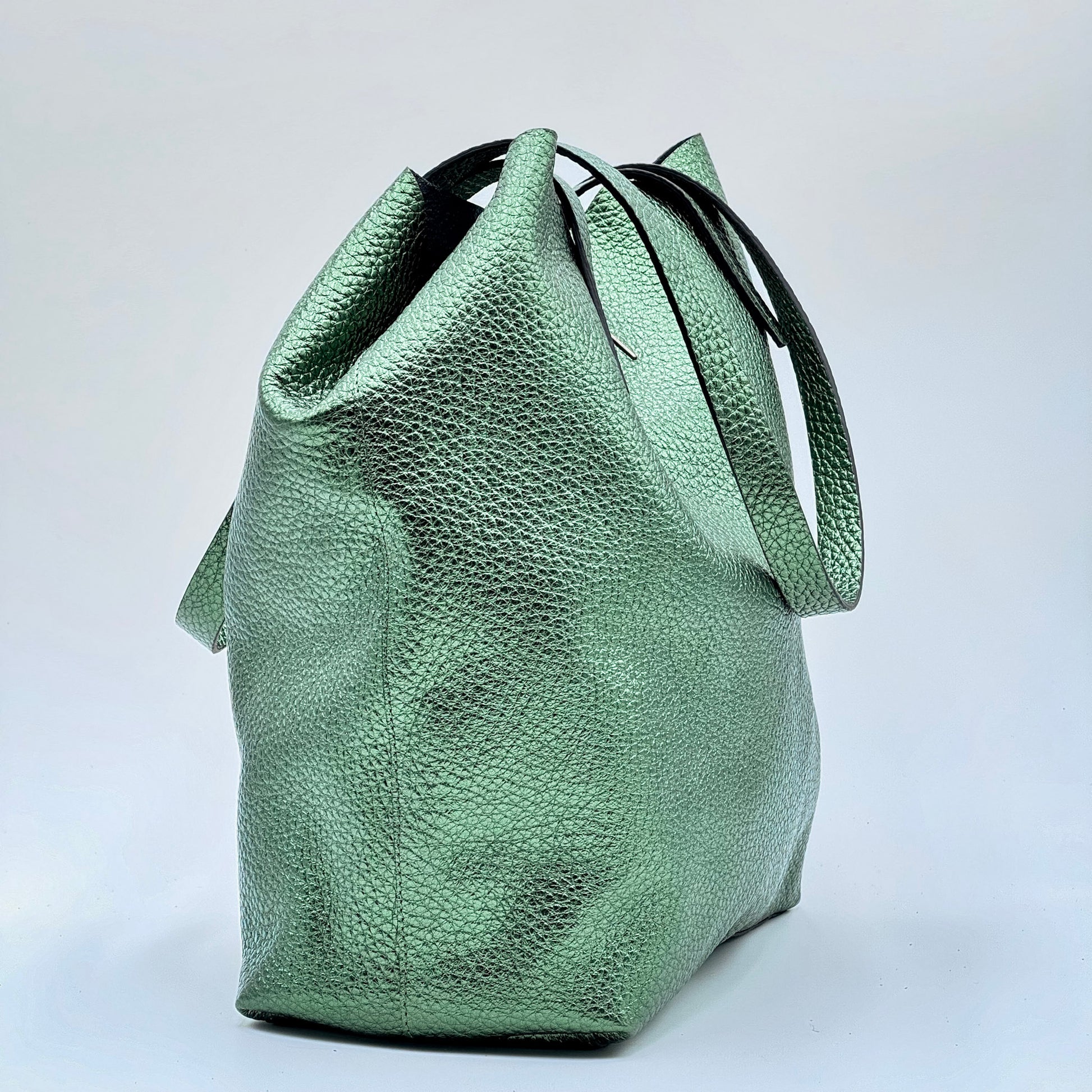 Shopper dalla linea morbida ed elastica, realizzata in pelle MetalTaurus – con grana marcata e un elegante effetto metallico. La borsa interna con zip garantisce funzionalità senza compromettere la leggerezza della forma. Un modello pensato per chi ama distinguersi con dettagli decisi ma discreti.