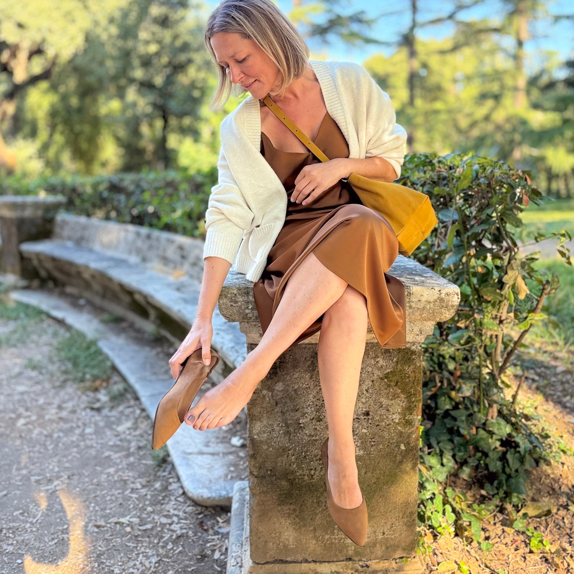 Suola in cuoio con gomma iniettata per leggerezza, comfort e sicurezza. Perfetta anche per chi desidera una scarpa morbida e naturale che nasconda delicatamente l’alluce valgo.