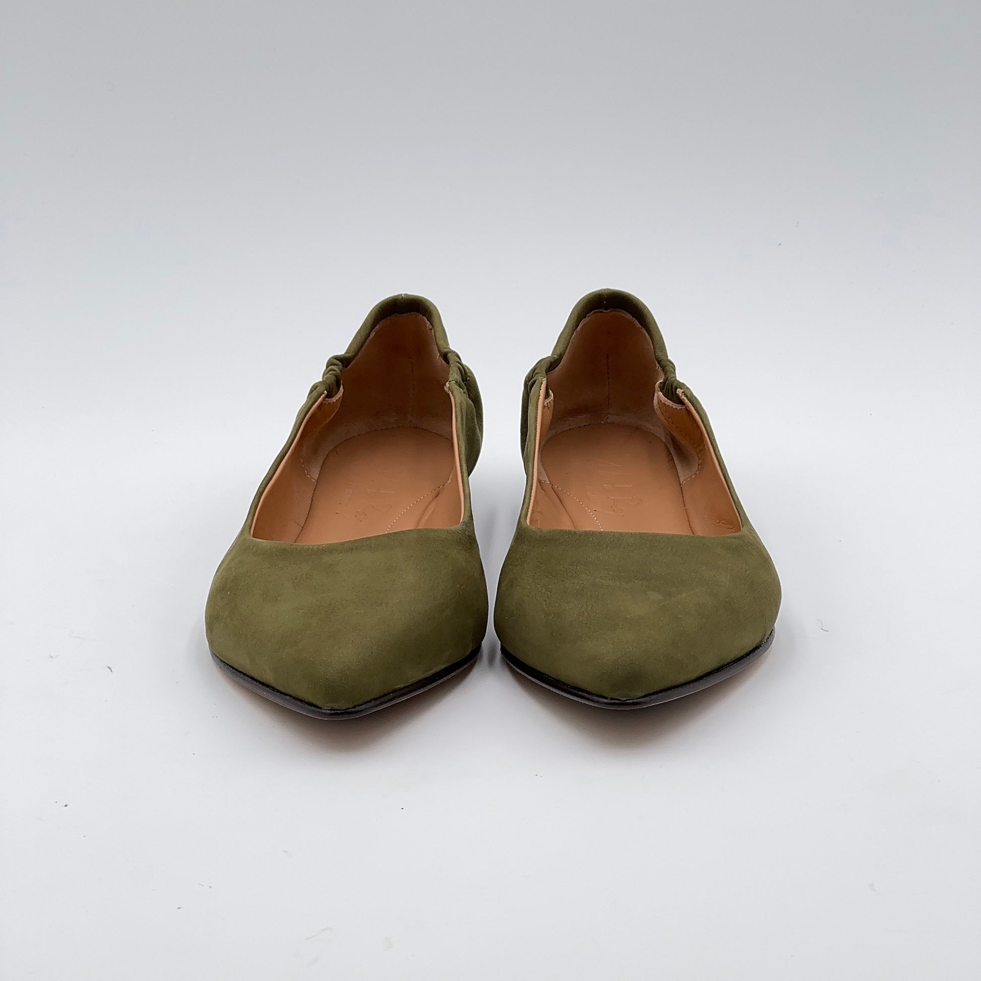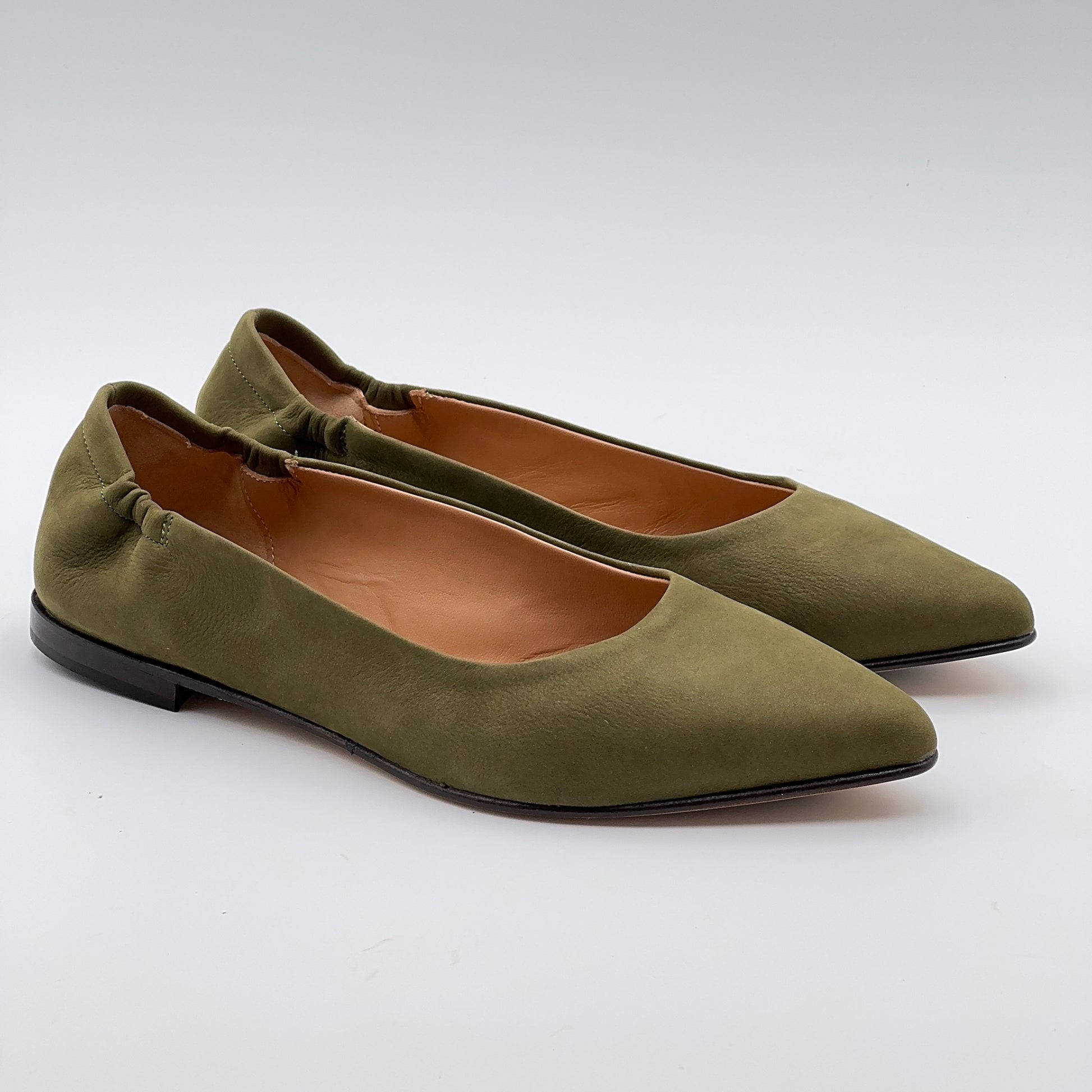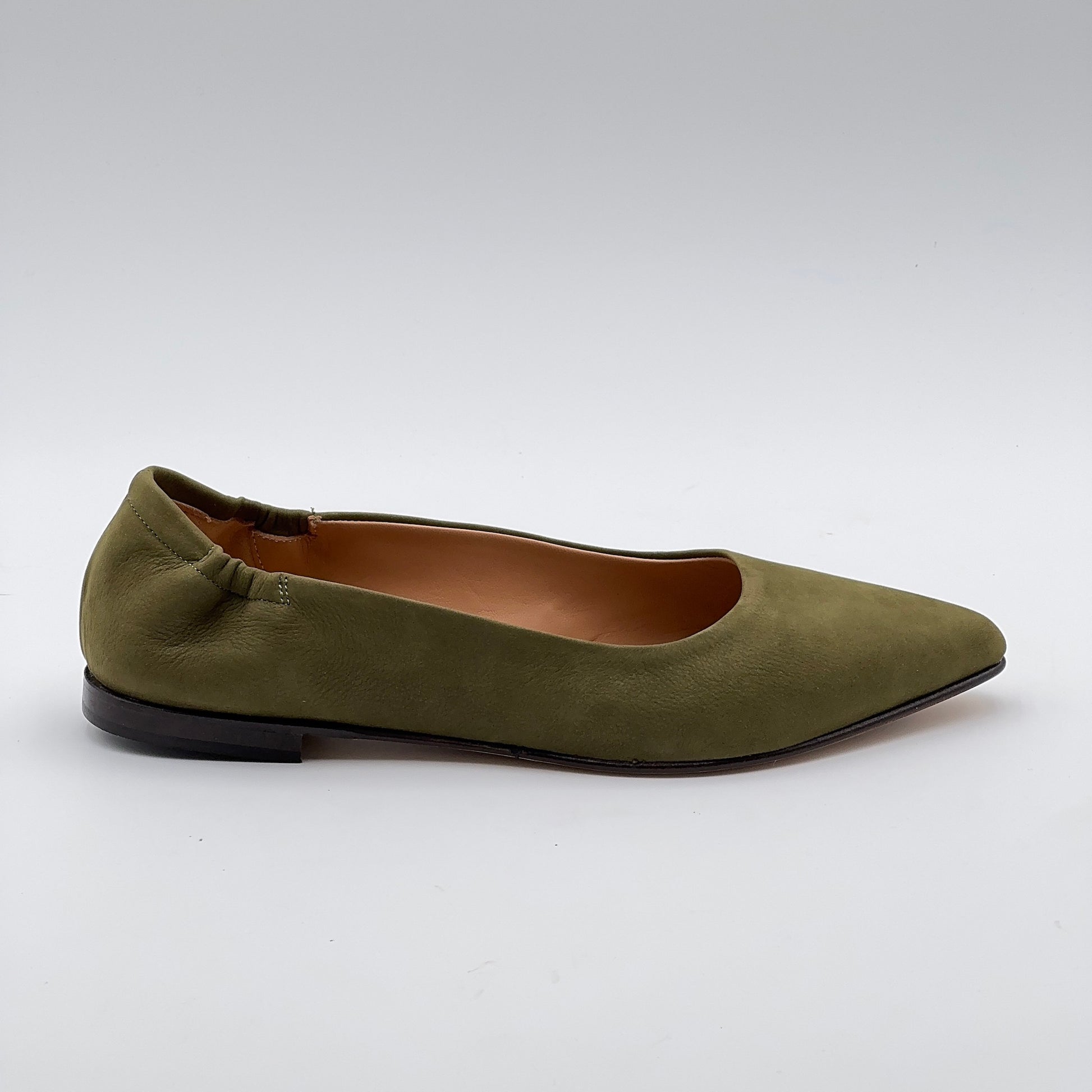 La ballerina a punta Marta Ray con la sua costruzione a sacchetto è garanzia di artigianalità e comodità. Realizzata a mano in morbida pelle, questa ballerina calza perfettamente qualsiasi conformazione anche grazie alla piccola arricciatura elastica al tallone. La punta non è accentuata e la pianta è comoda. Il fondo è in cuoio iniettato con gomma antiscivolo.