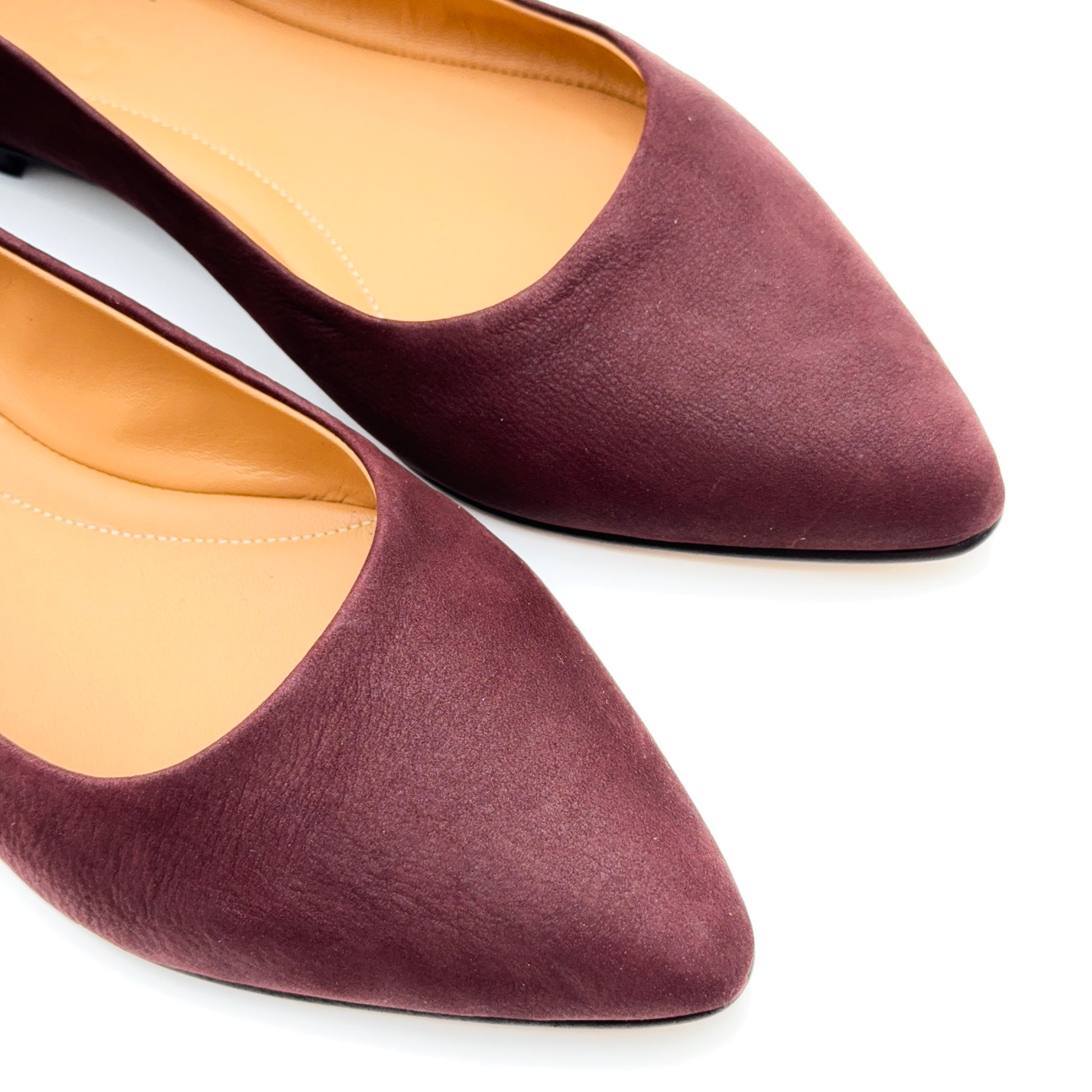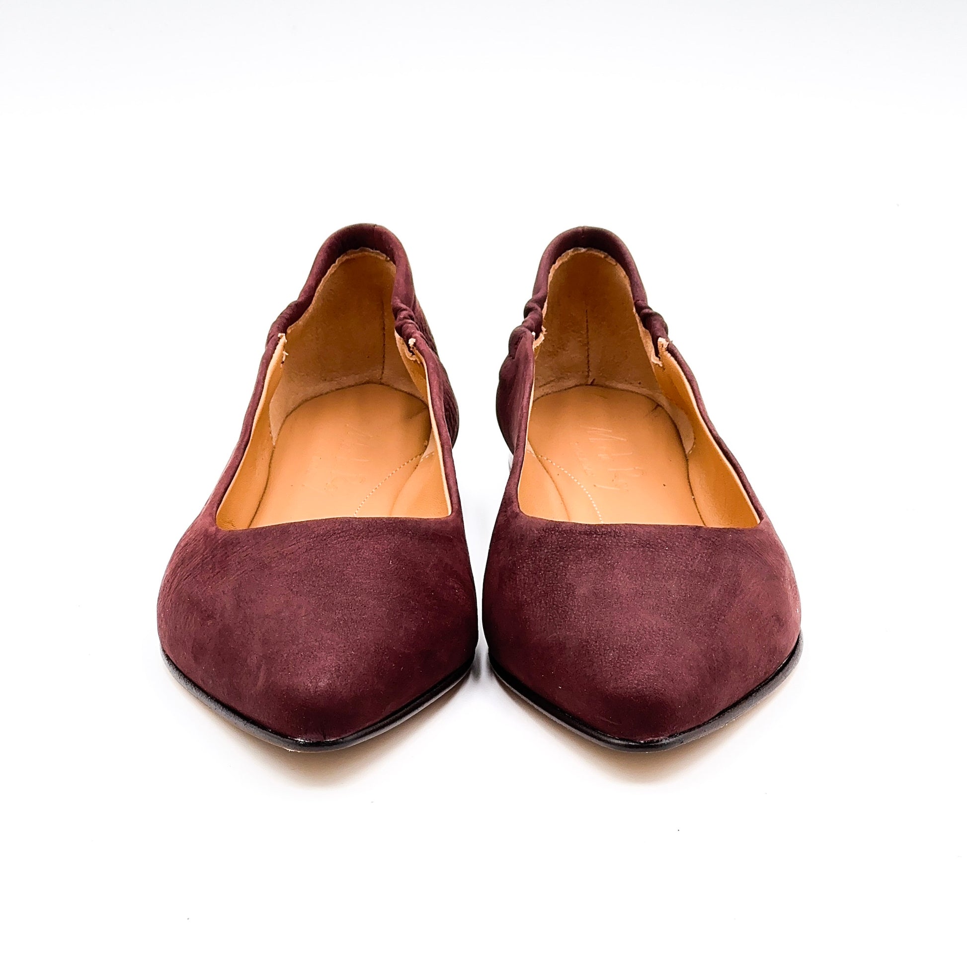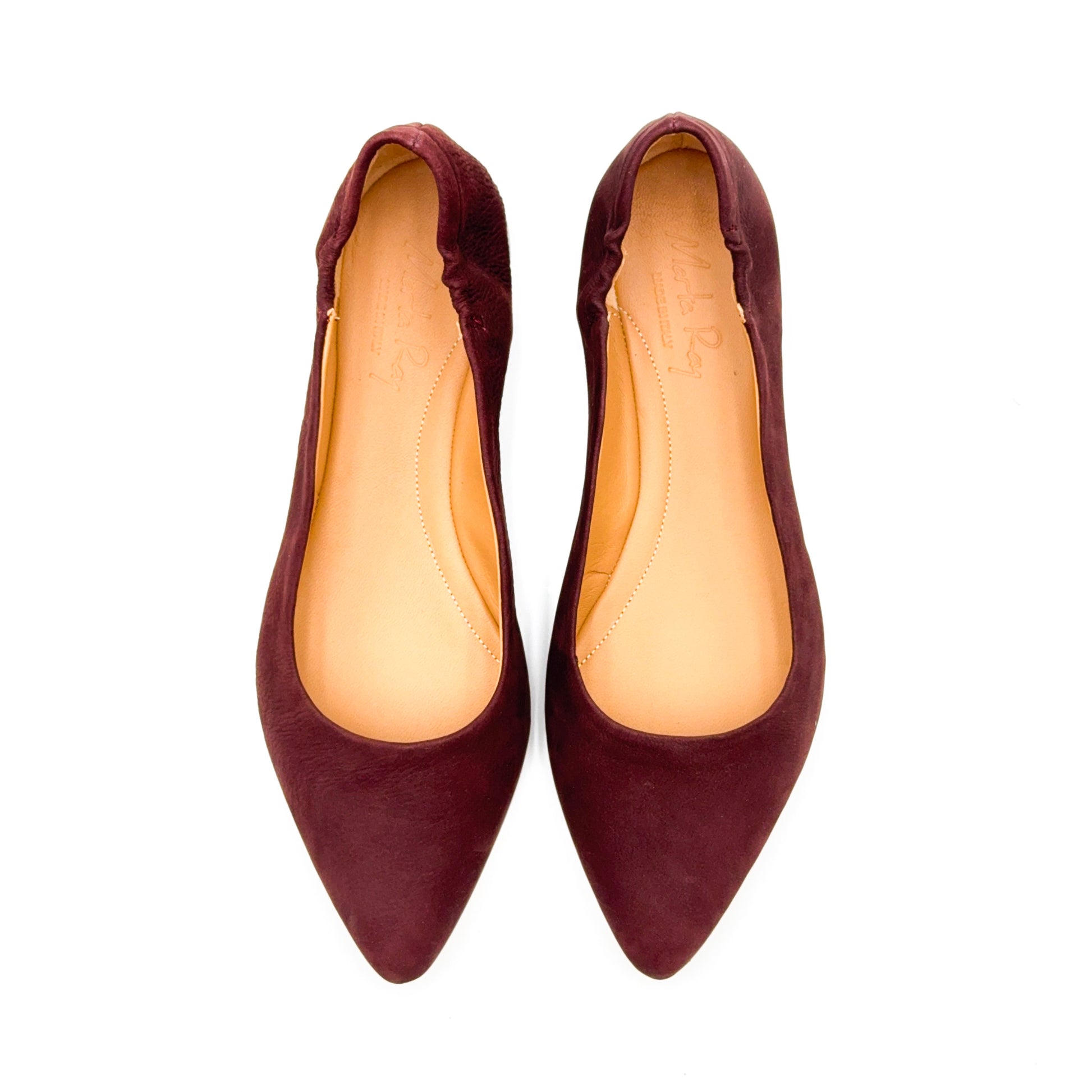 La ballerina a punta Marta Ray con la sua costruzione a sacchetto è garanzia di artigianalità e comodità. Realizzata a mano in morbida pelle questa ballerina calza perfettamente qualsiasi conformazione anche grazie alla piccola arricciatura elastica al tallone. La punta non è accentuata e la pianta è comoda. Il fondo è in cuoio iniettato con gomma antiscivolo.