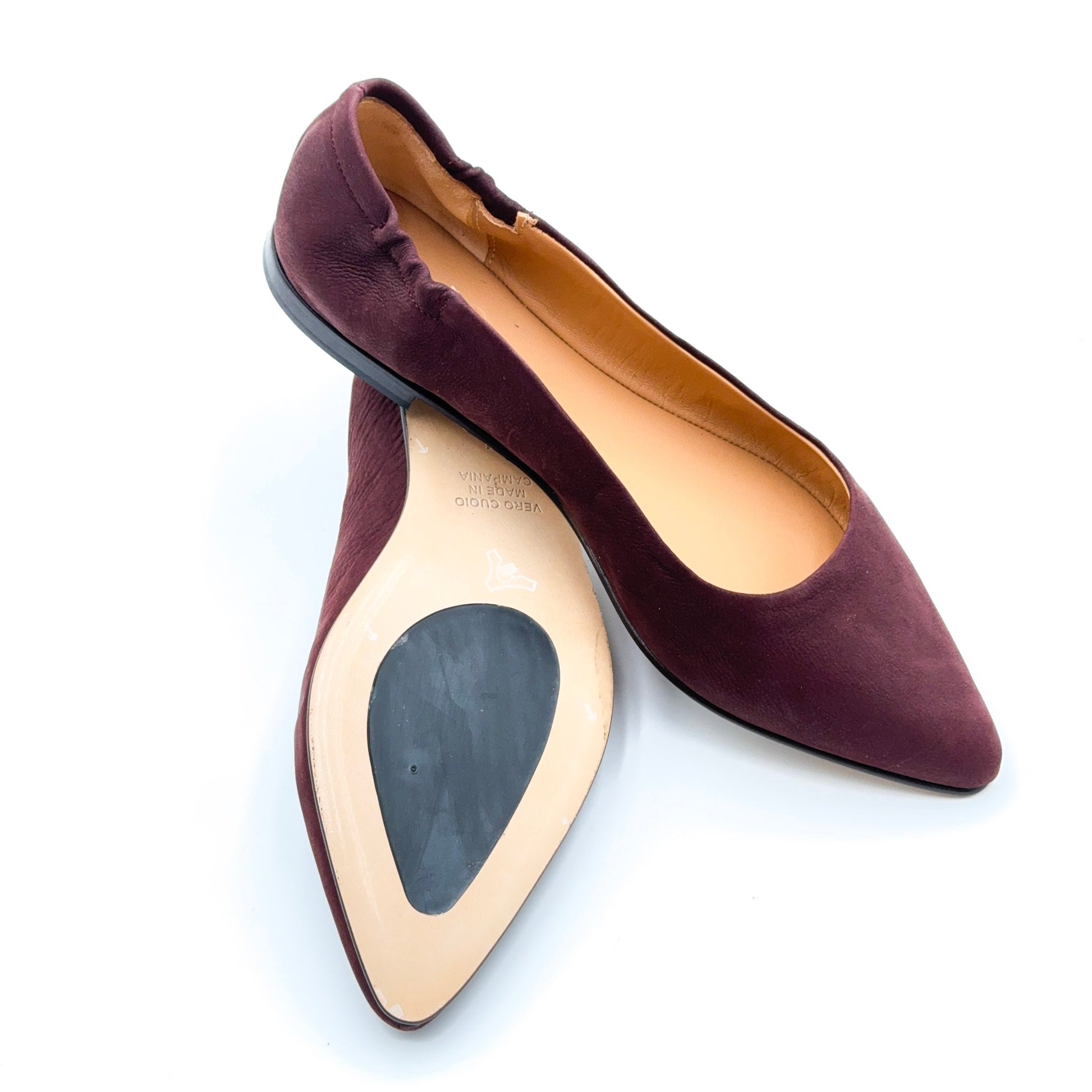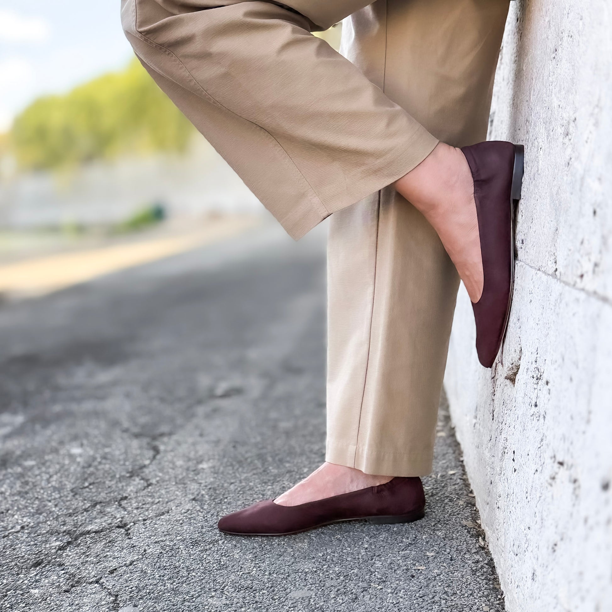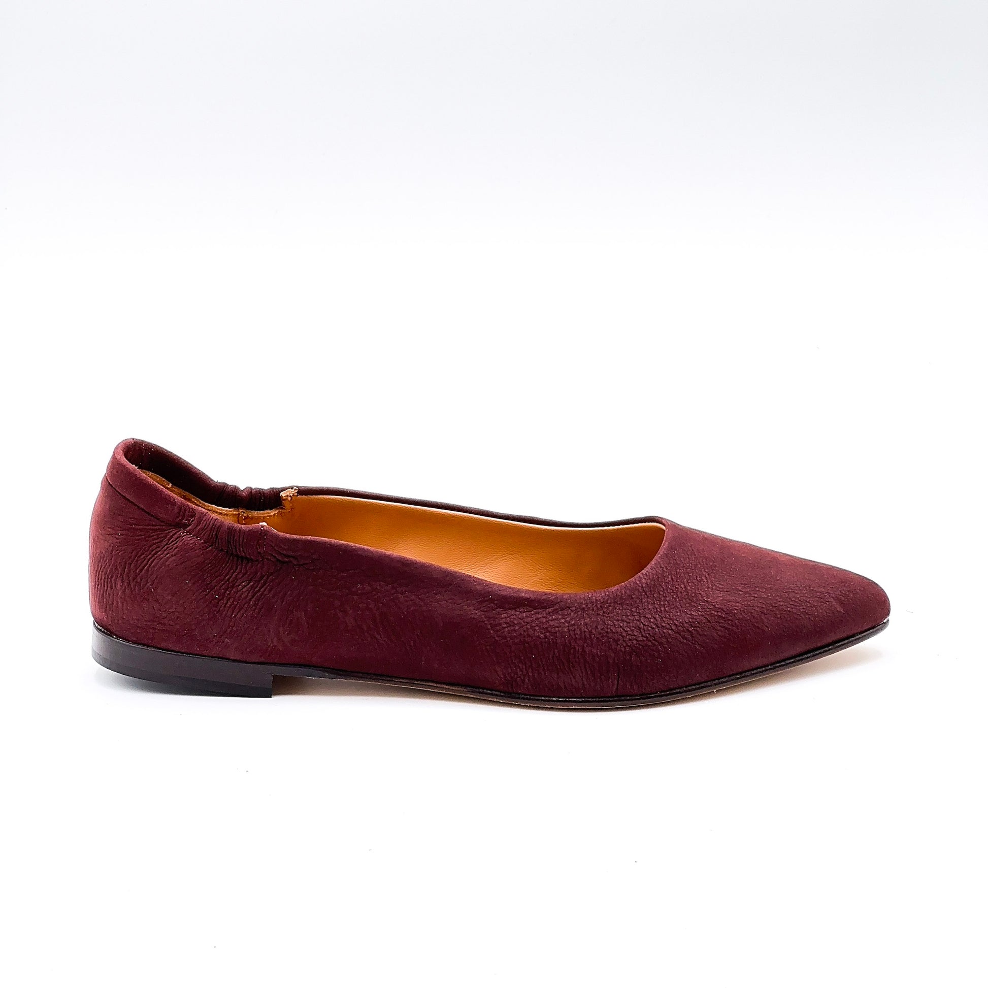 La ballerina a punta Marta Ray con la sua costruzione a sacchetto è garanzia di artigianalità e comodità. Realizzata a mano in morbida pelle questa ballerina calza perfettamente qualsiasi conformazione anche grazie alla piccola arricciatura elastica al tallone. La punta non è accentuata e la pianta è comoda. Il fondo è in cuoio iniettato con gomma antiscivolo.