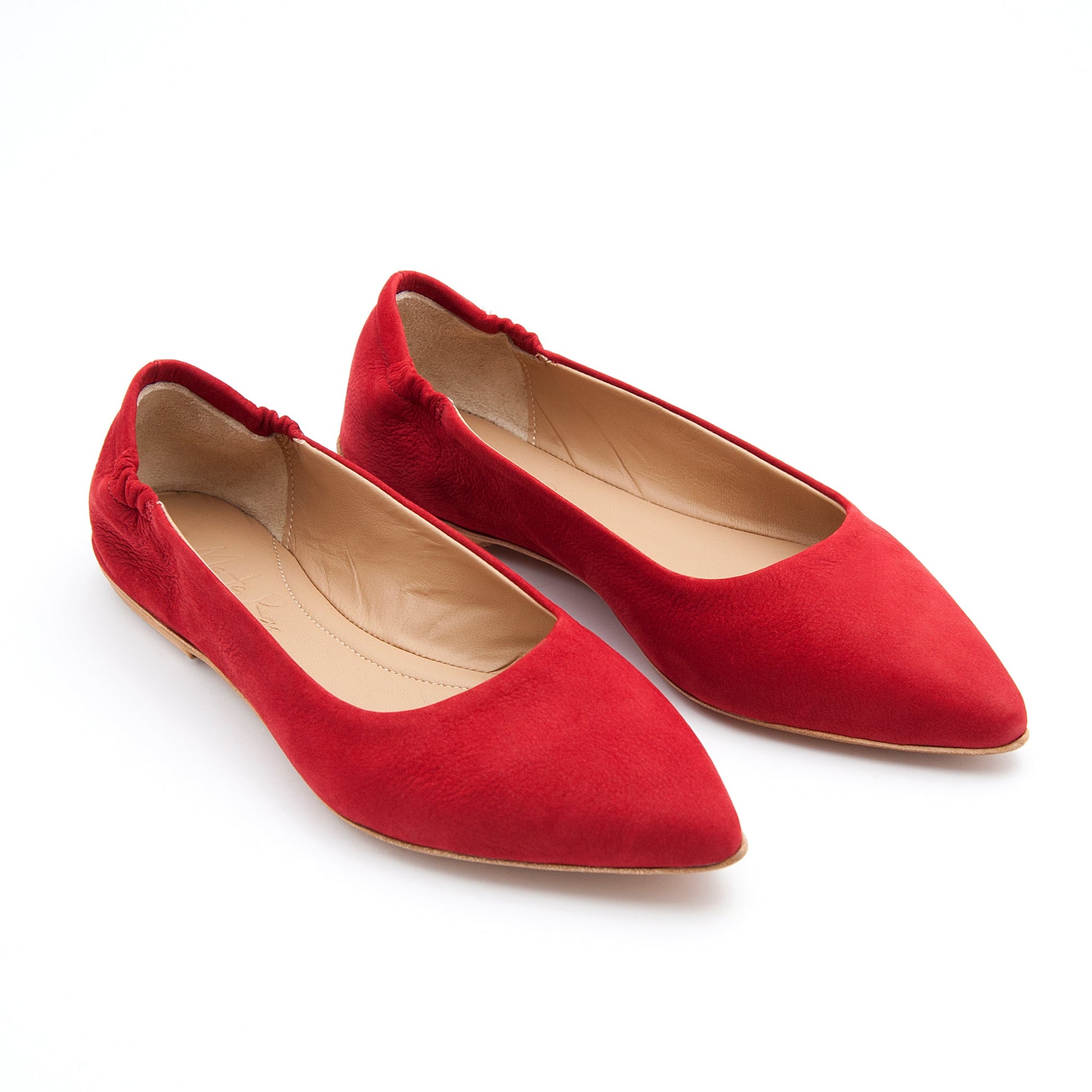 La ballerina a punta Marta Ray con la sua costruzione a sacchetto è garanzia di artigianalità e comodità. Realizzata a mano in morbida pelle questa ballerina calza perfettamente qualsiasi conformazione anche grazie alla piccola arricciatura elastica al tallone. La punta non è accentuata e la pianta è comoda. Il fondo è in cuoio iniettato con gomma antiscivolo.