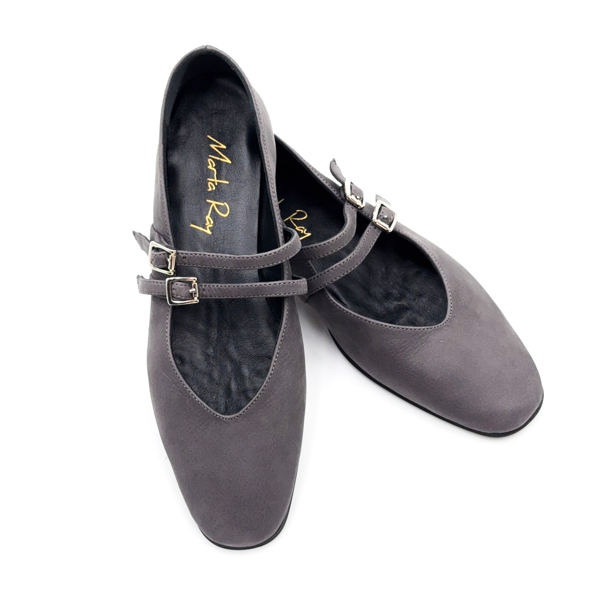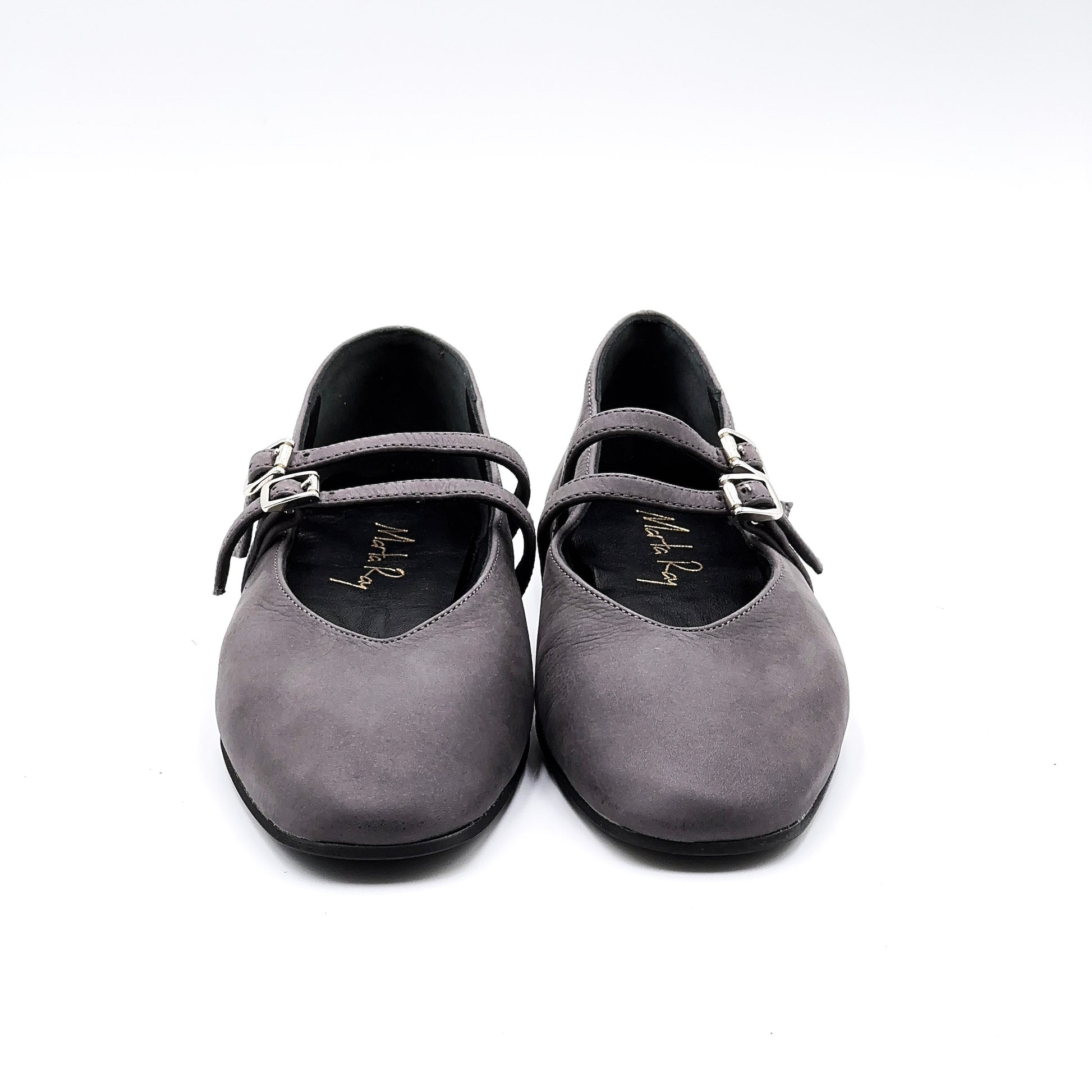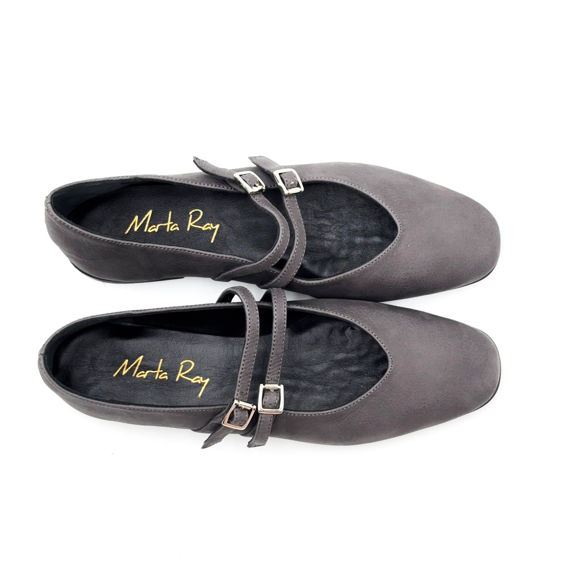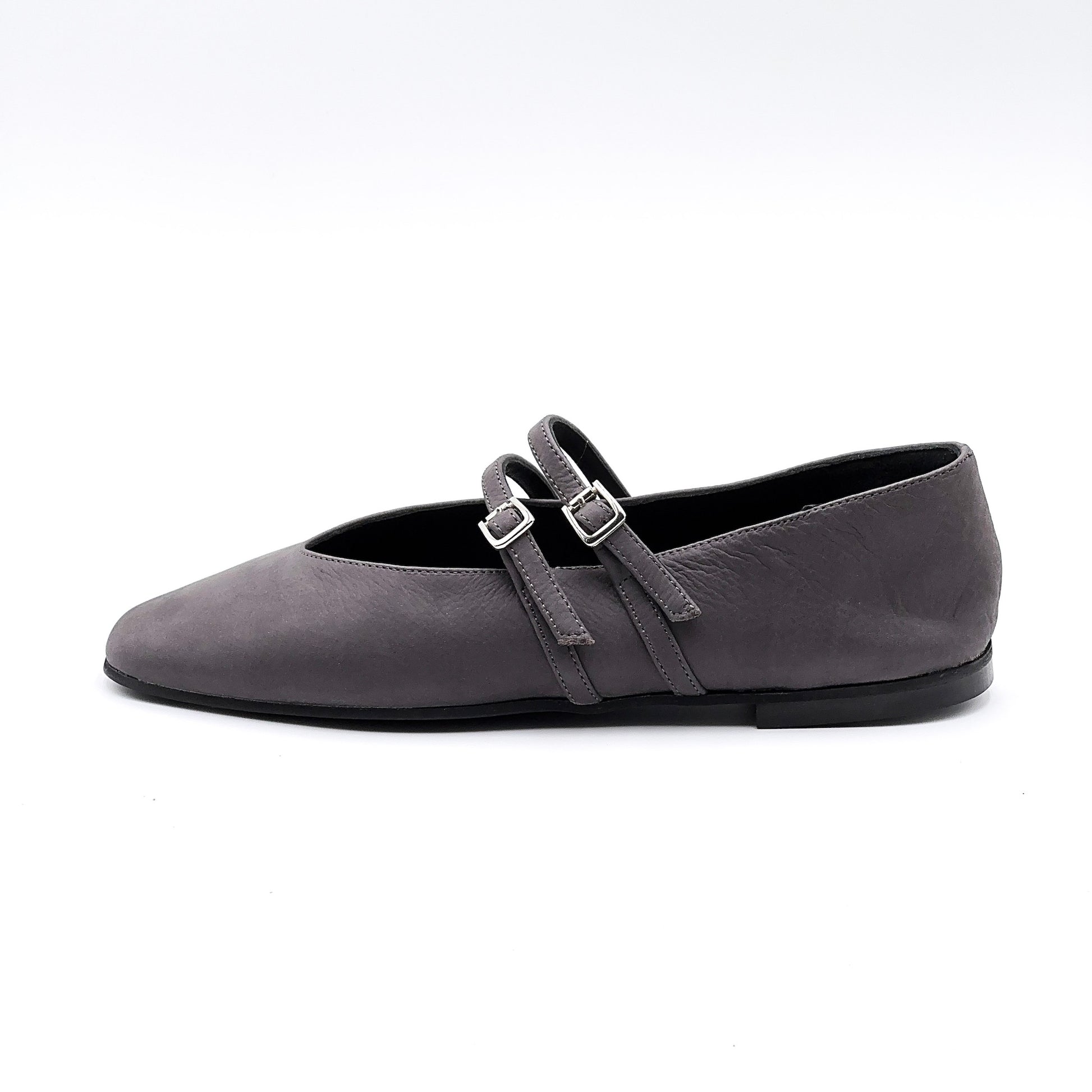 Ballerina con doppio cinturino in pelle Long Beach, color fumo. Cinturini tono su tono con fibbia regolabile.