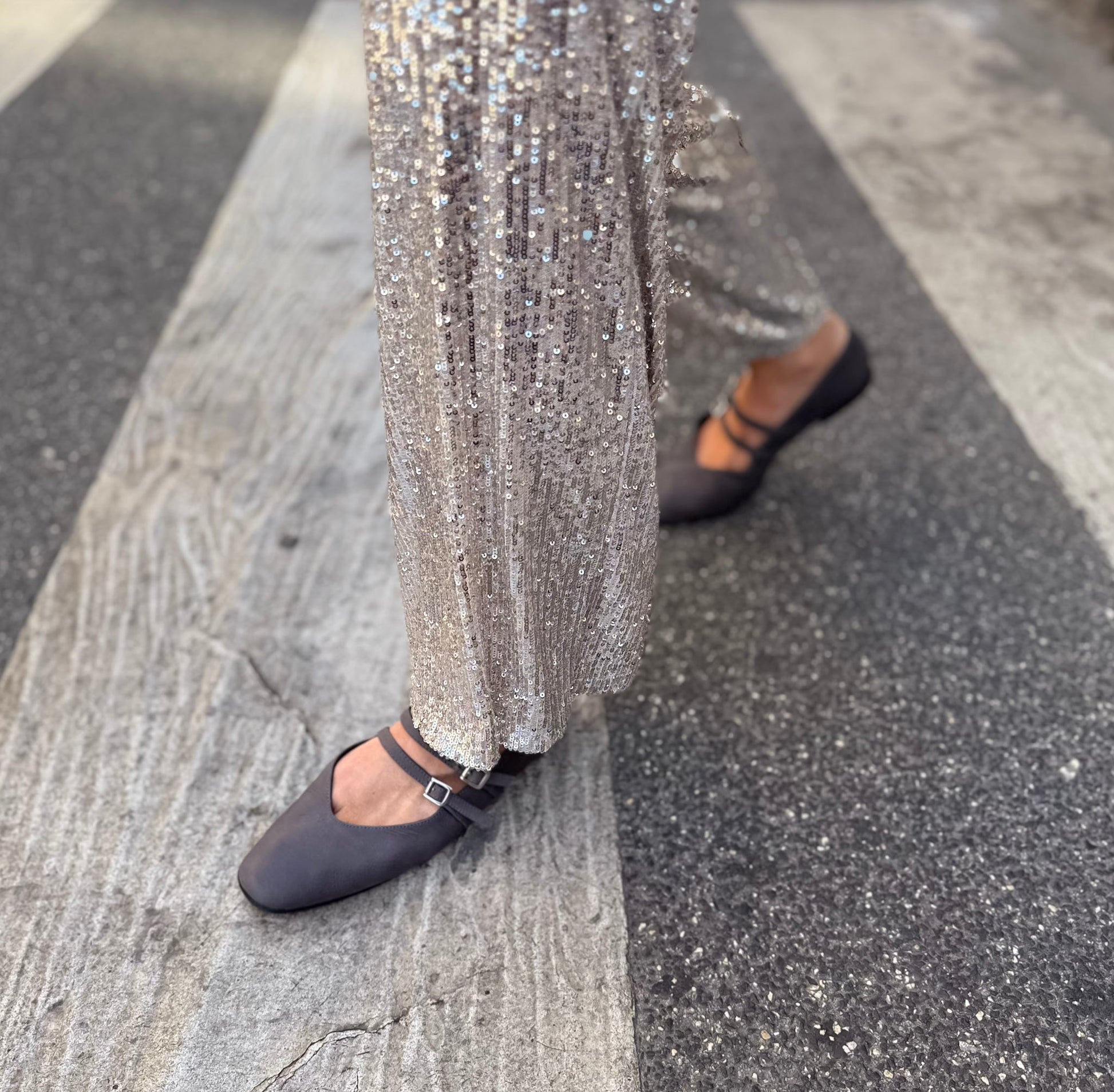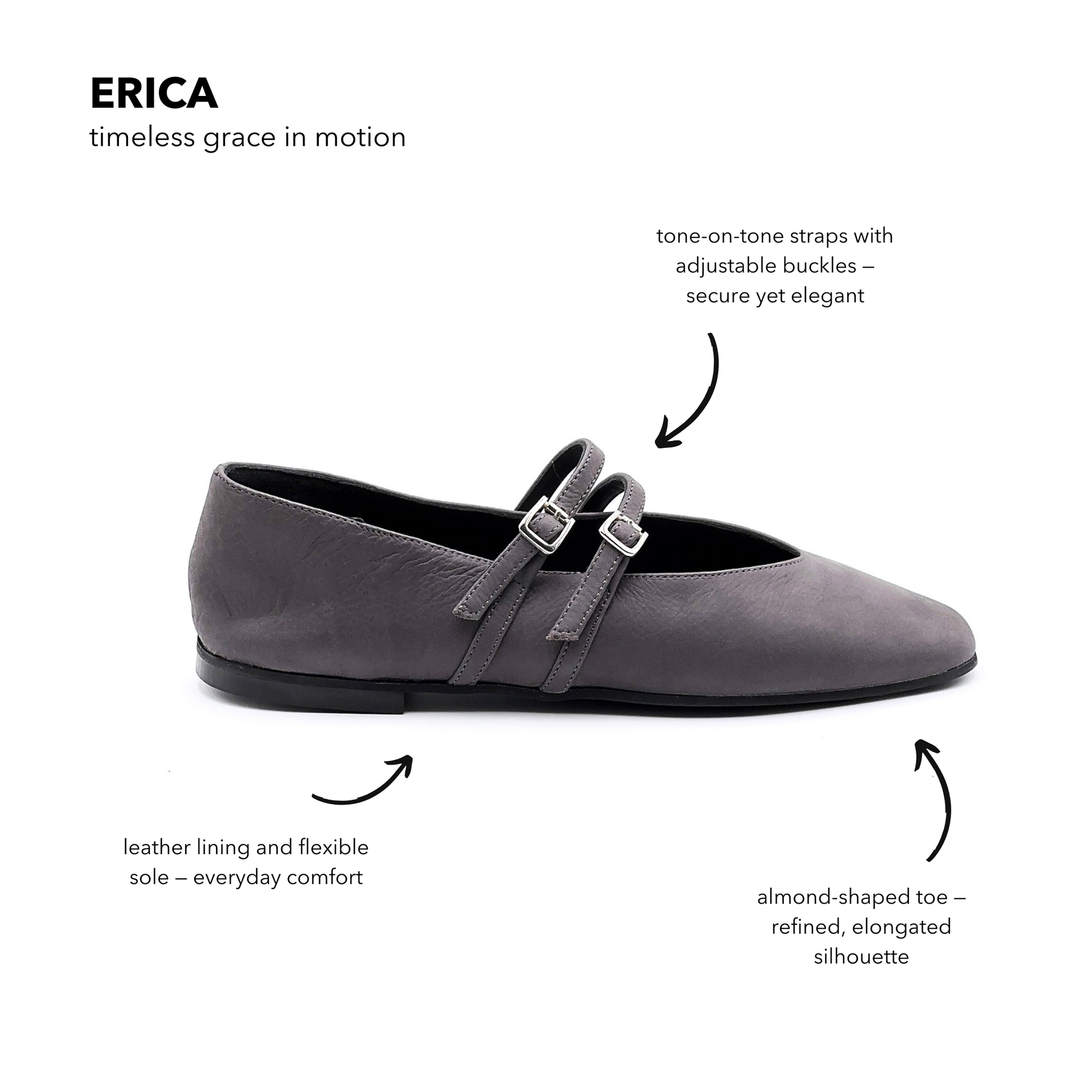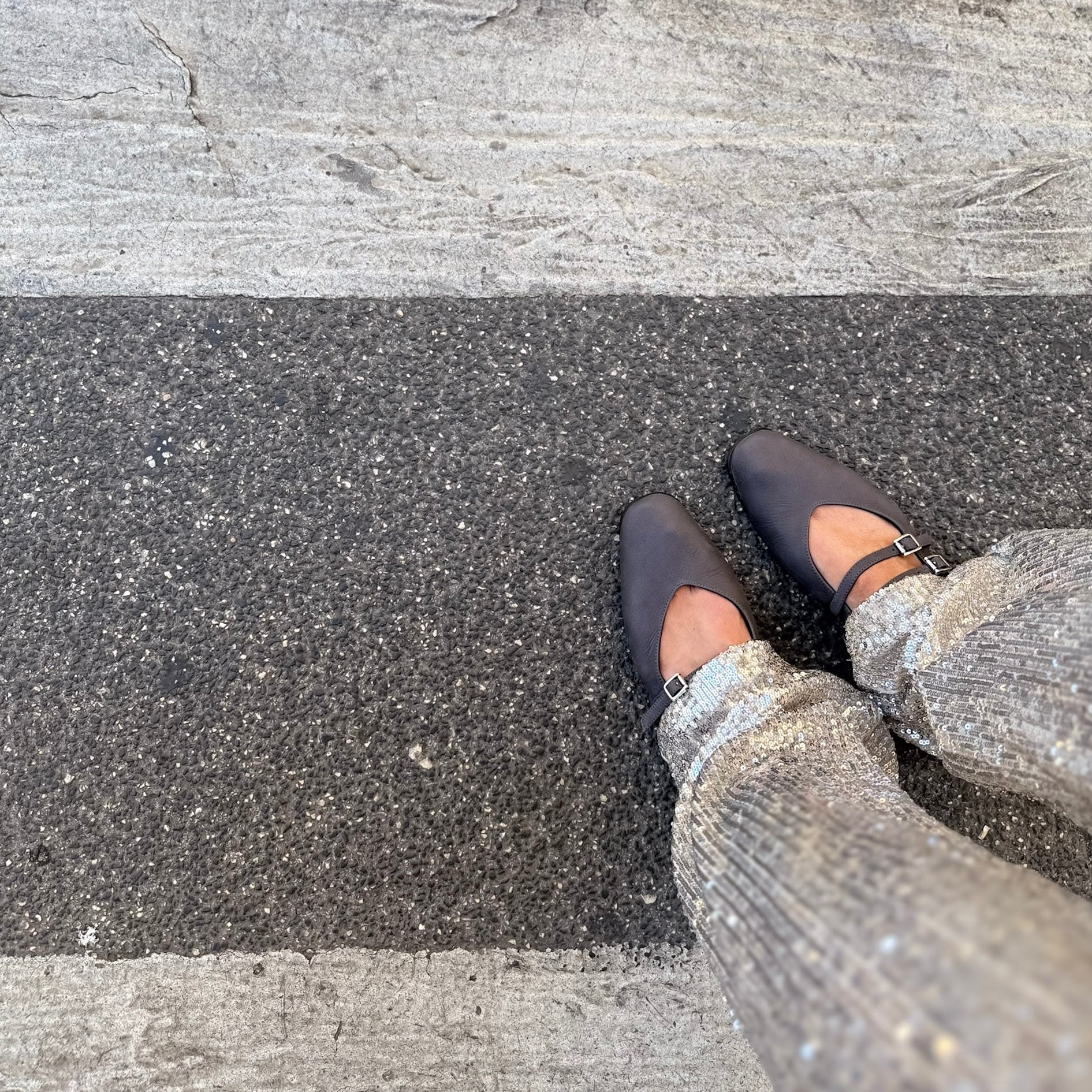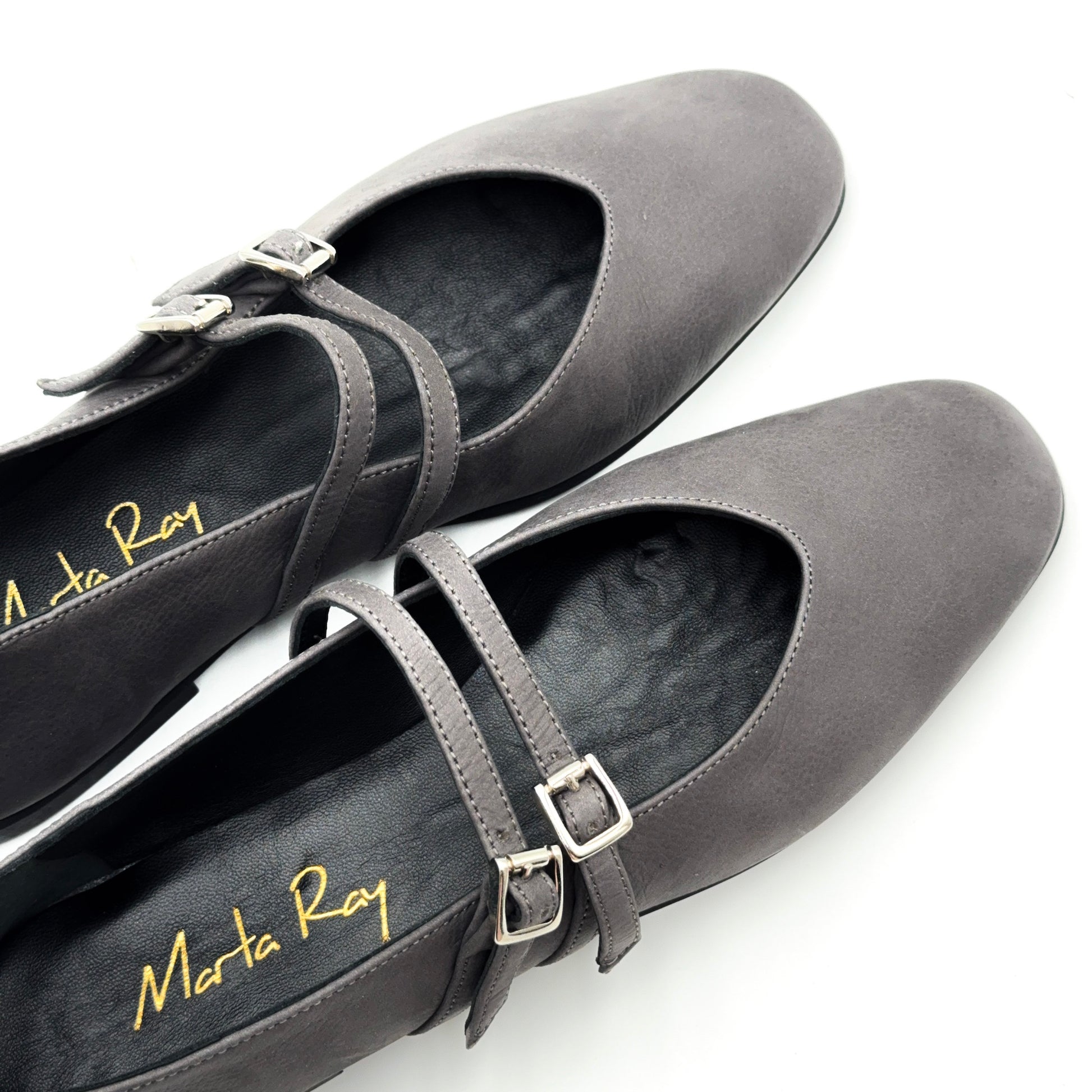 Ballerina con doppio cinturino in pelle Long Beach, color fumo. Cinturini tono su tono con fibbia regolabile.