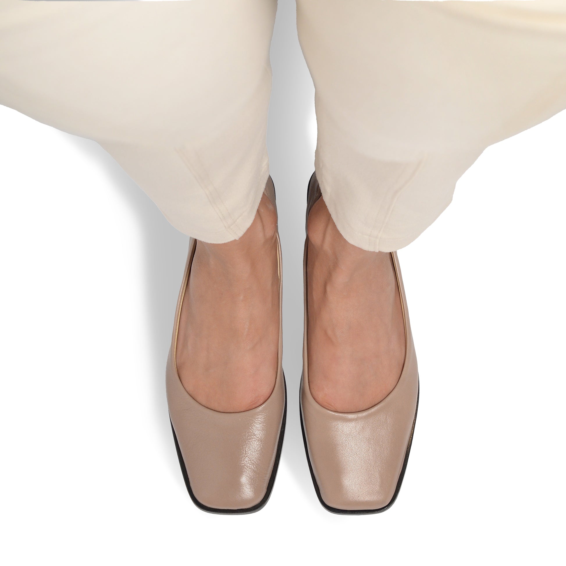 The square toe with its walled construction, a typical artisan technique used to protect and maintain the shape of the shoe, leaves more freedom to the toes.