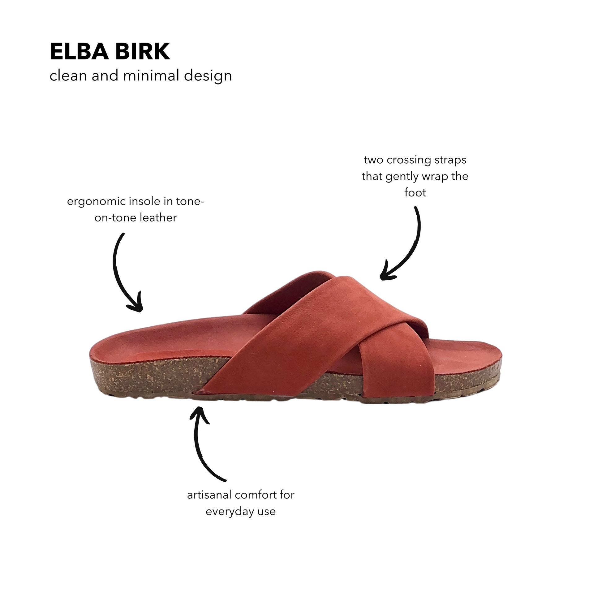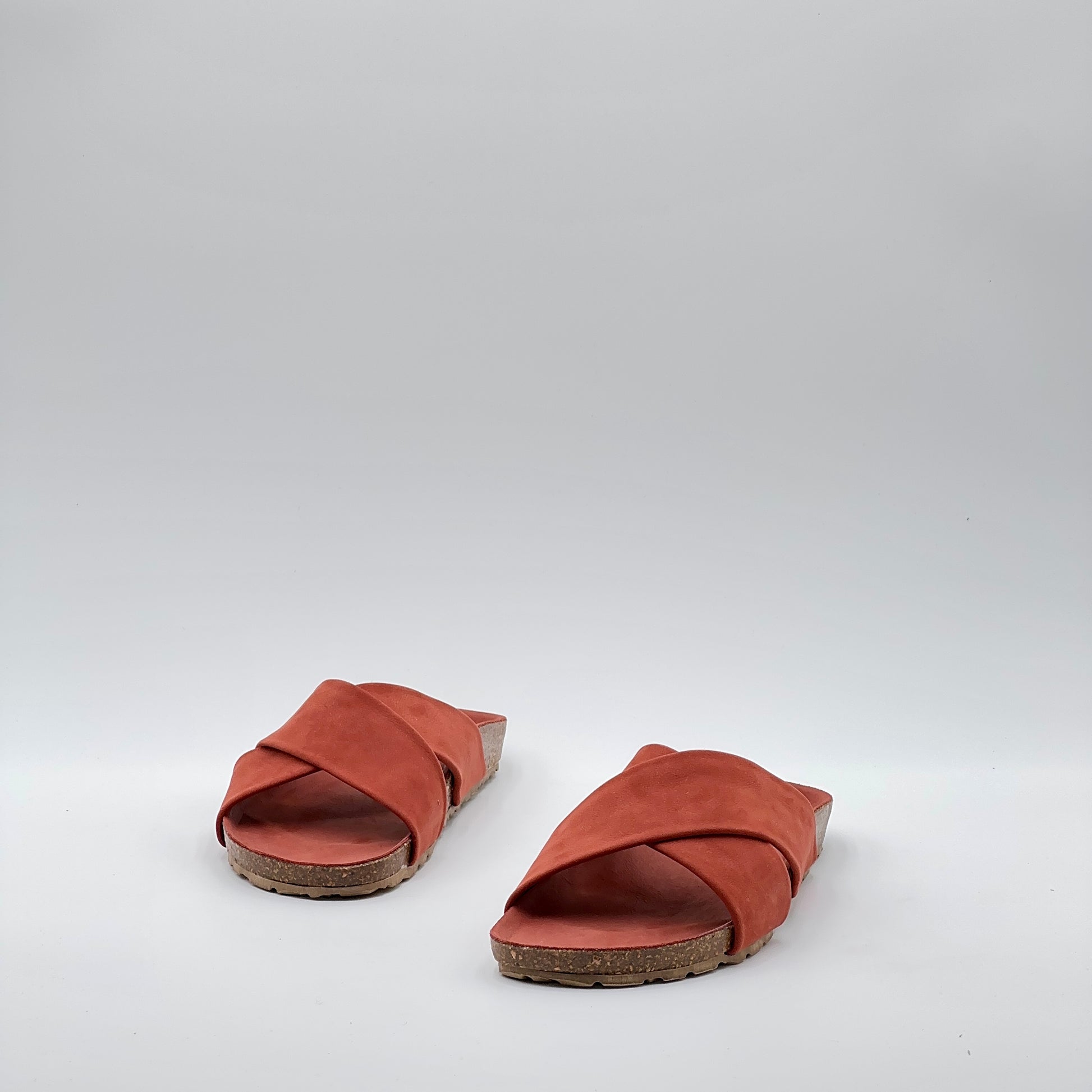 Sandalo flat in pelle Long Beach color cuoio inglese, con suola ergonomica rivestita nello stesso materiale. Due fasce incrociate accolgono il piede con equilibrio e stile.