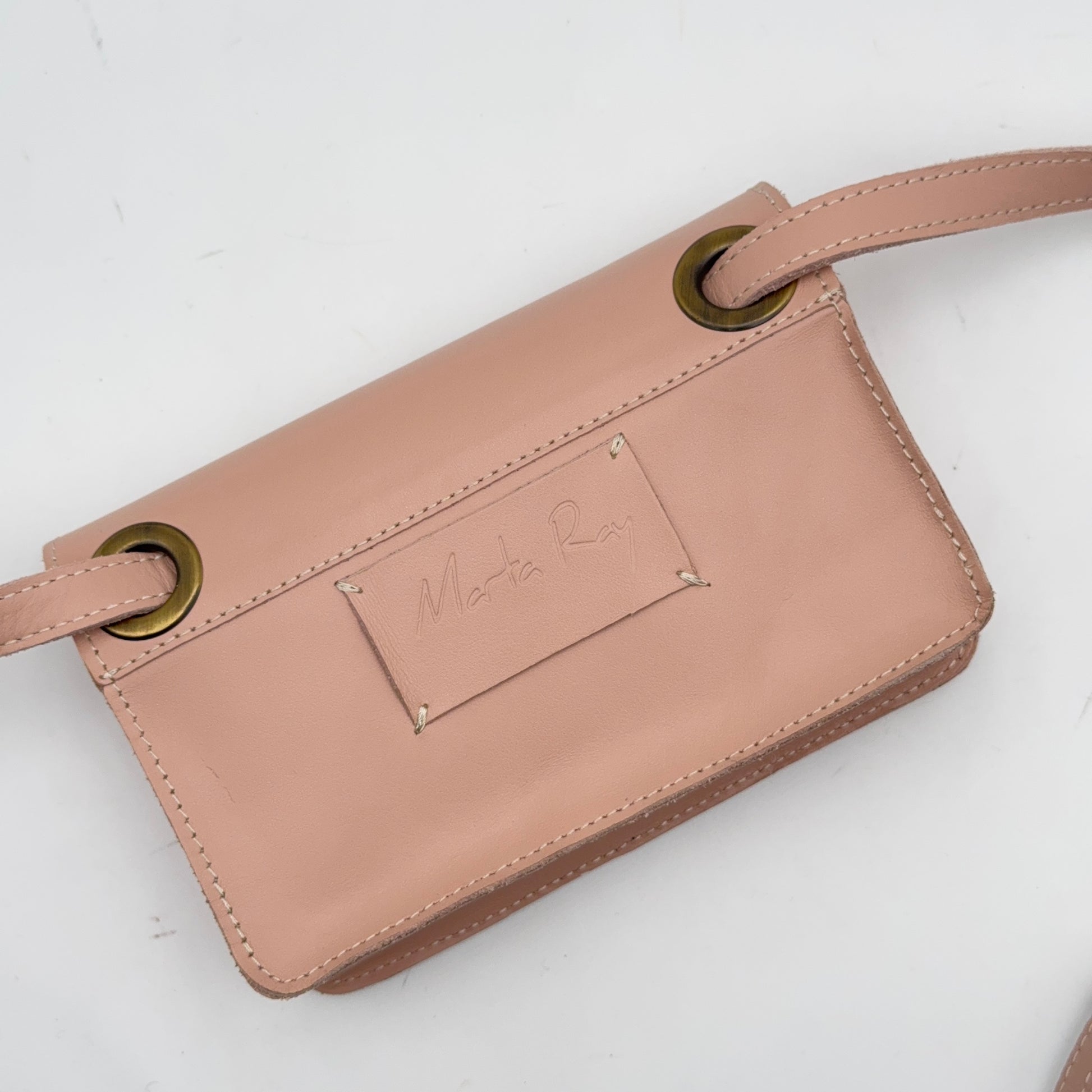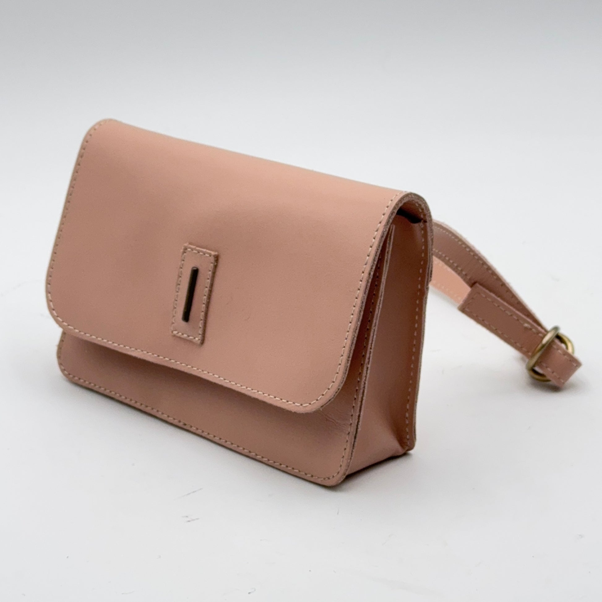 La tracolla si rimuove facilmente e può essere sostituita da una sottile cinturina in pelle, trasformandola in un piccolo marsupio.