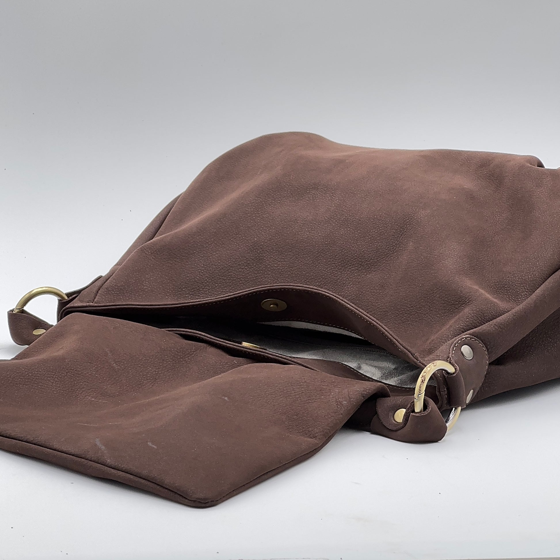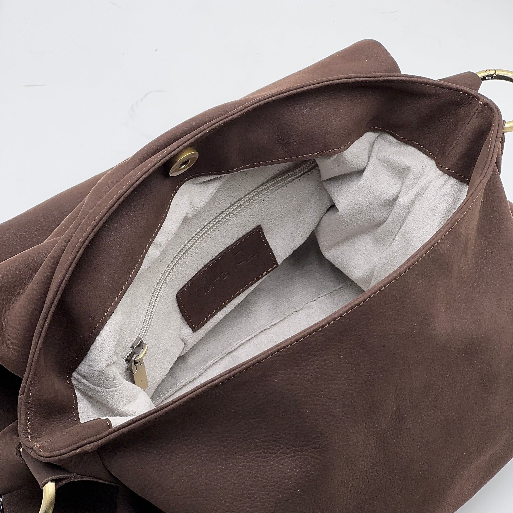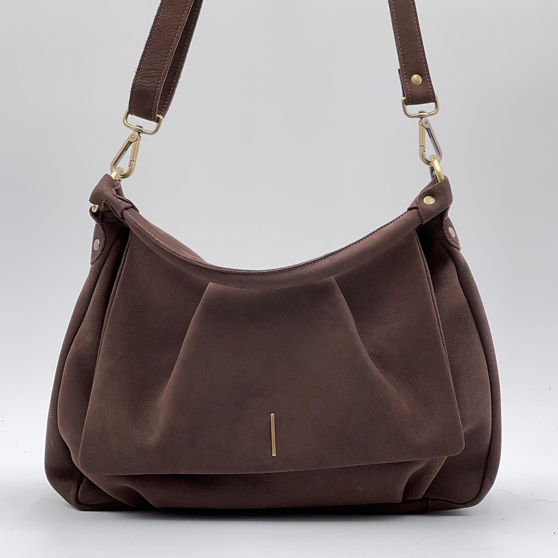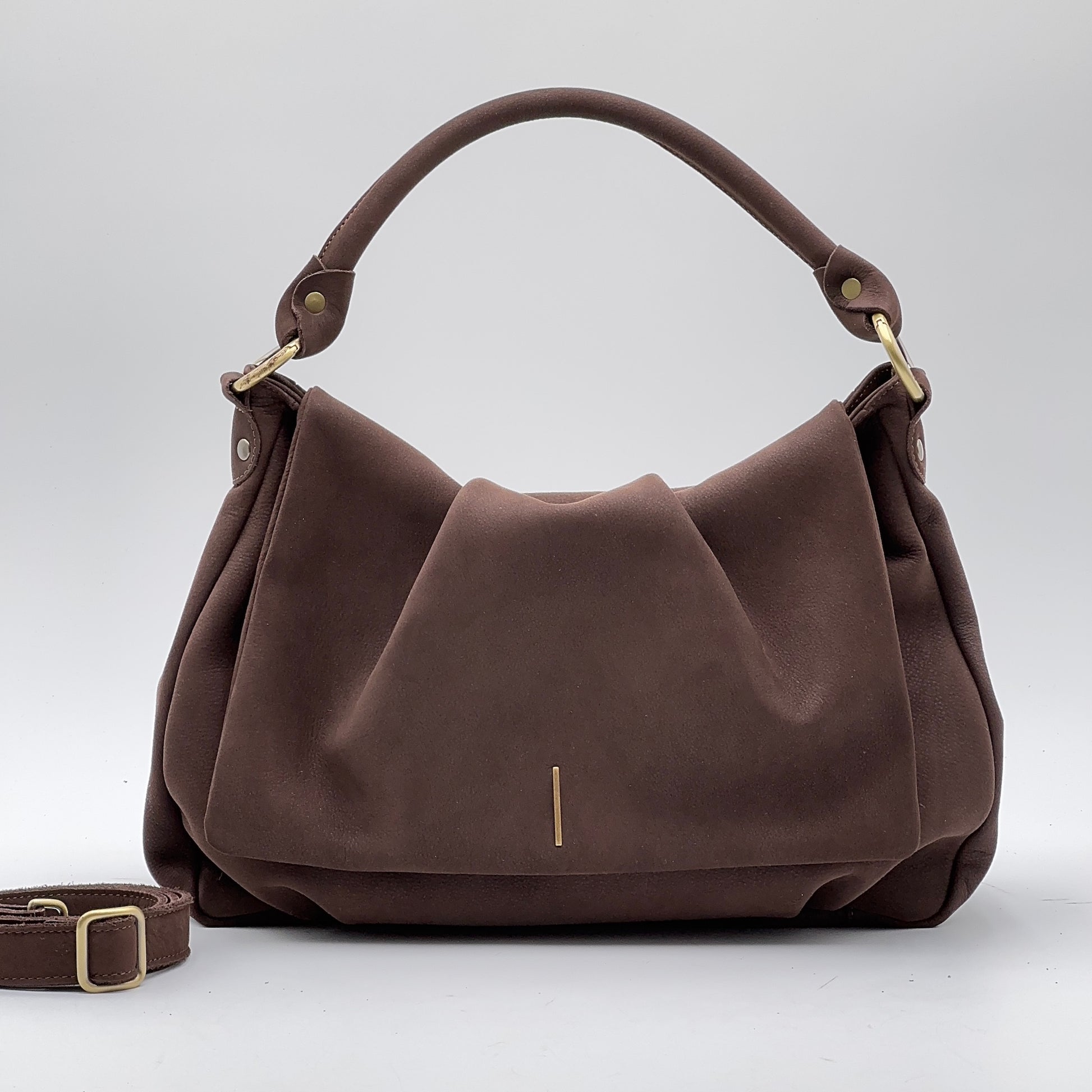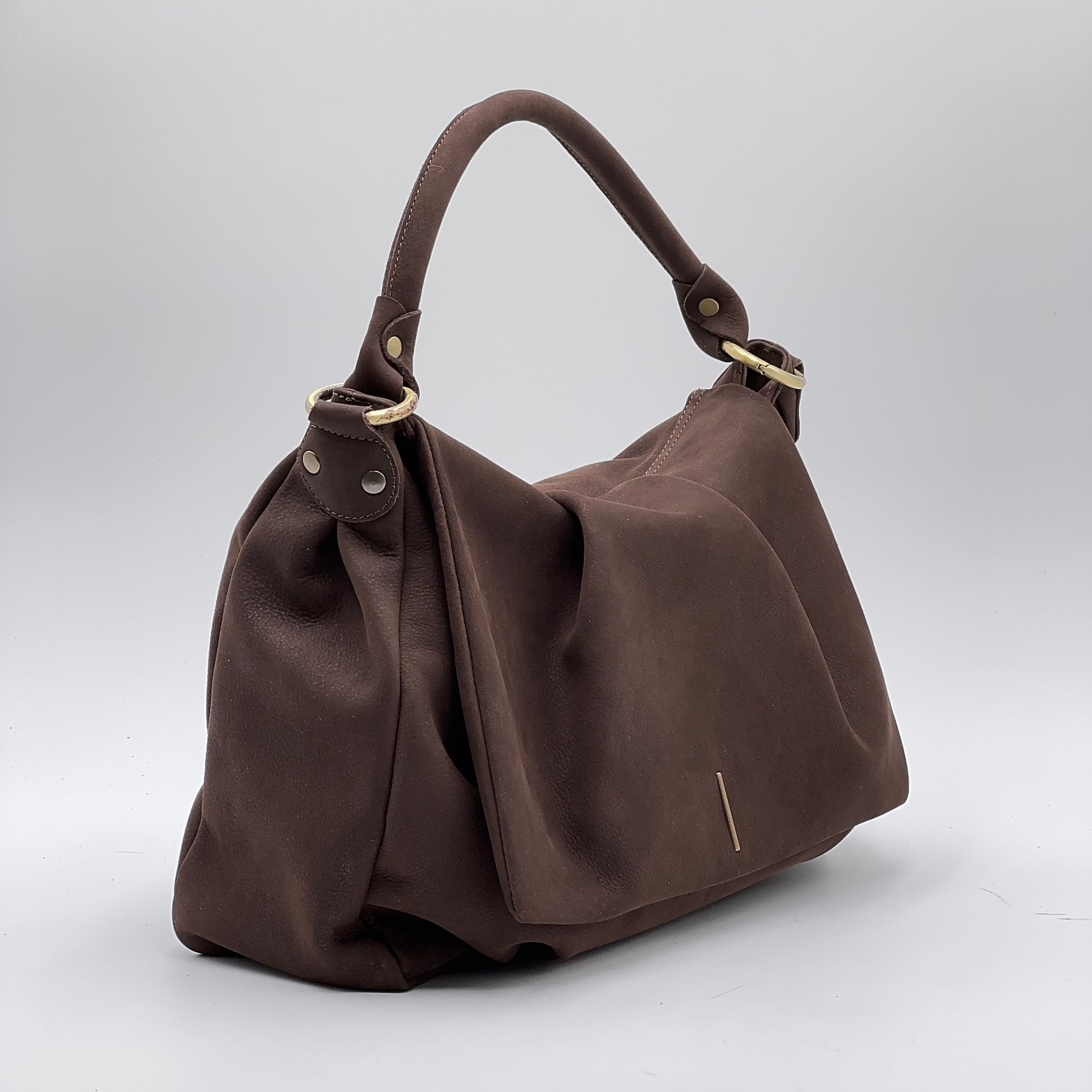 Greta è una borsa morbida e strutturata, caratterizzata dal motivo a pieghe sulla patta e sui fianchi. Il manico tubolare e la tracolla regolabile e rimovibile sono agganciati con anelli a moschettone in ottone spazzolato, rendendo la borsa pratica e versatile. All’interno, la fodera in microfibra chiara ospita due tasche, di cui una con zip, per mantenere tutto in ordine e a portata di mano.