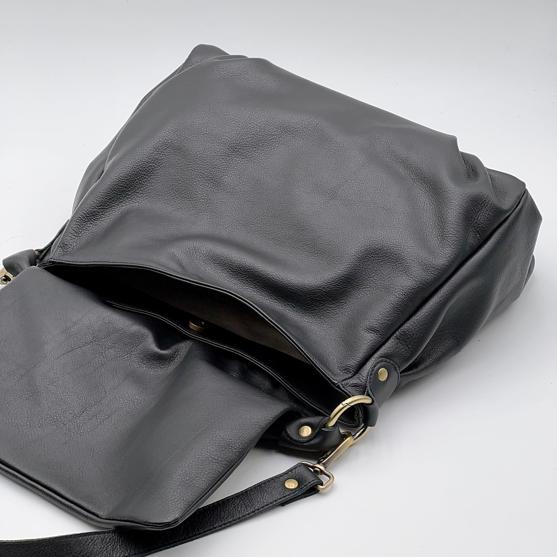 Internally Greta is organized with a double pocket, one of which is zipped.