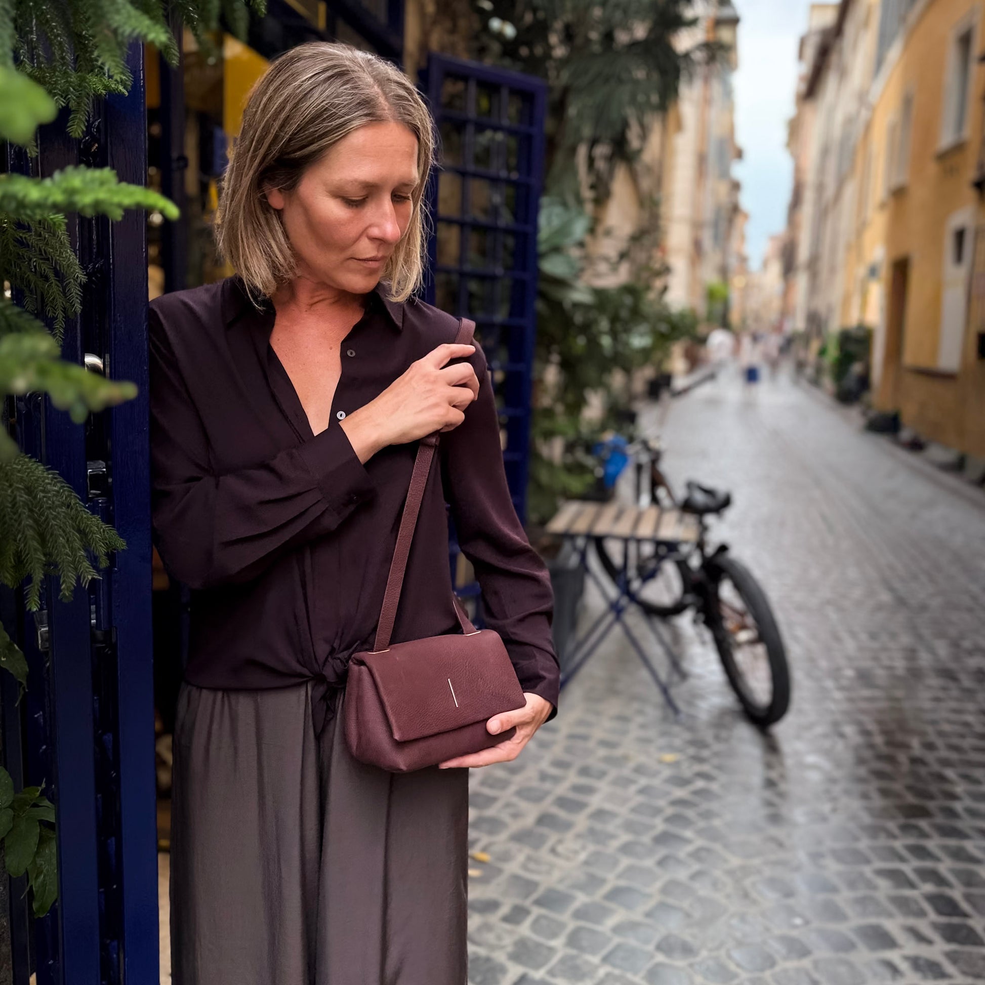 Kirby è una borsa piccola ma sorprendentemente capiente, ideale per avere sempre con sé l’essenziale. La morbidezza è valorizzata da una leggera imbottitura, mentre la patta con chiusura magnetica autocentrante garantisce praticità e sicurezza.