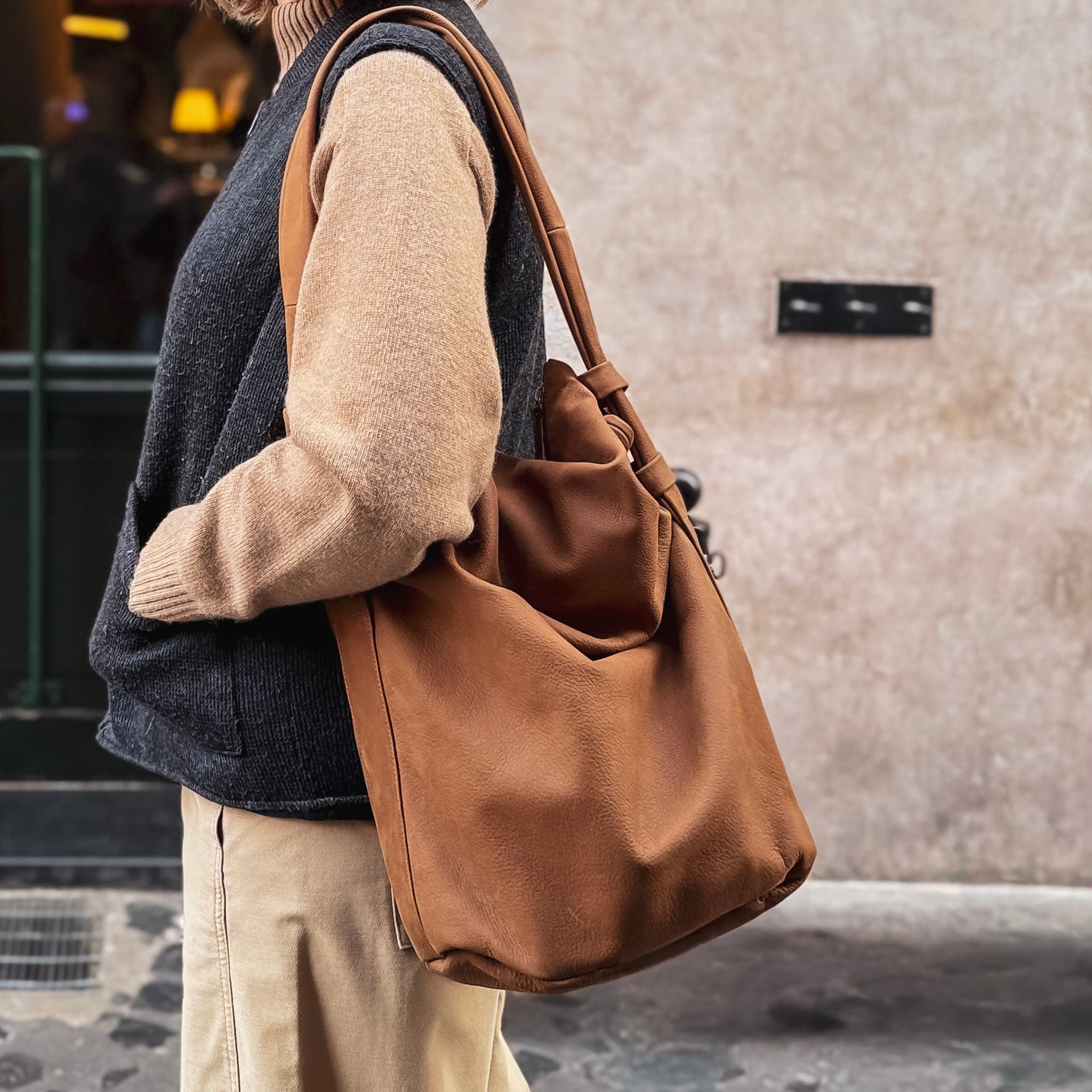 Soft leather shoulder bag.