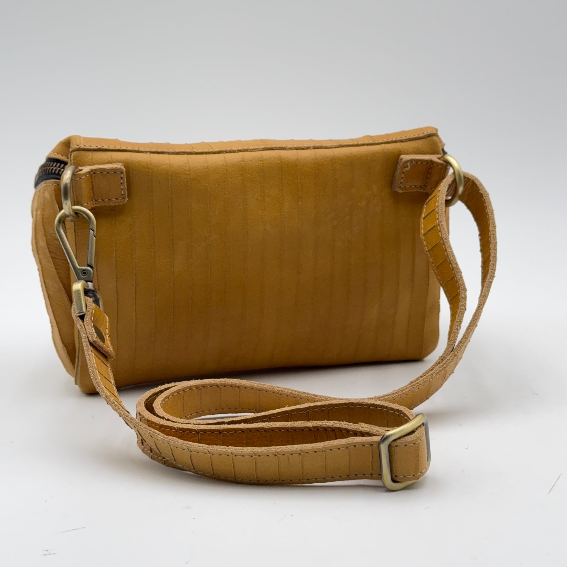 Un comodo marsupio con cinta regolabile dall'accattivante forma geometrica.