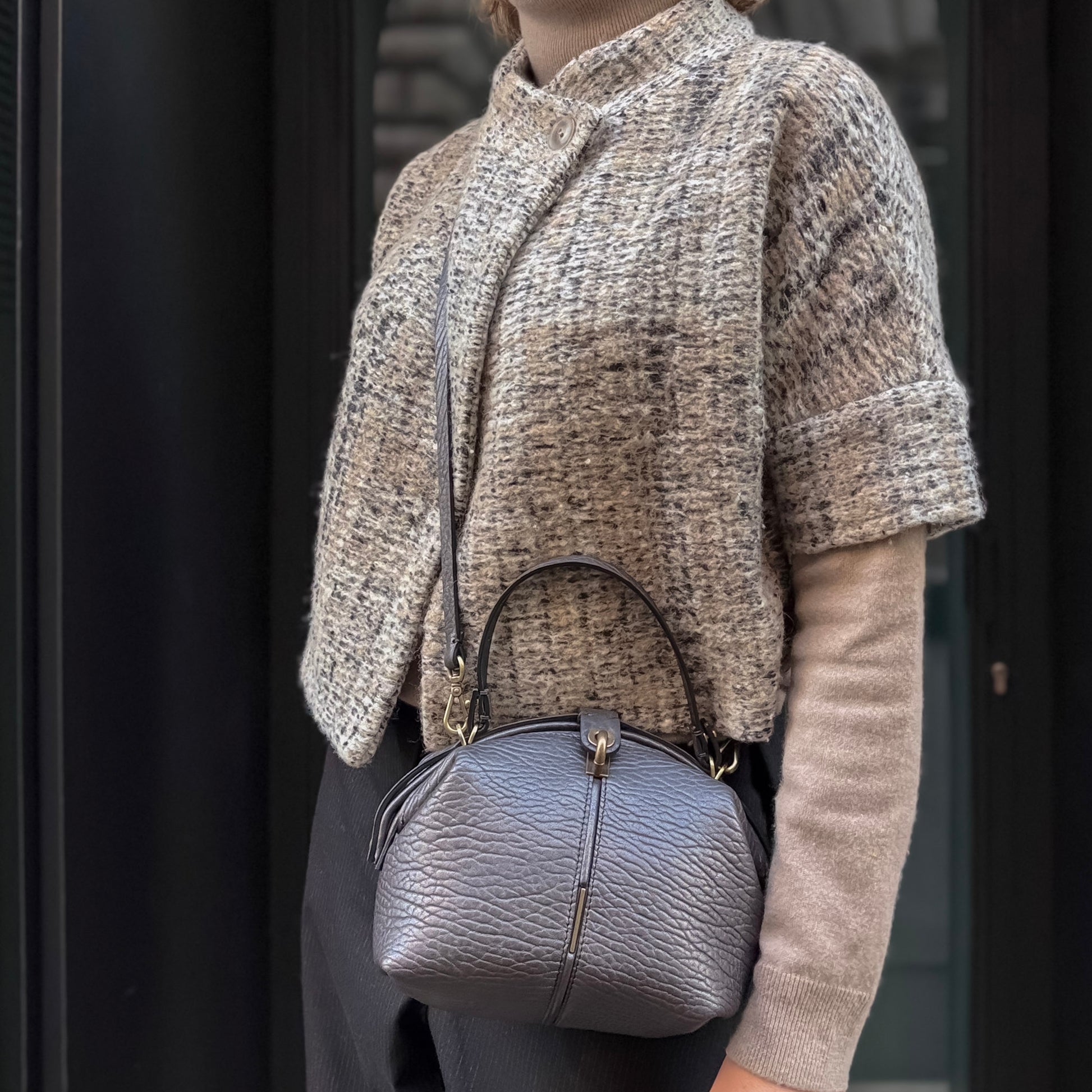 Pouf è una morbida borsa a mano con tracolla dalla forma a mezza luna.