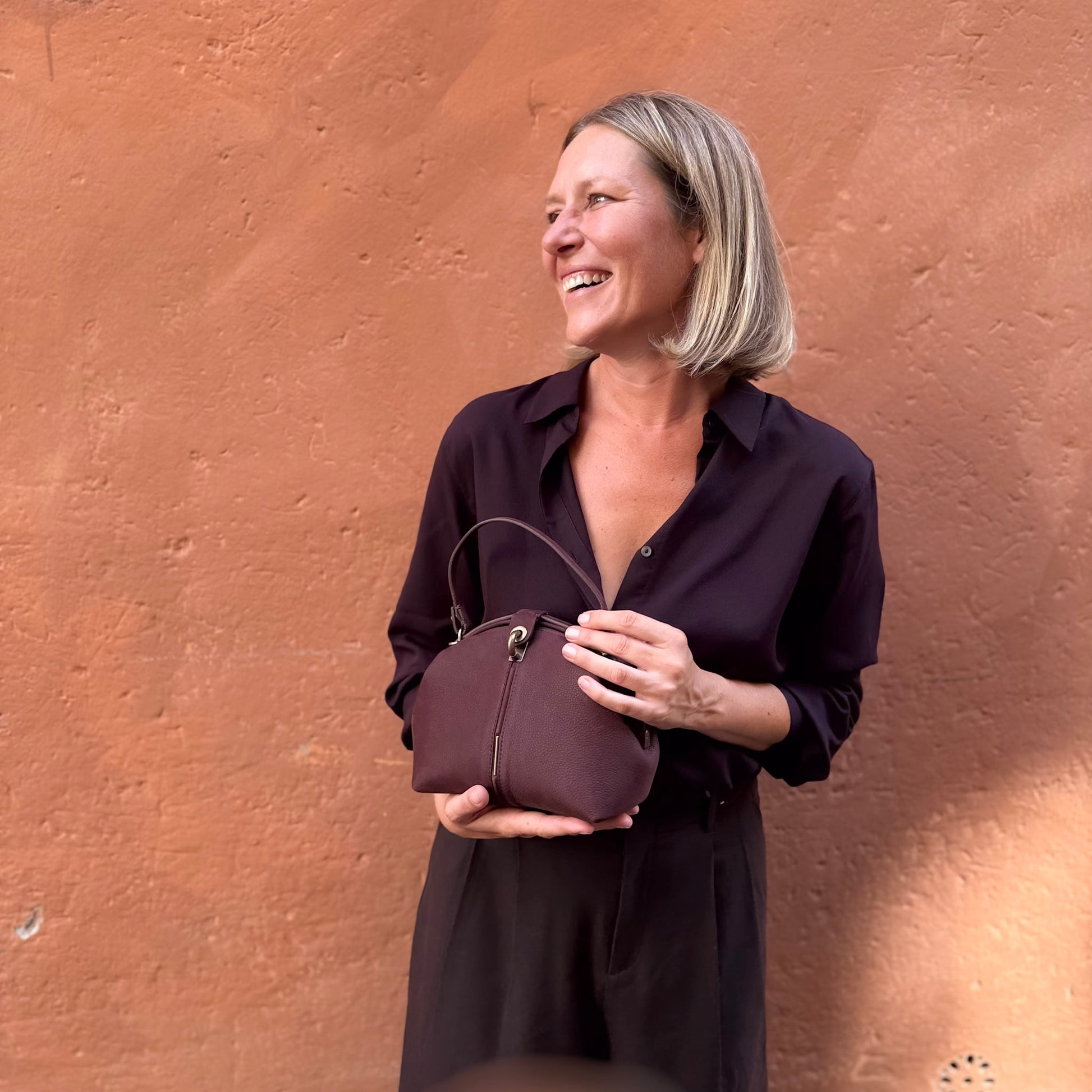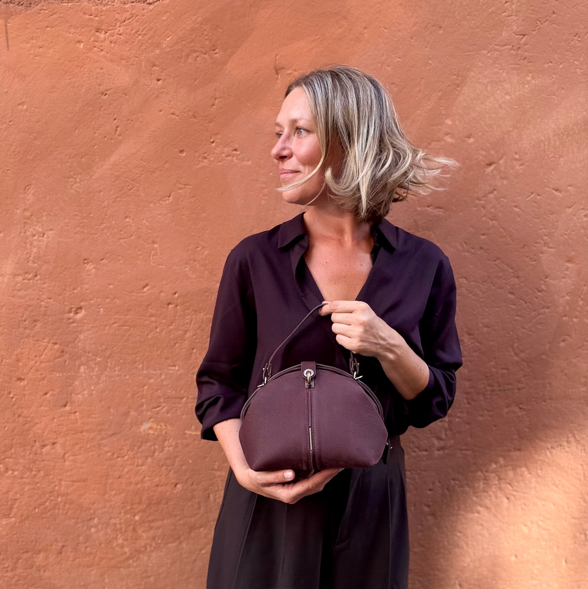 La forma arrotondata, la morbidezza della struttura e i dettagli essenziali rendono questa borsa una compagna versatile: perfetta in mano, comoda a tracolla grazie al manico corto e alla tracolla regolabile.