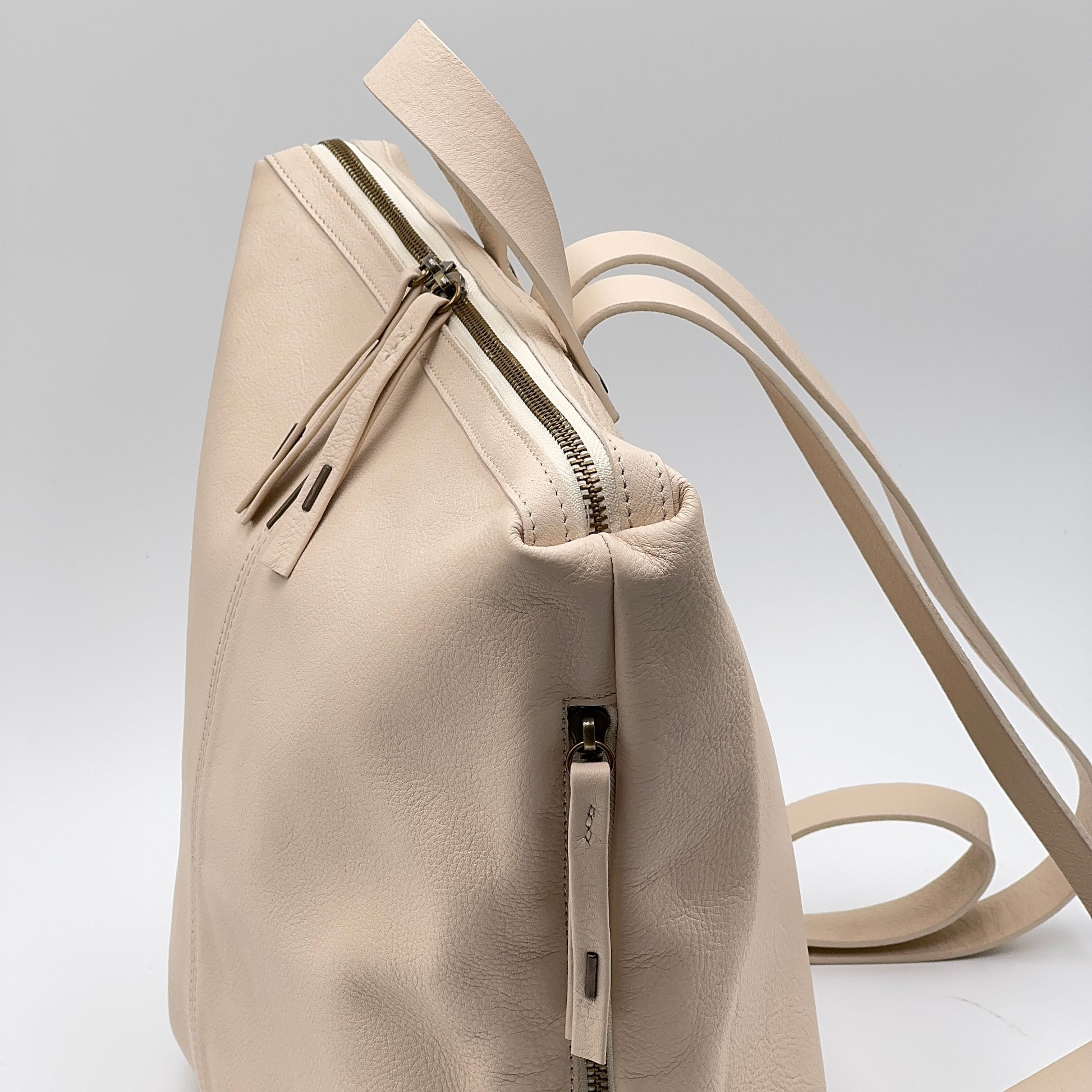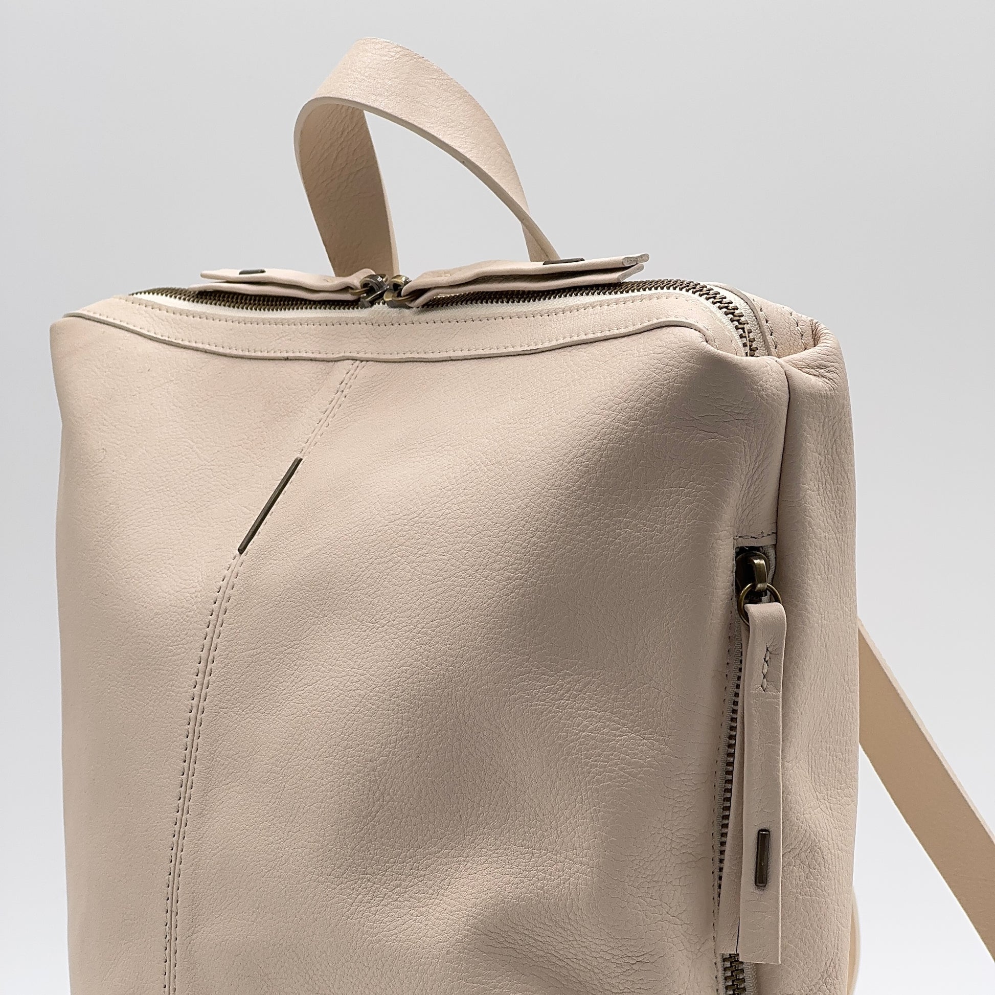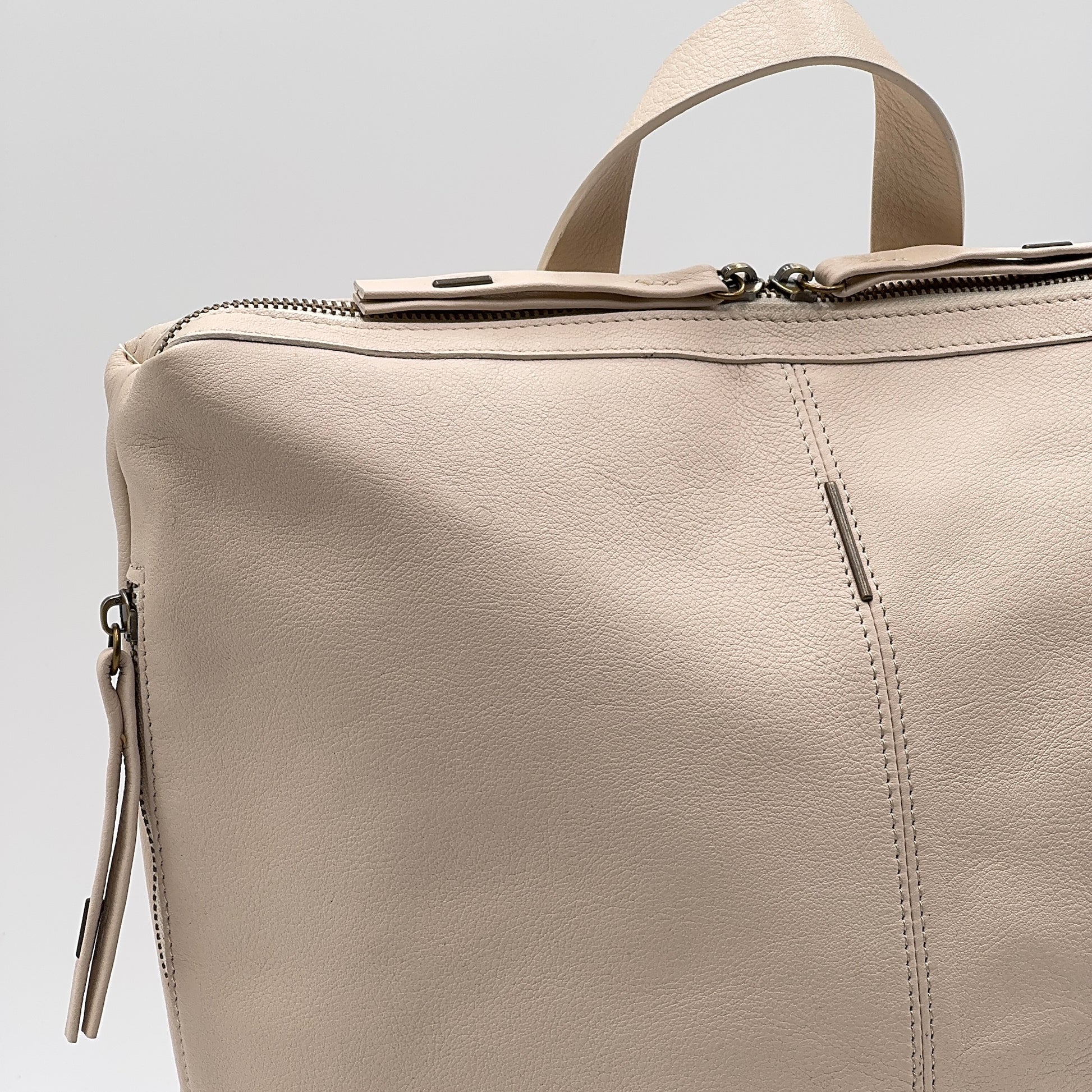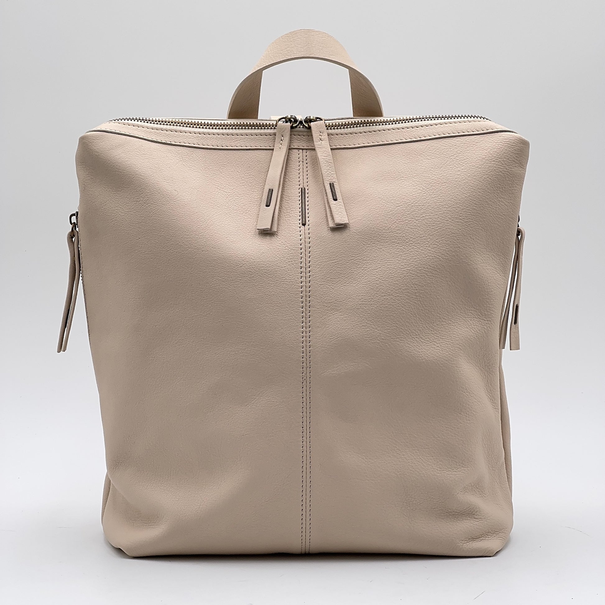 Roxy è uno zaino compatto dalla forma squadrata e dallo stile versatile – perfetto per il lavoro, gli spostamenti in città o il tempo libero. Realizzato in pelle mousse nel colore latte macchiato (un beige delicato), è morbido al tatto ma mantiene la sua struttura.