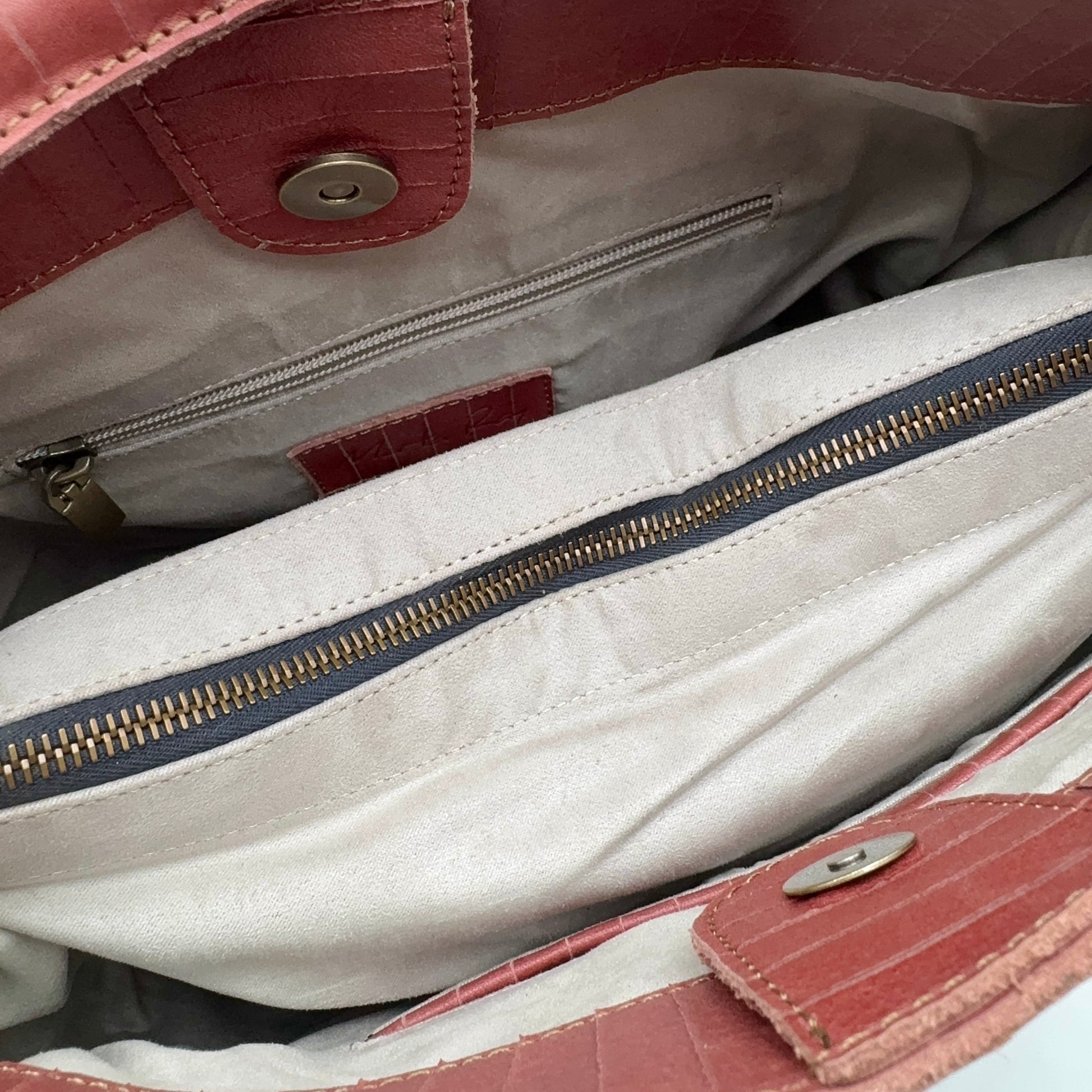 Borsa a spalla in pelle, organizzata in 3 scomparti dei quali quello centrale con la zip. Chiusura borsa con il magnete. Quadranti rettangolari e costruzione a soffietto.