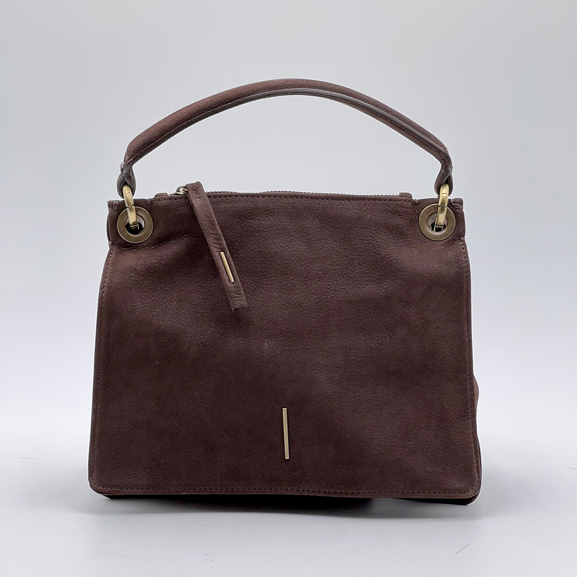 Removable shoulder strap e adjustable , handle slightly padded , lined in light micro fiber. Accessories in brass brushed.