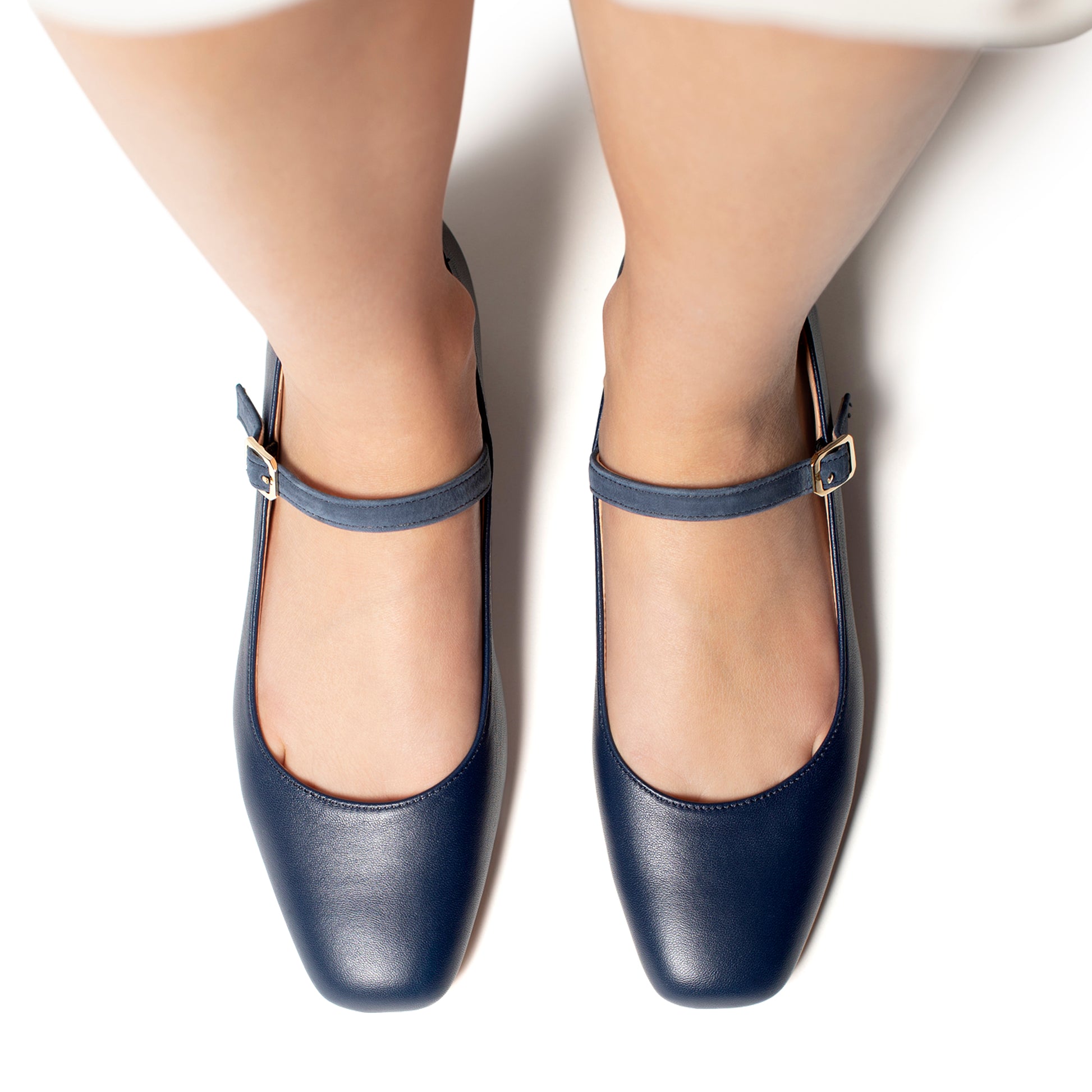 Le ballerine Arlene con il cinturino a tono garantiscono che le scarpe si adattino perfettamente ai piedi . Disponibile nel colore Blu. Fondo in Tunit, tacco da 2cm