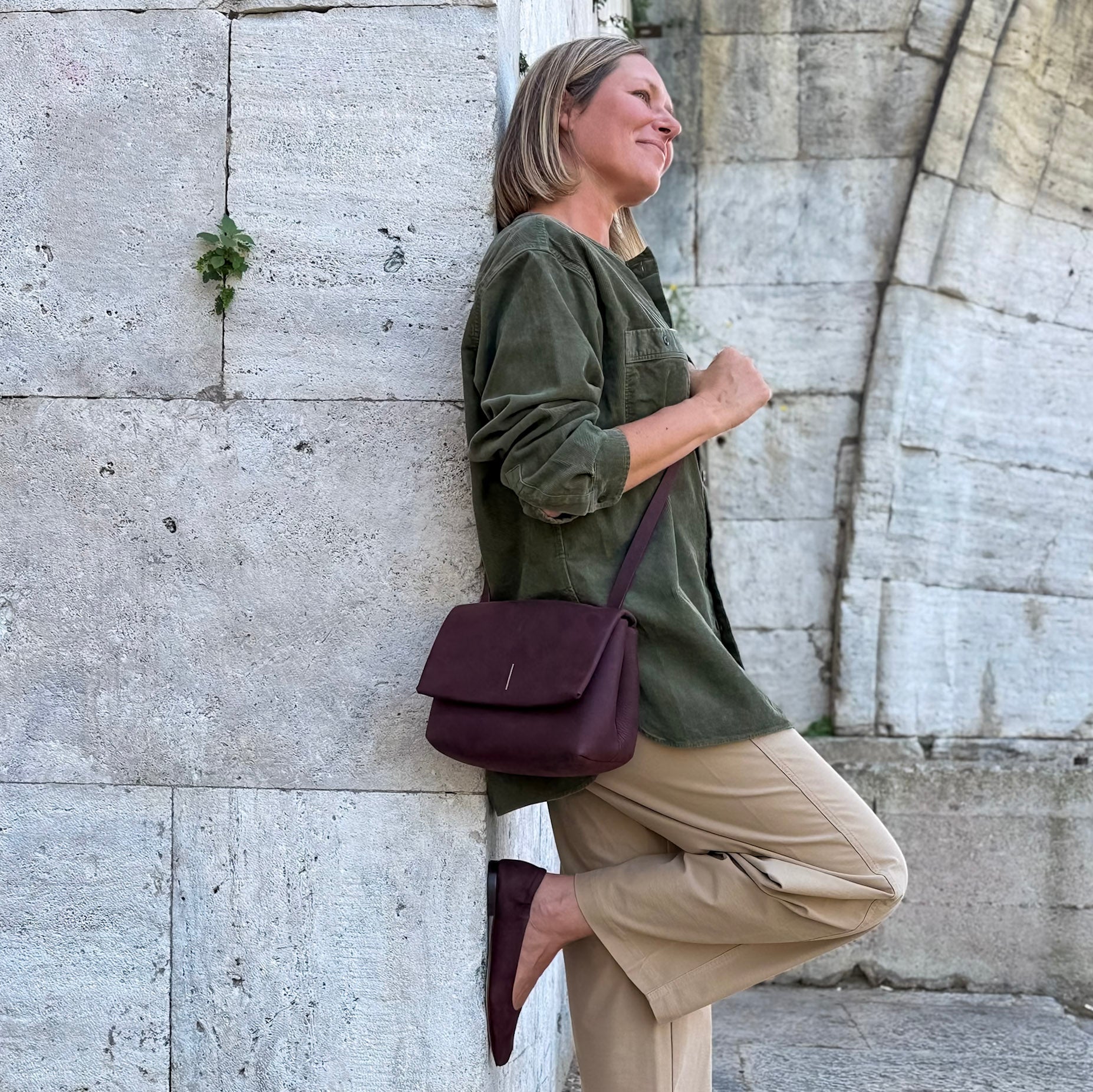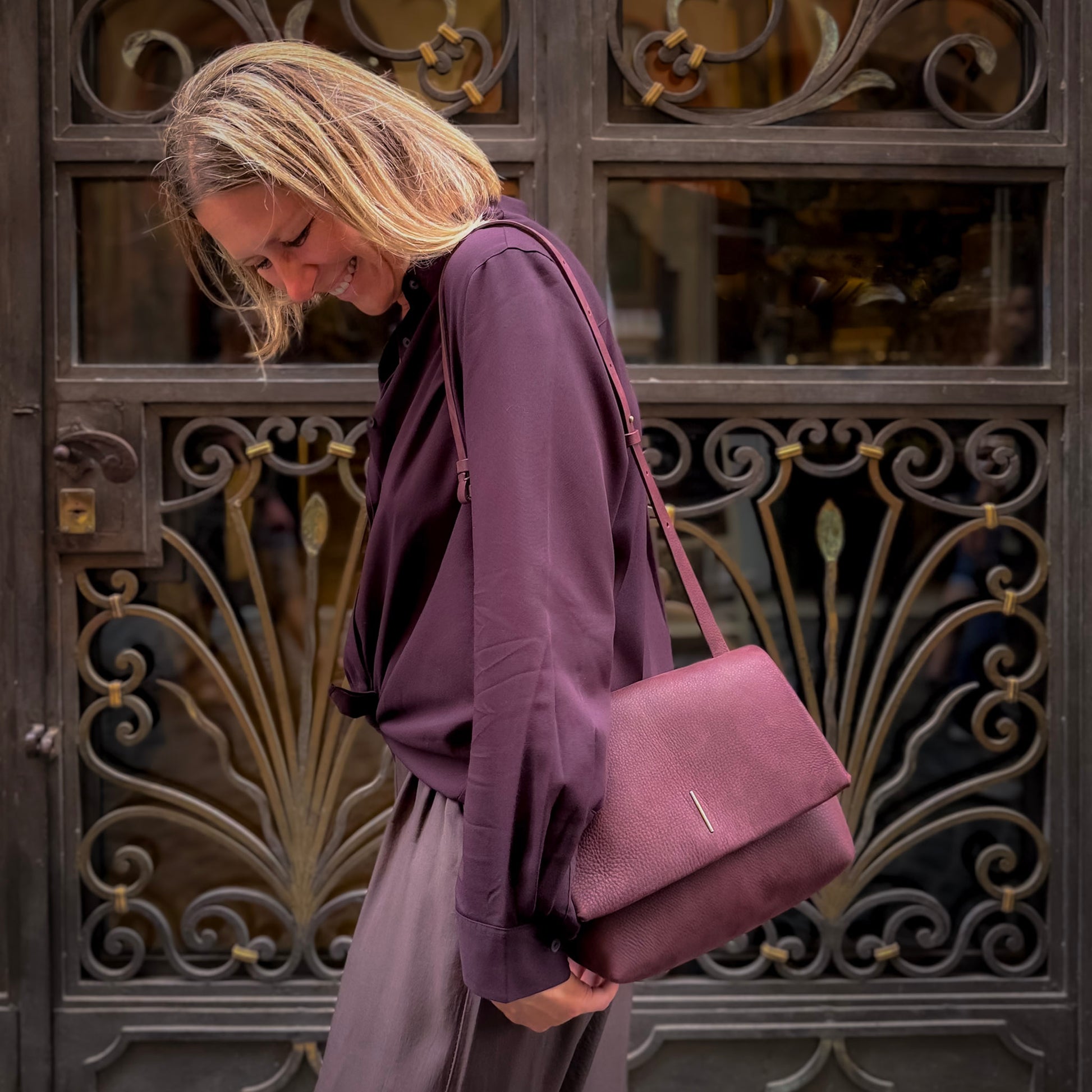 Borsa di medie dimensioni realizzata in pelle Long Beach nel colore bordeaux (Legrain). Compatta ma sorprendentemente capiente – creata per accompagnarti ogni giorno con stile e leggerezza.