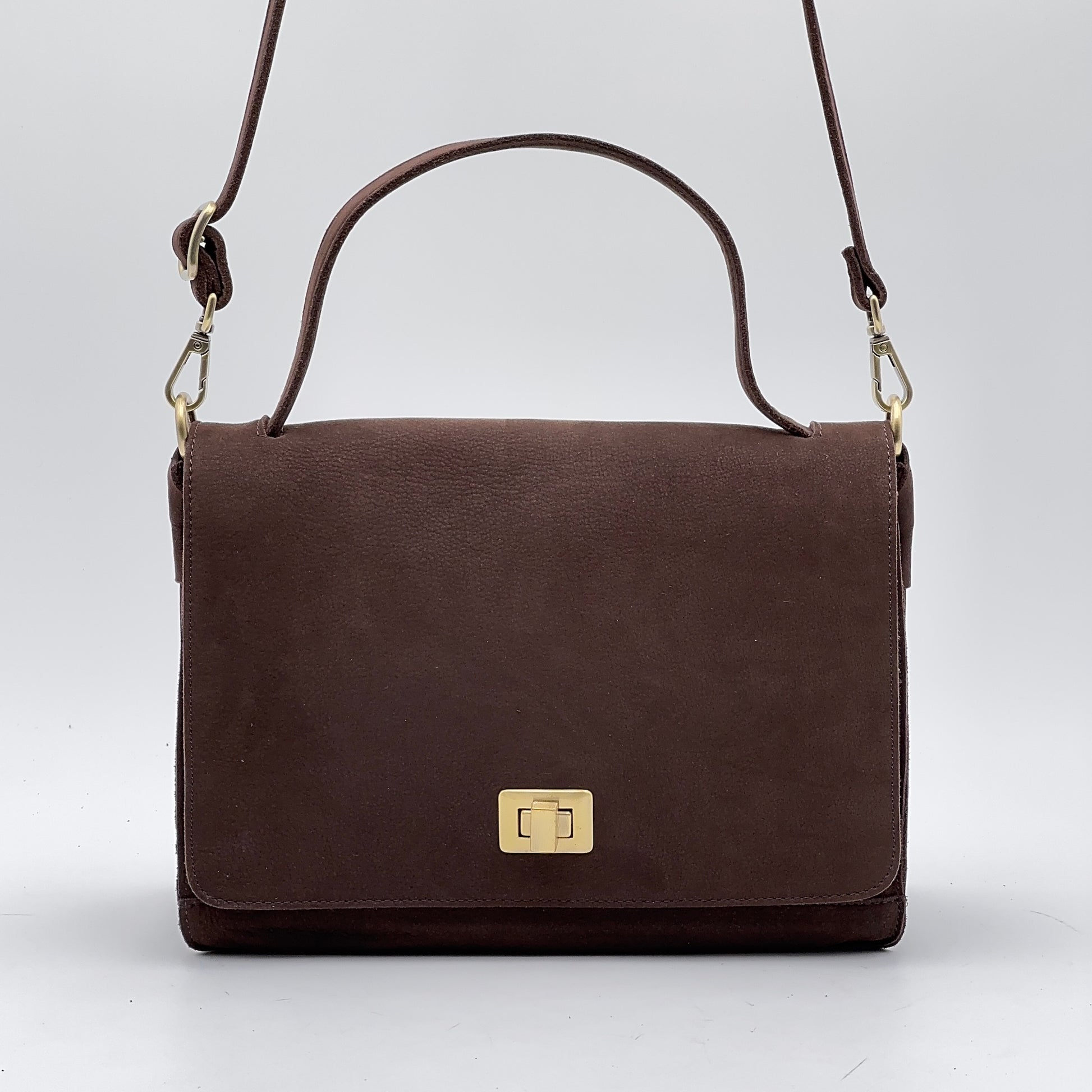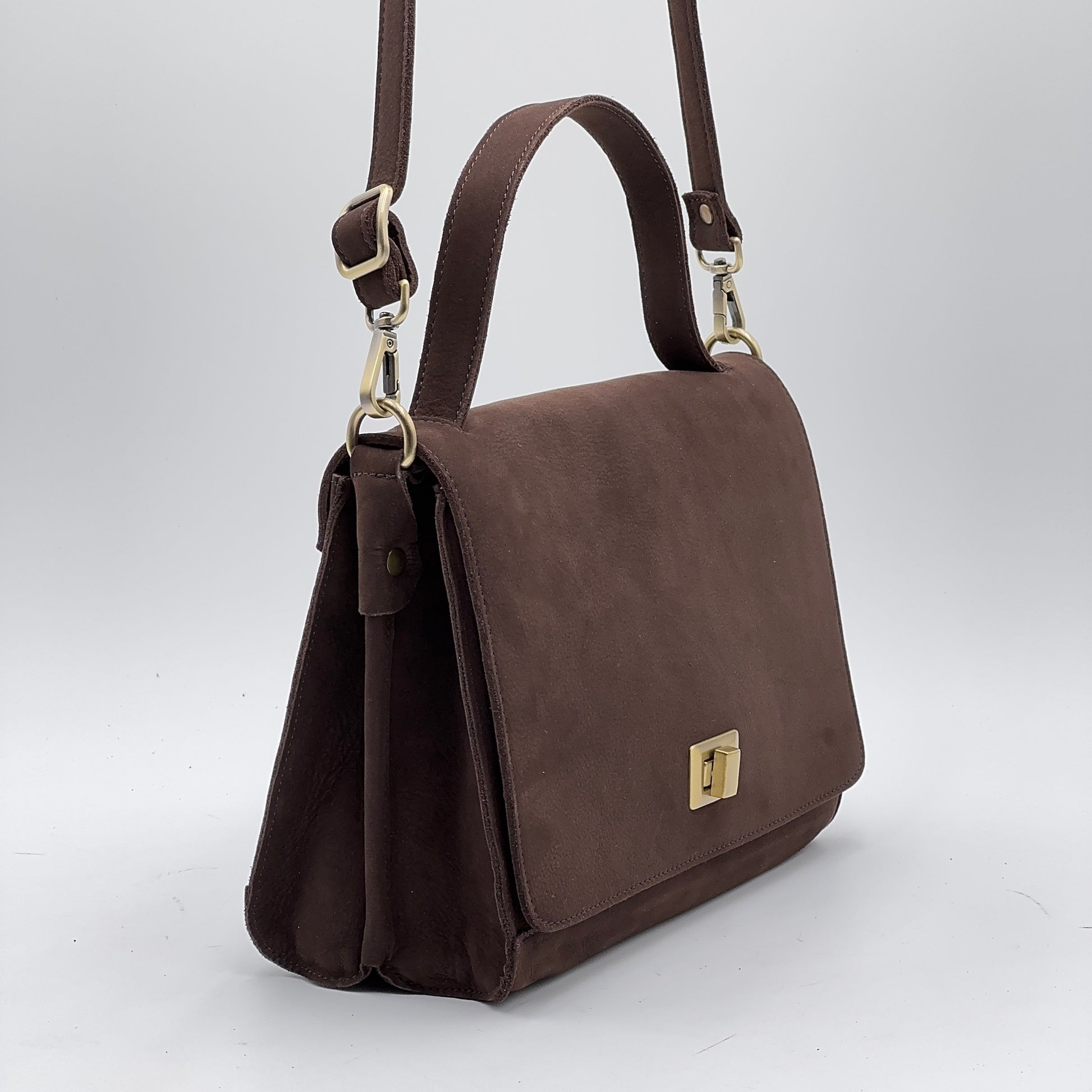 Its size is well suited to the classic bag to be carried by hand or on the arm but also, worn more freely as a postman , by applying the adjustable shoulder strap .