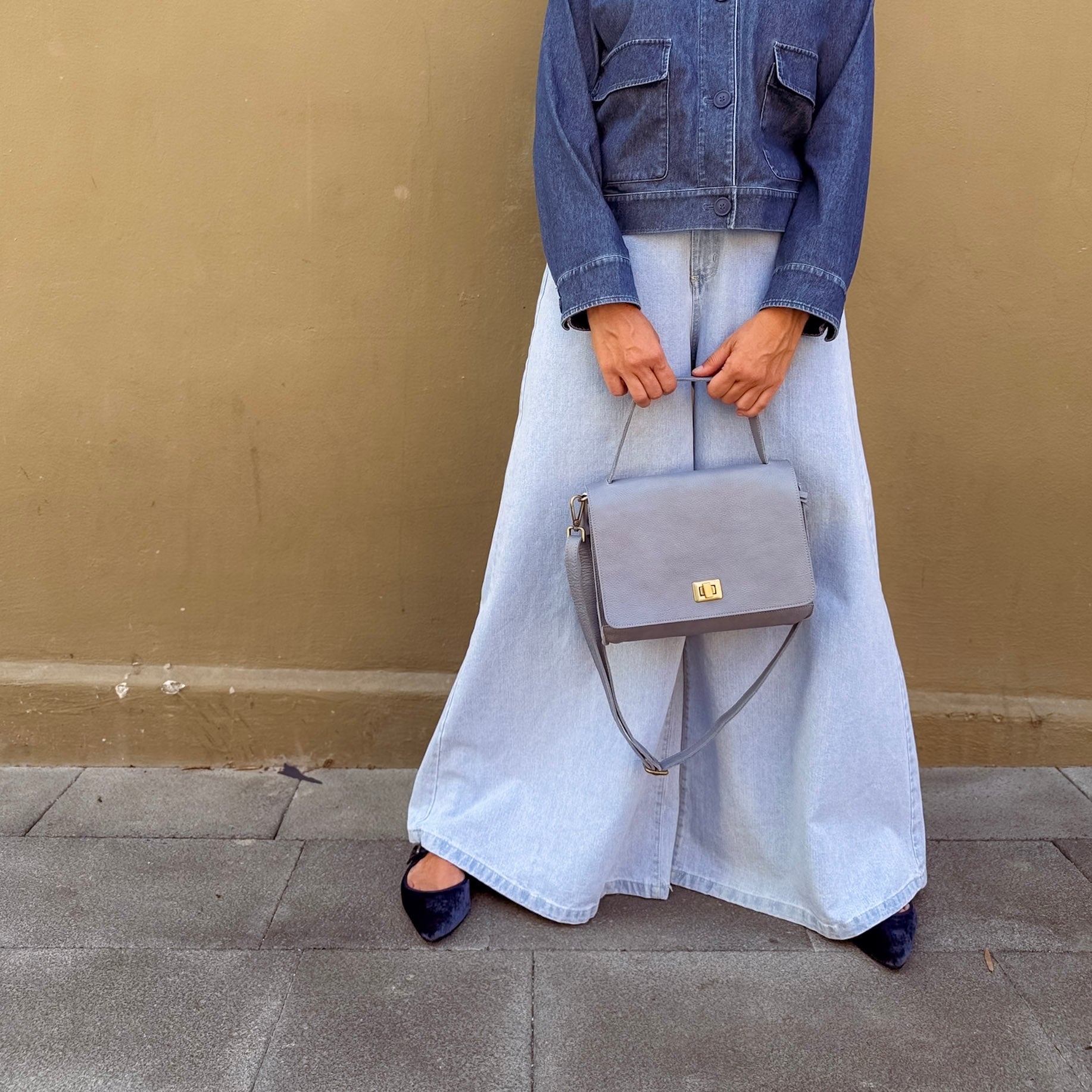 Its size is well suited to the classic bag to be carried by hand or on the arm but also, worn more freely as a postman , by applying the adjustable shoulder strap .