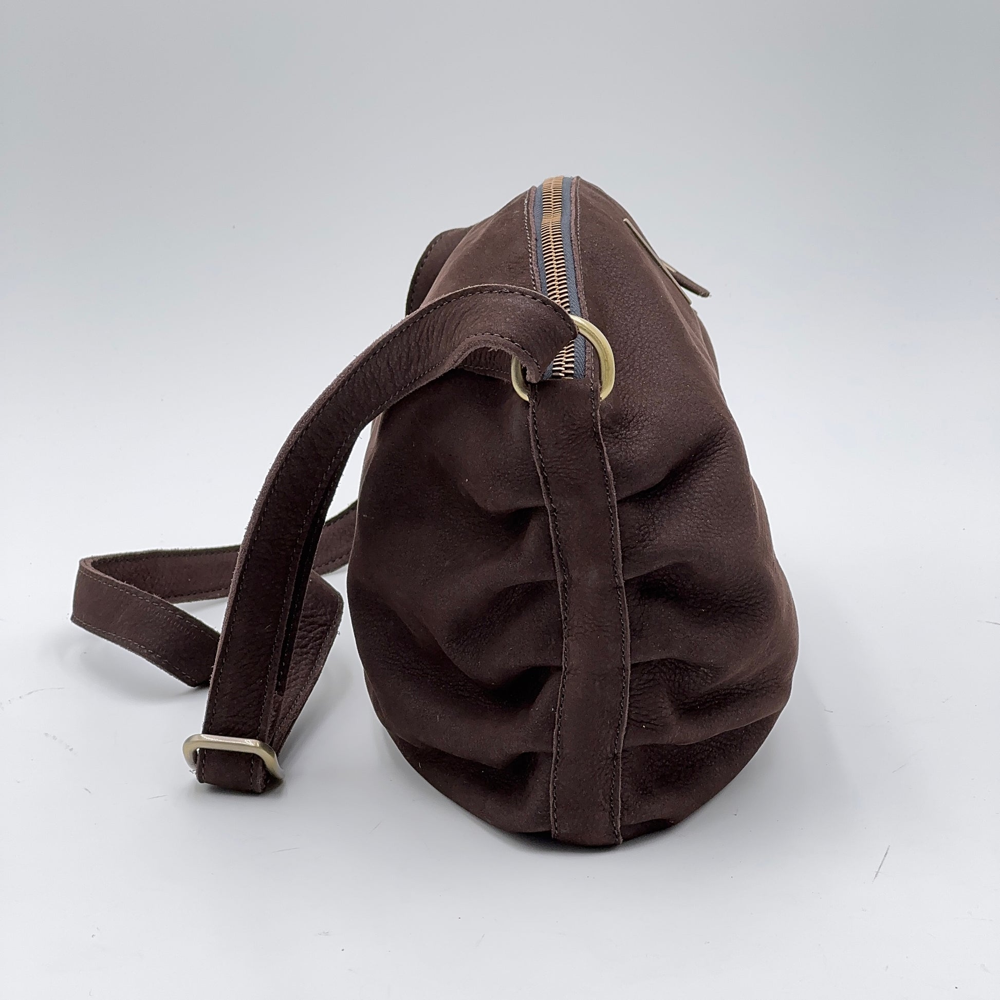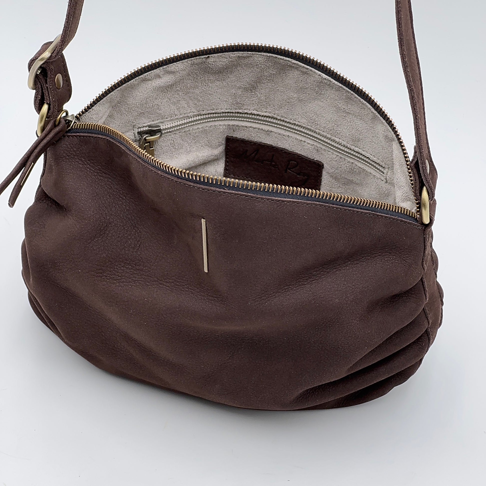 Small but roomy, it is very soft thanks to the use of full-grain leather