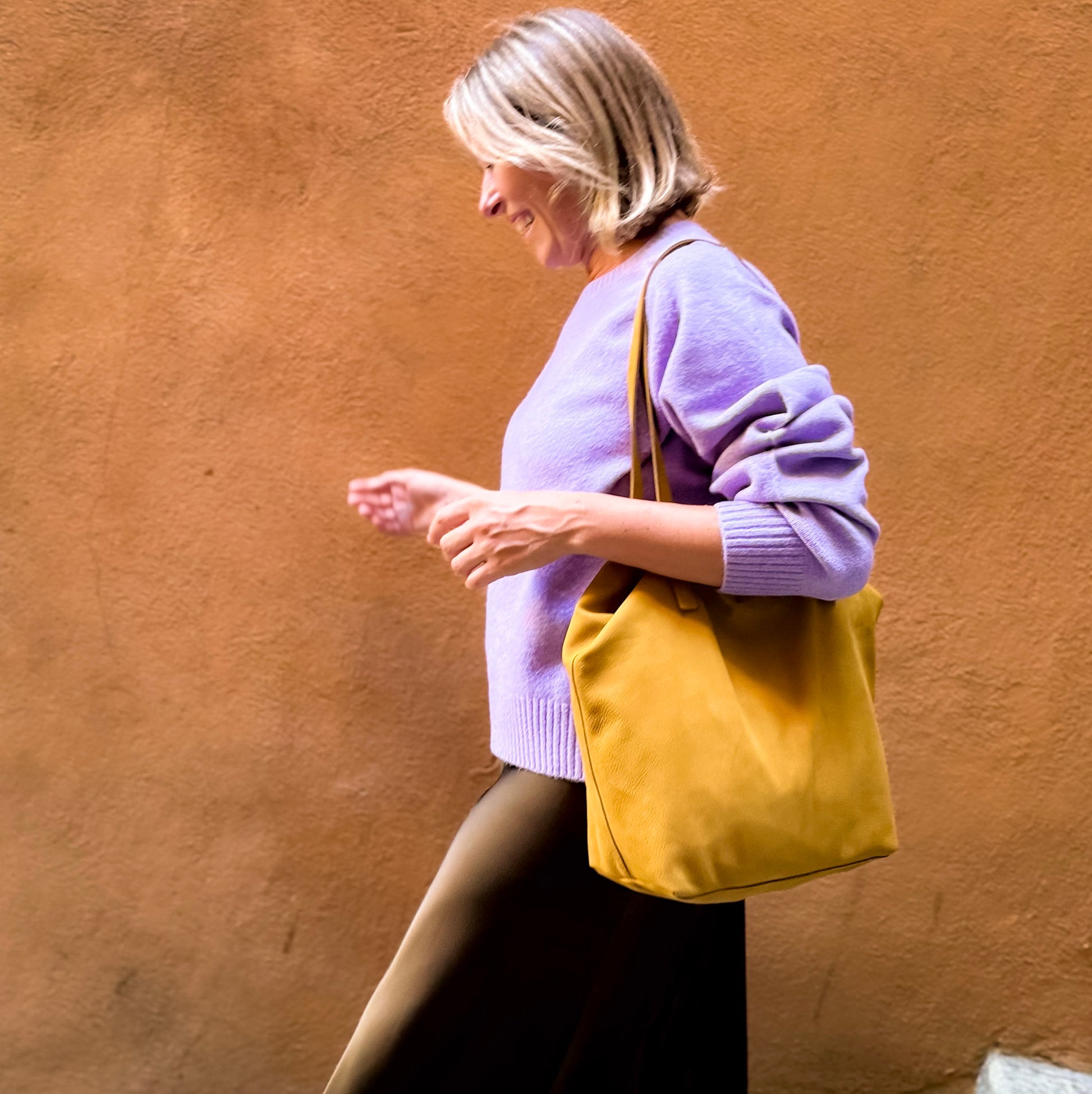 Linee morbide e anima forte: la Alice Bag in long beach color ambra, un tono caldo e luminoso simile al mostarda, è pensata per accompagnarti ogni giorno con stile e affidabilità. L’inserto interno con zip, completamente removibile, dona struttura alla borsa, mantenendo la flessibilità del design. La pelle naturale, dalla texture buccia di pesca.