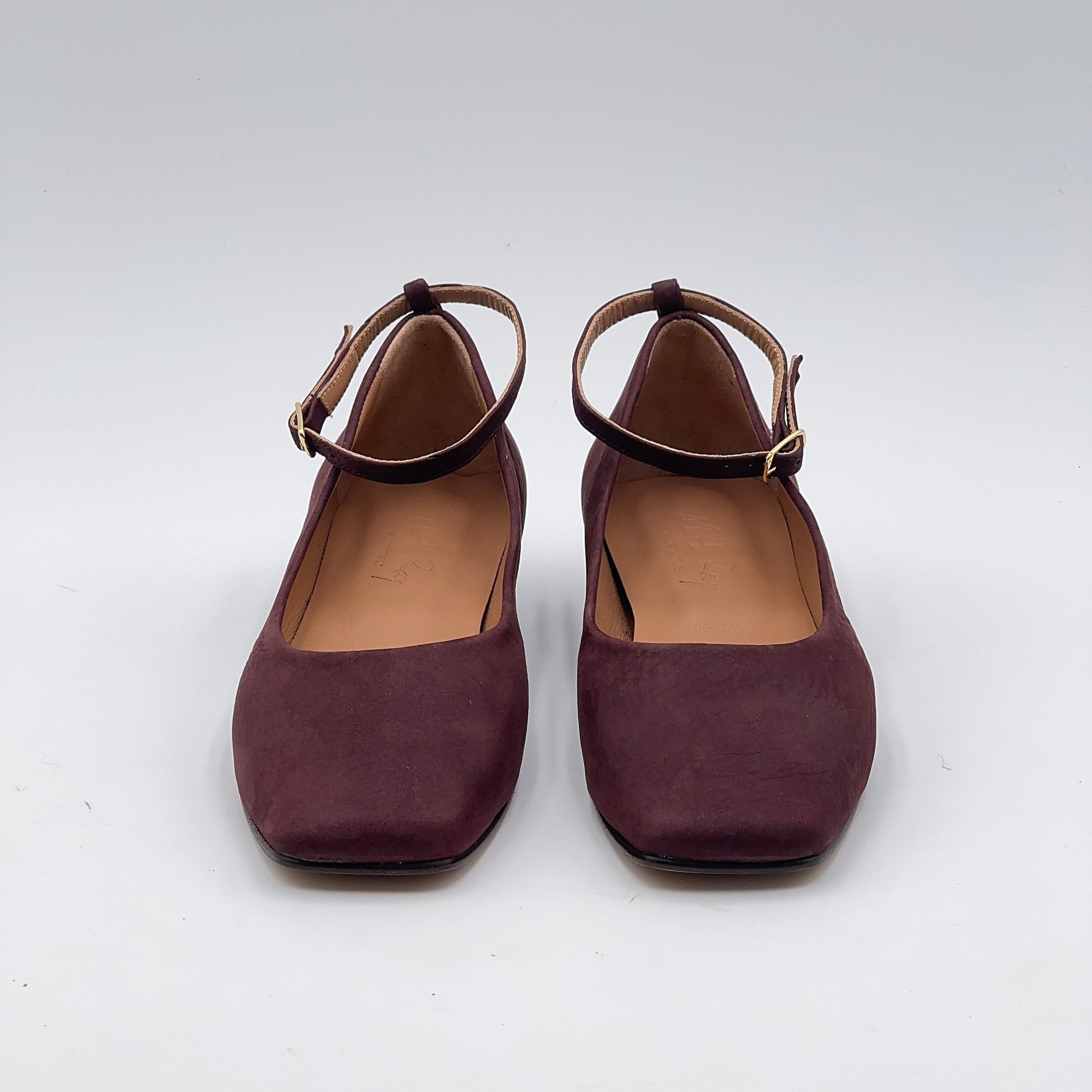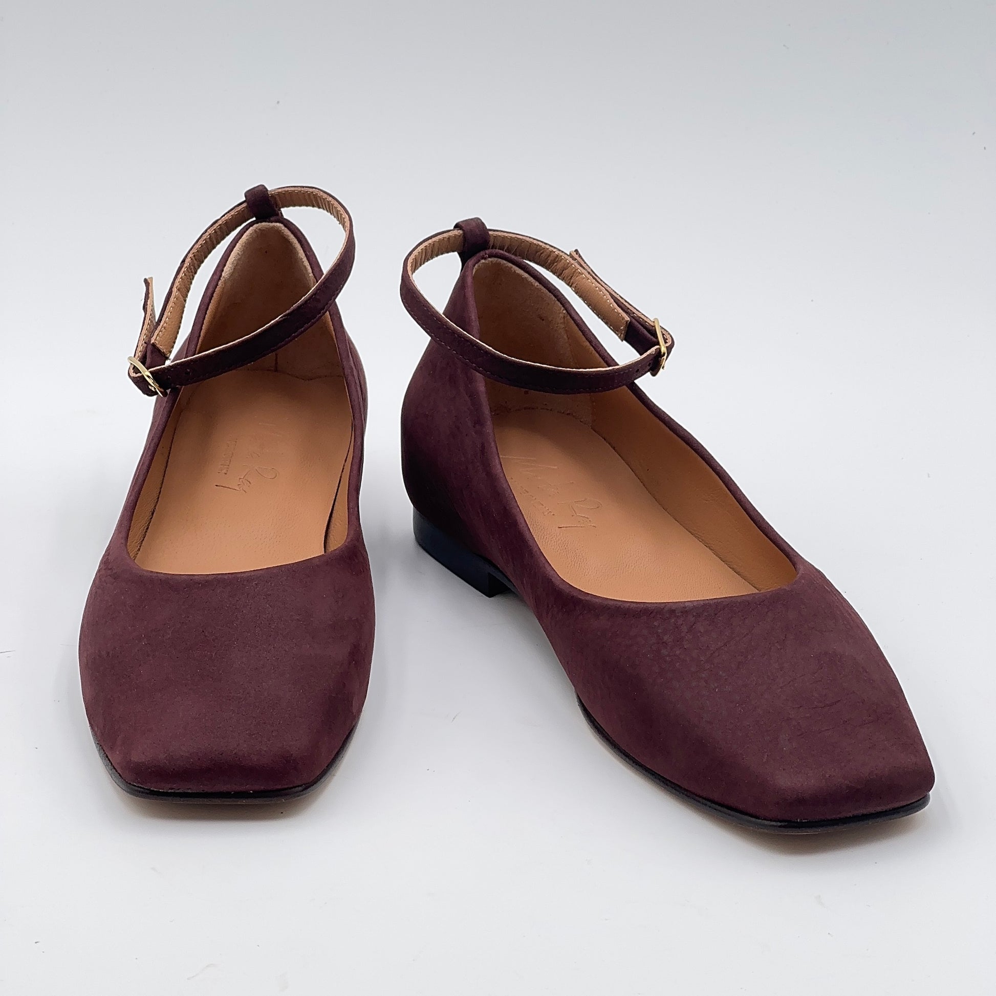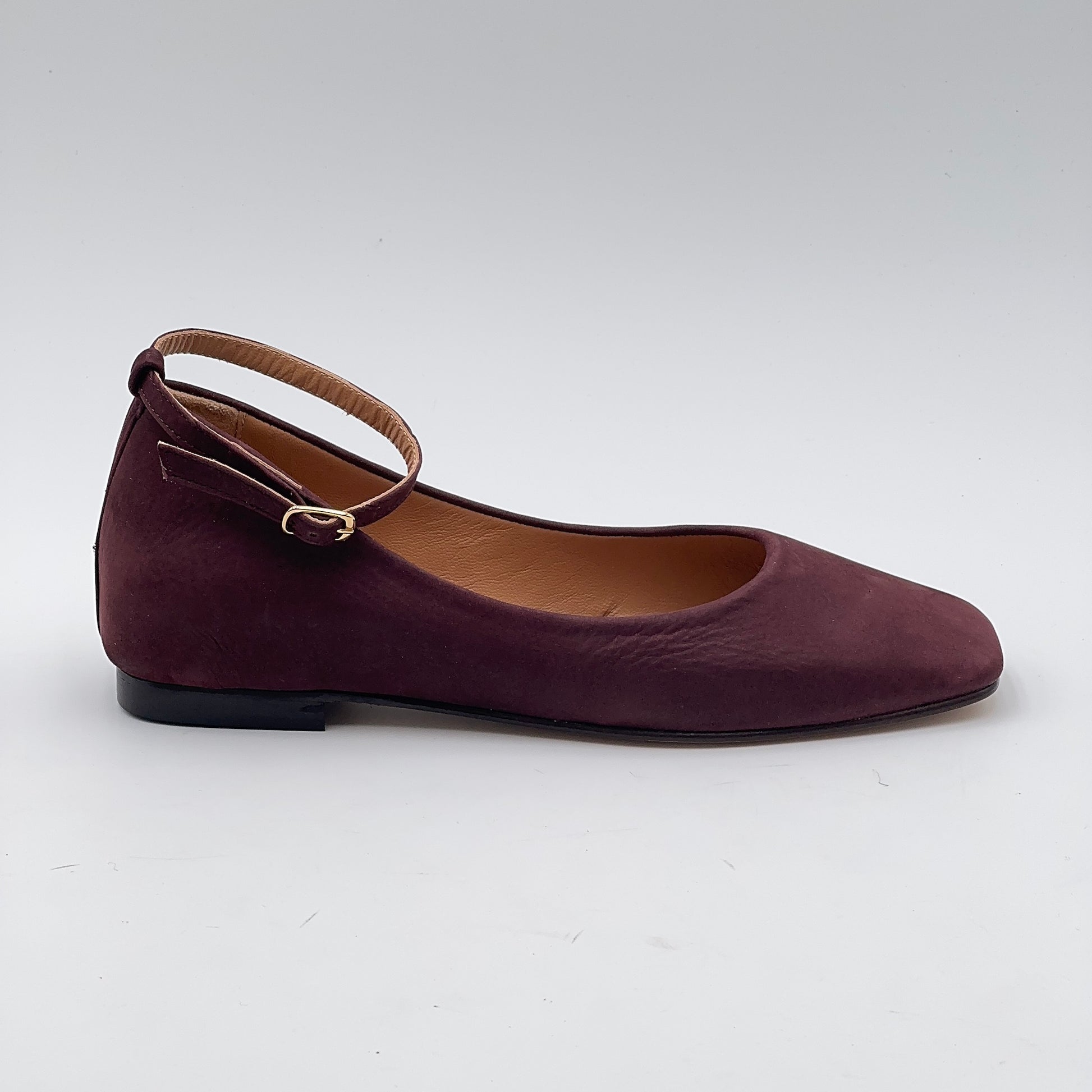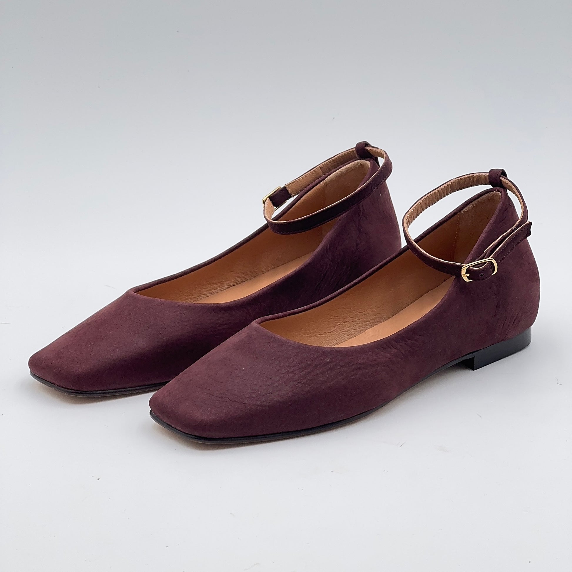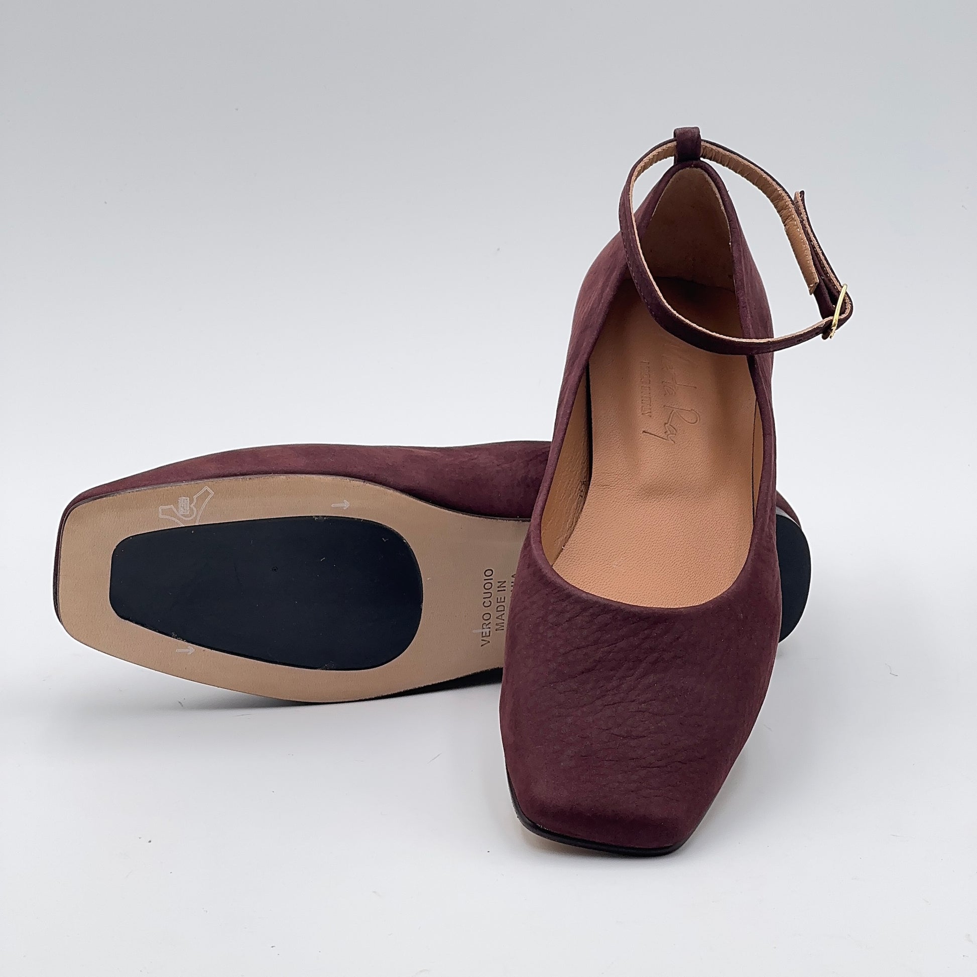 L'iconica ballerina a punta quadrata Marta Ray, realizzata a mano in morbida pelle, con un cinturino in cuoio regolabile alla caviglia.