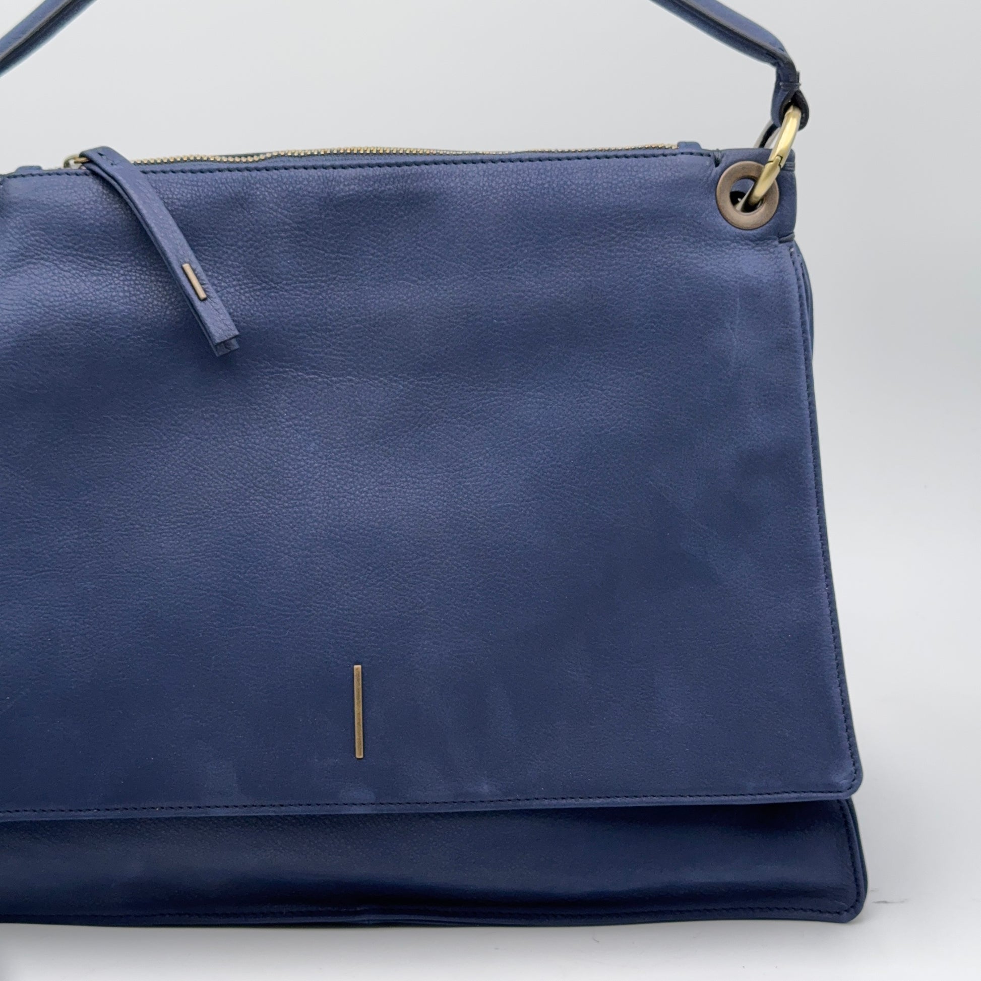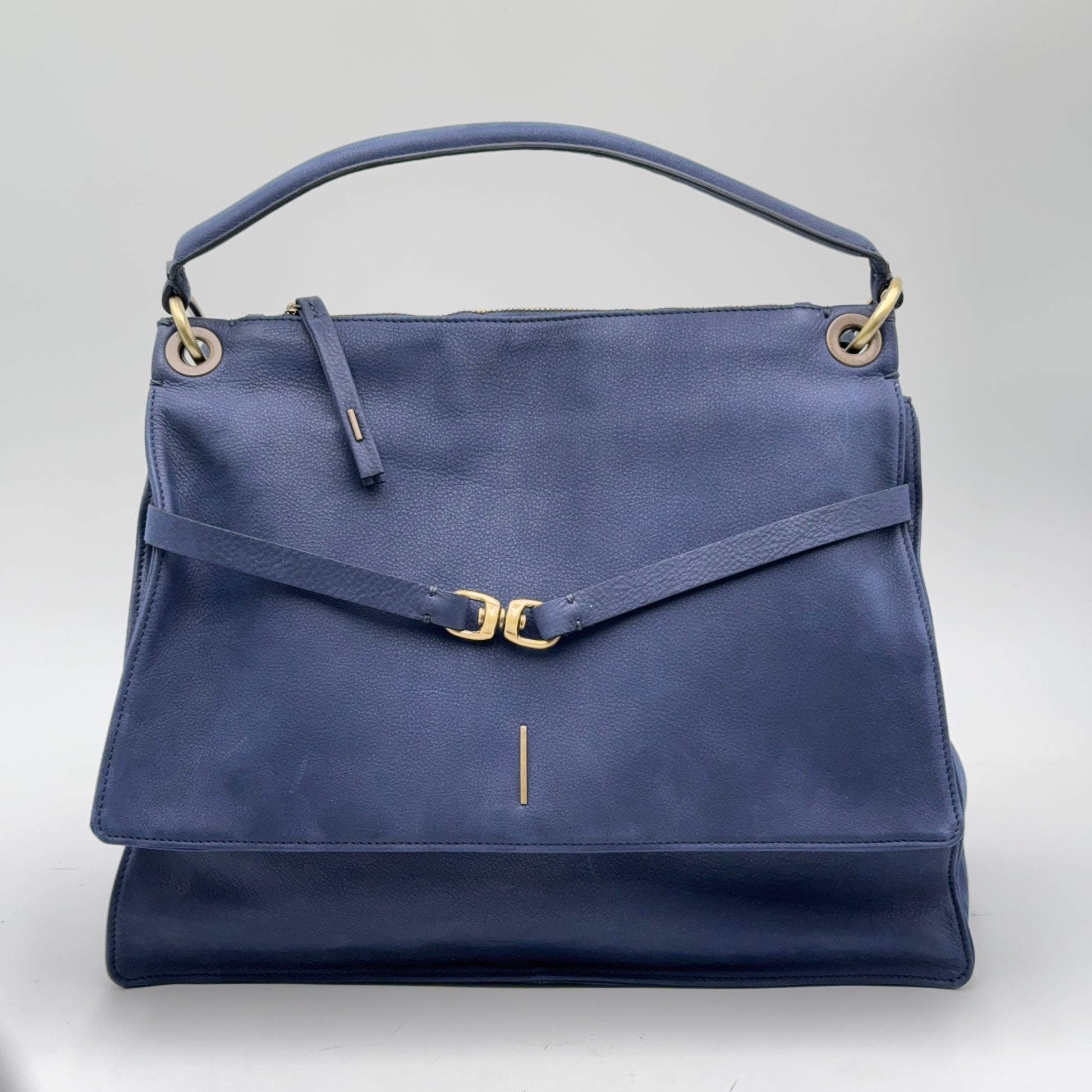 Borsa capiente in pelle Long Beach color nautica, un blu profondo ed elegante. I profili rimboccati rifiniti a mano e la doppia chiusura magnetica sotto la patta le conferiscono stile e funzionalità.