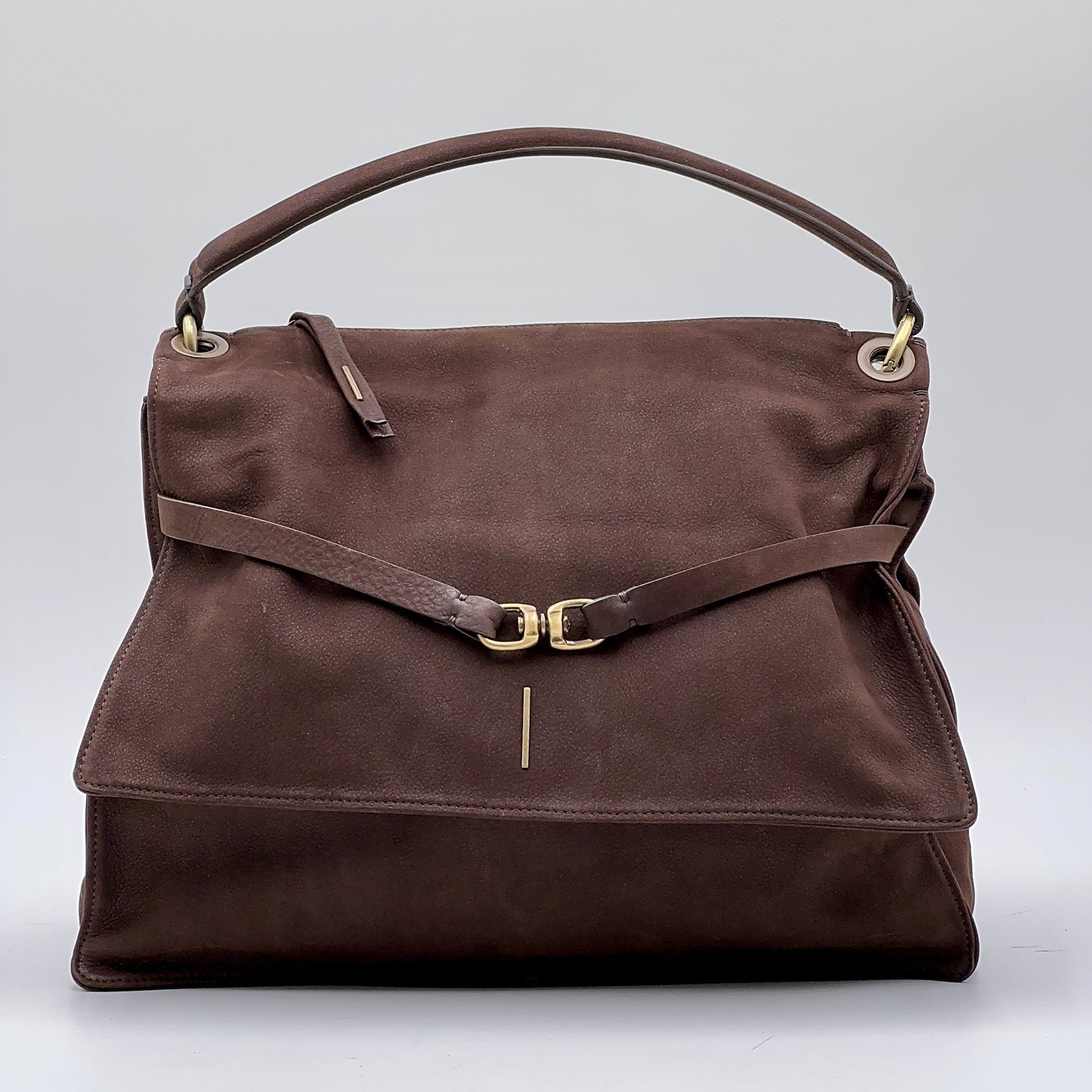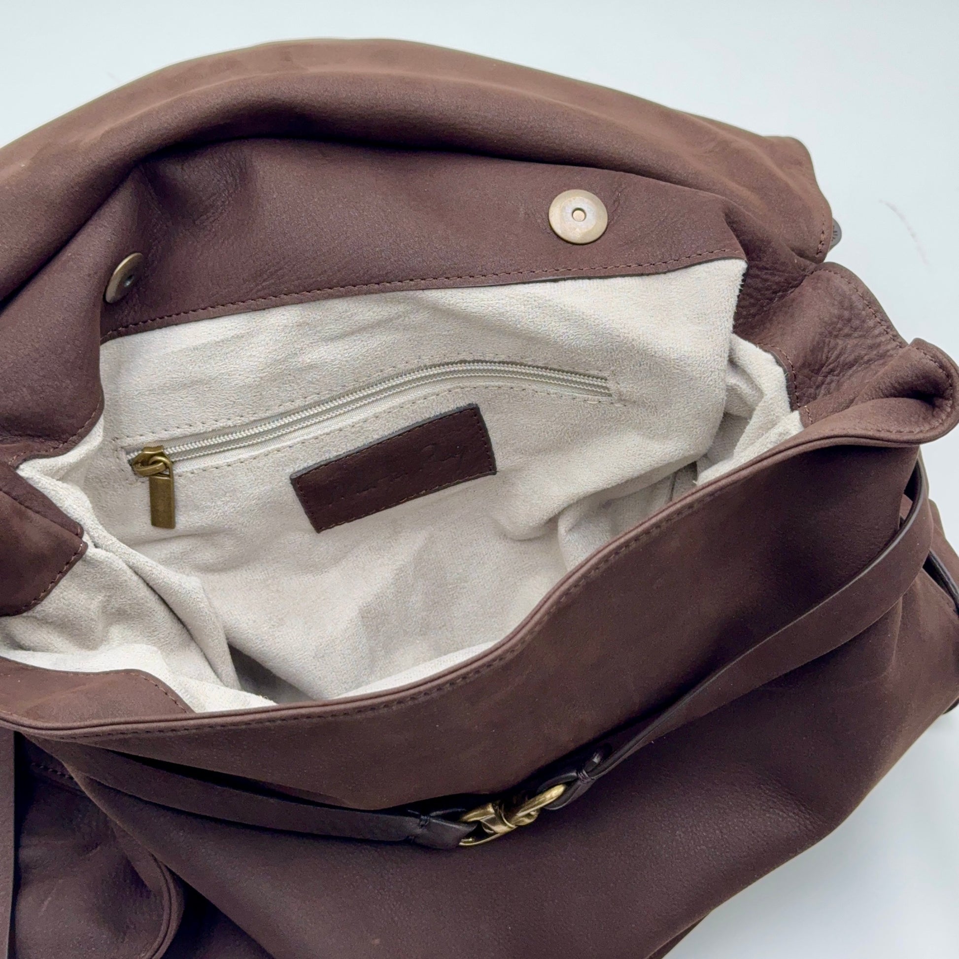 Bordi cuciti e rimboccati per dare un tocco morbido, vari rinforzi cuciti a mano e la patta doppiata che nasconde una ampia apertura con doppia chiusura magnetica
