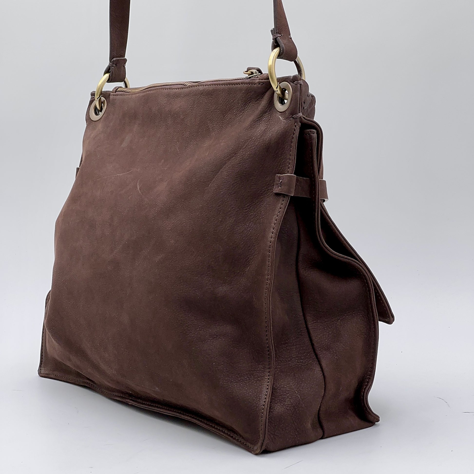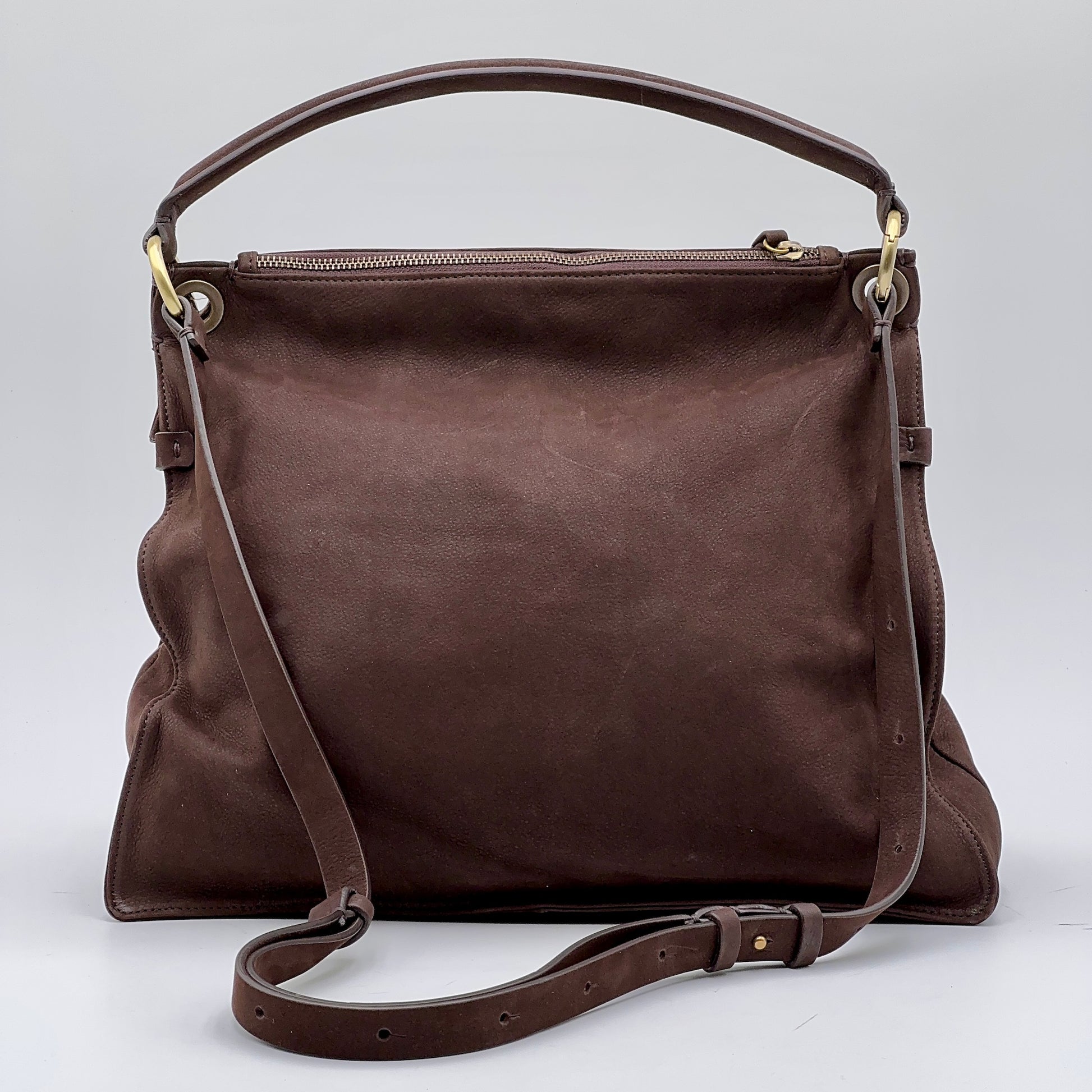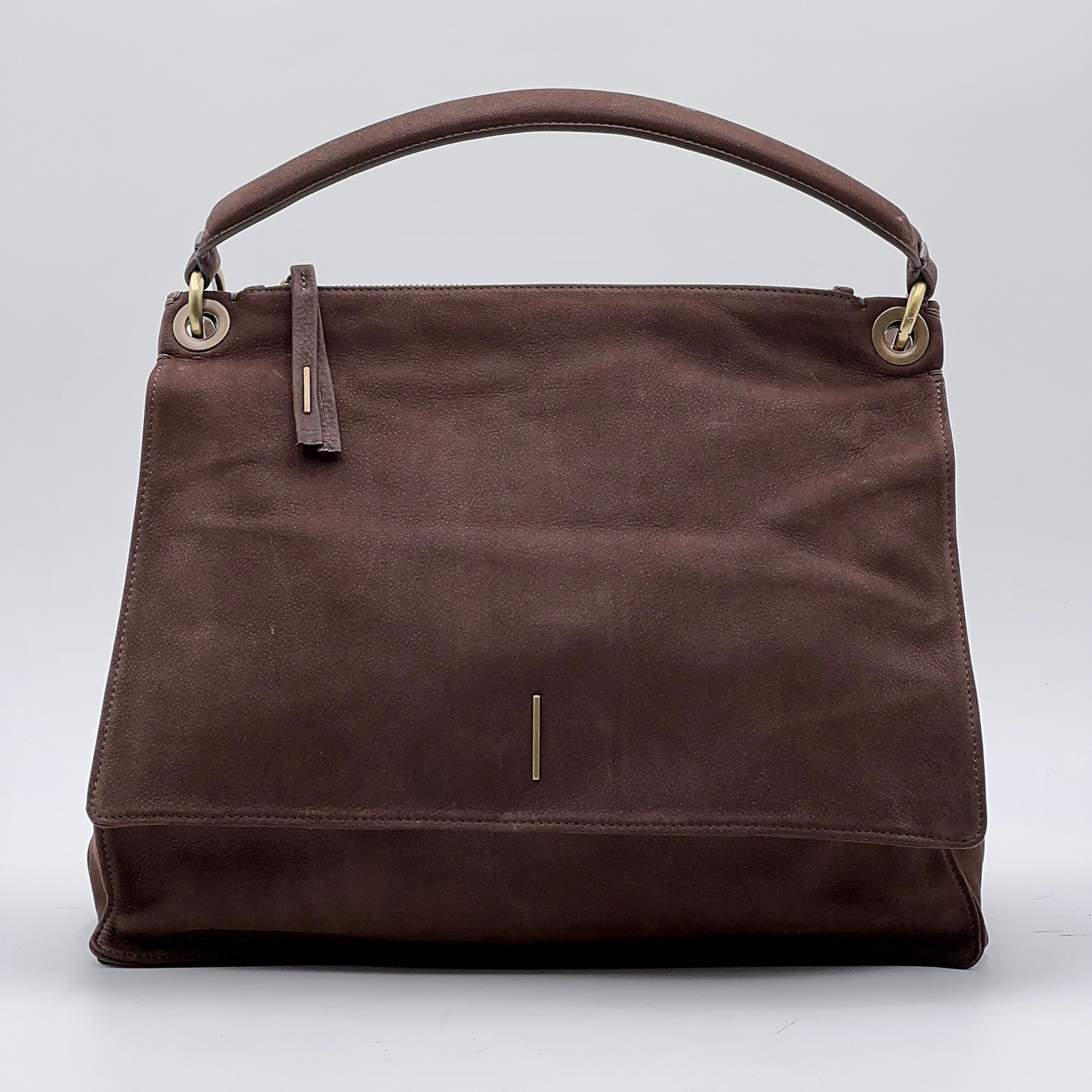 Tracolla rimovibile e regolabile, manico leggermente imbottito, foderata in micro fibra chiara. Accessori in ottone spazzolato.