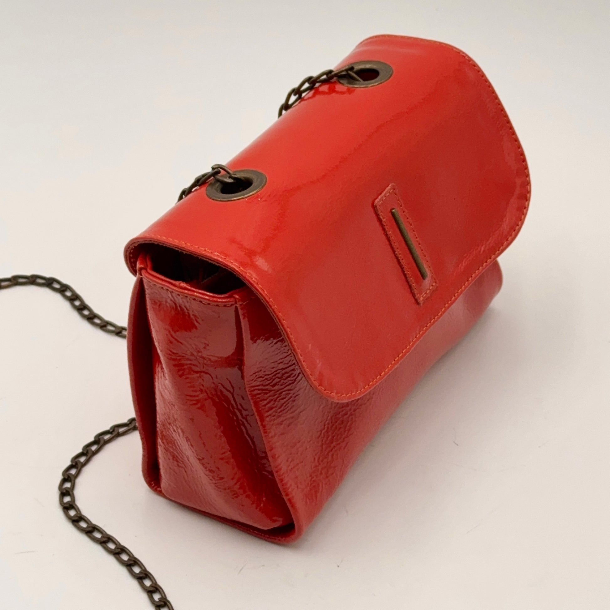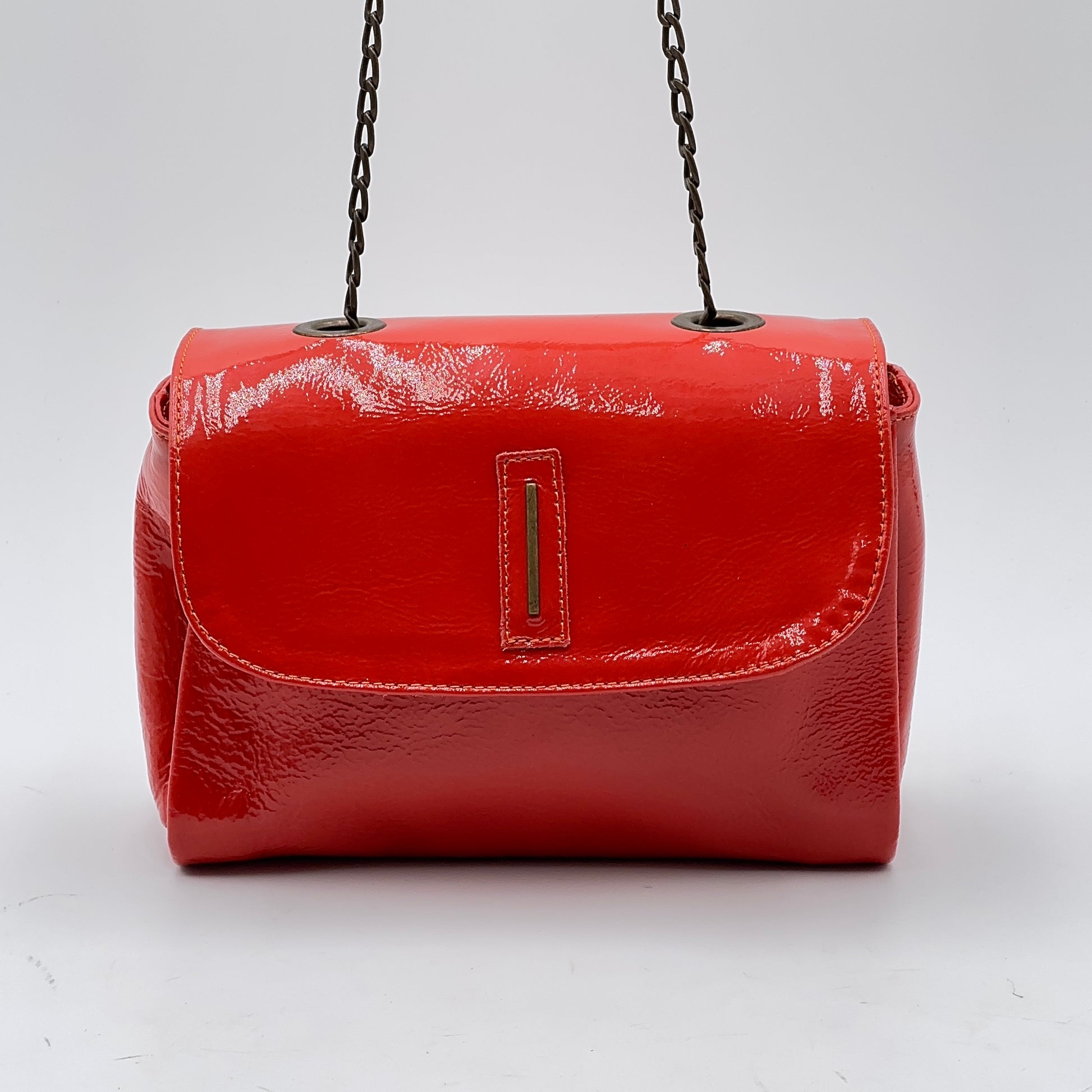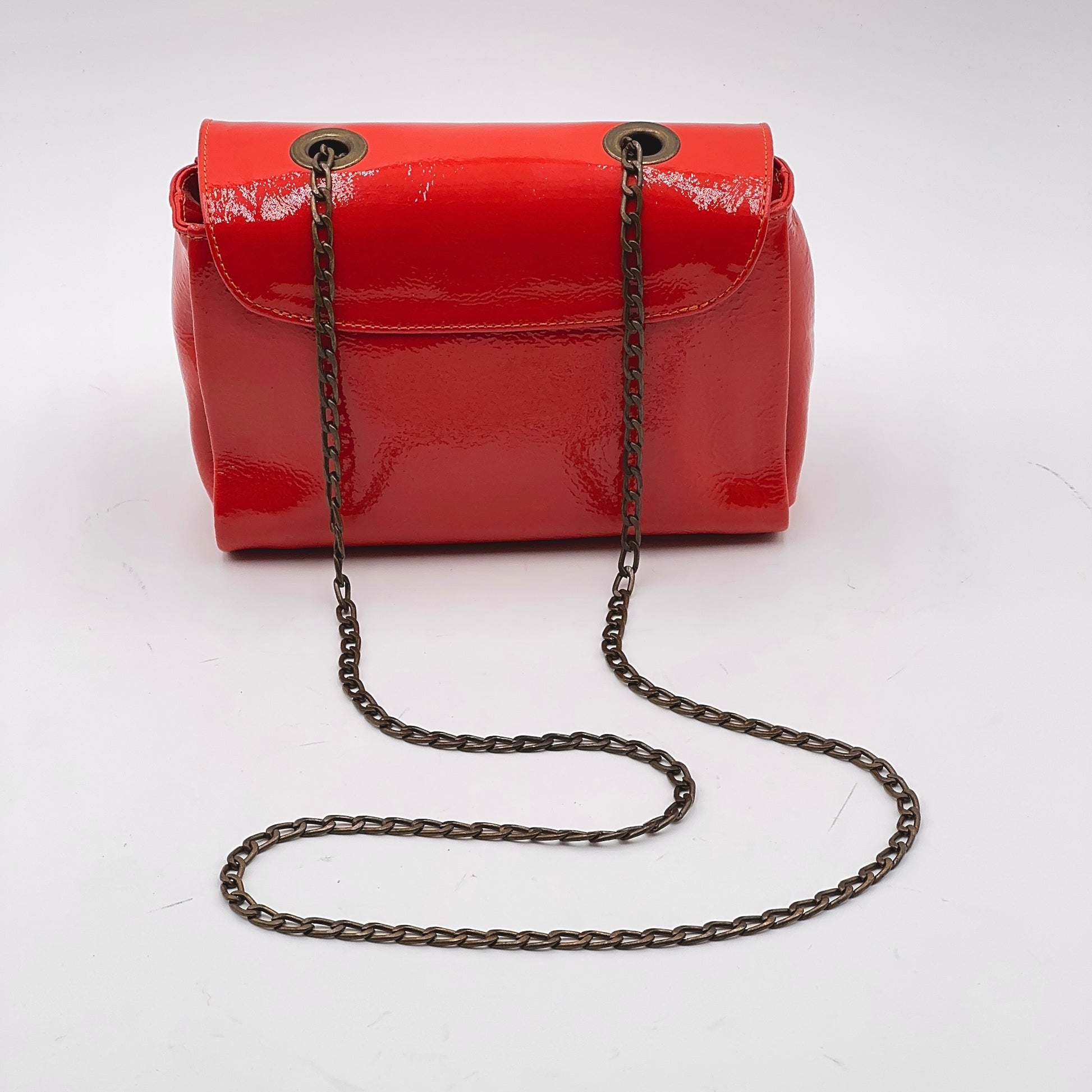 La tracolla in maglia di ottone, molto versatile, permette di portare la borsa a tracolla nella versione lunga oppure in spalla nella versione corta. Chiusura magnetica.