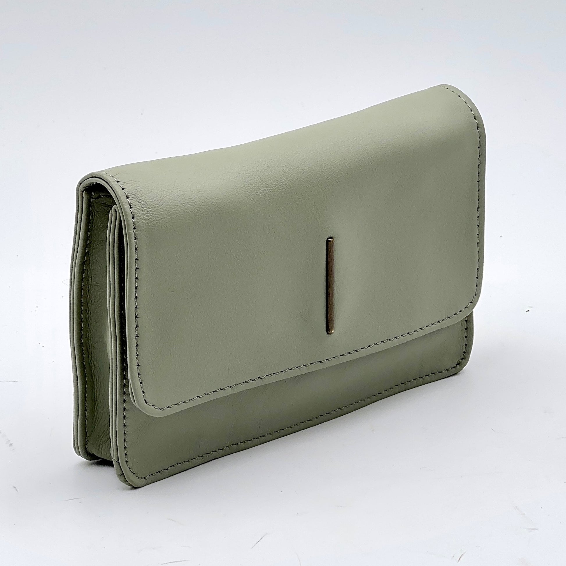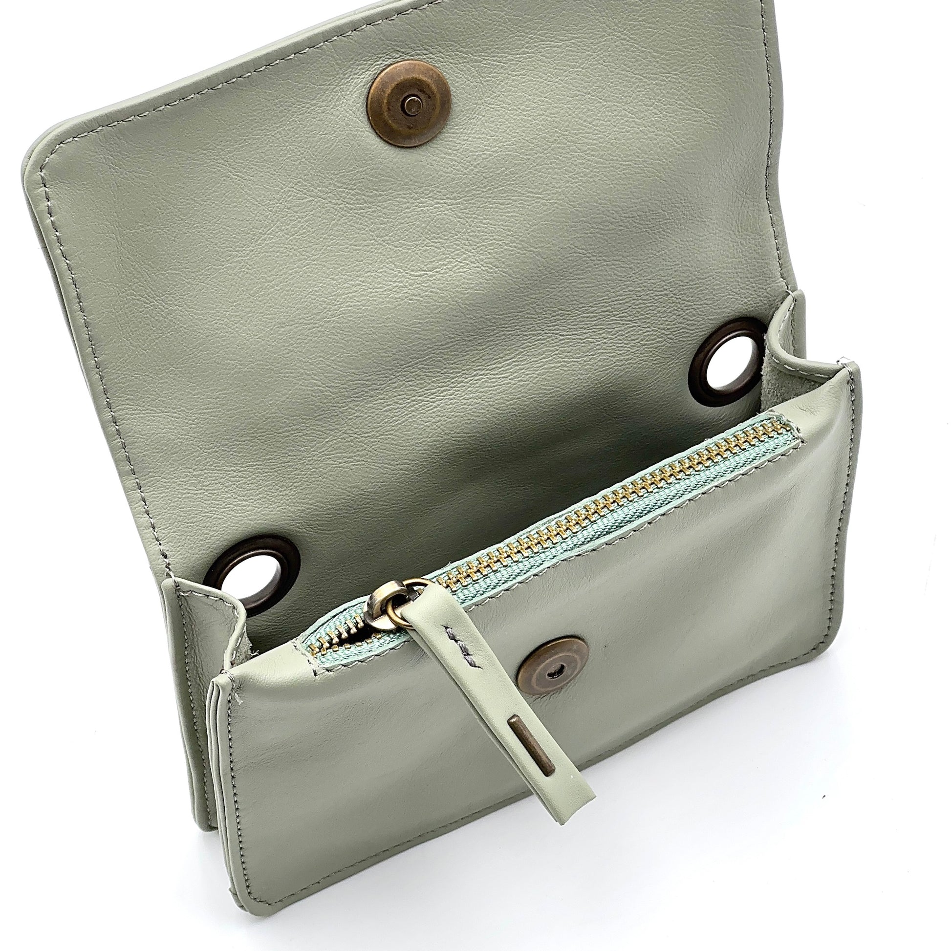 Senza accessori diventa un portafoglio compatto con due scomparti, uno dei quali chiuso da una zip in metallo.