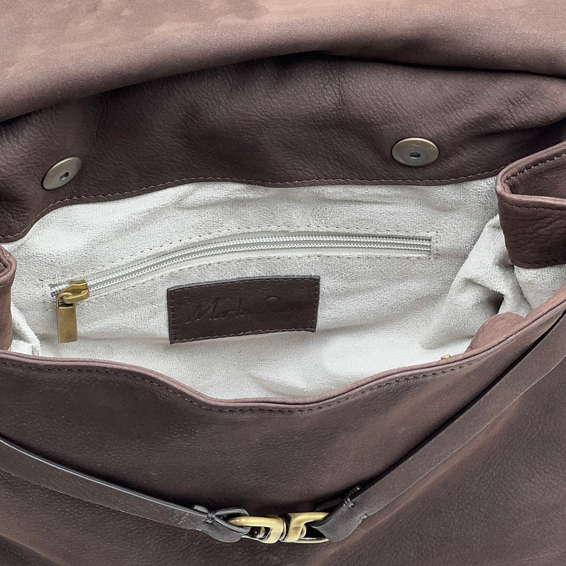 I dettagli artigianali come i rinforzi cuciti a mano, la fodera in microfibra chiara e gli accessori in ottone spazzolato rendono Jessica24 una compagna quotidiana essenziale e senza tempo.