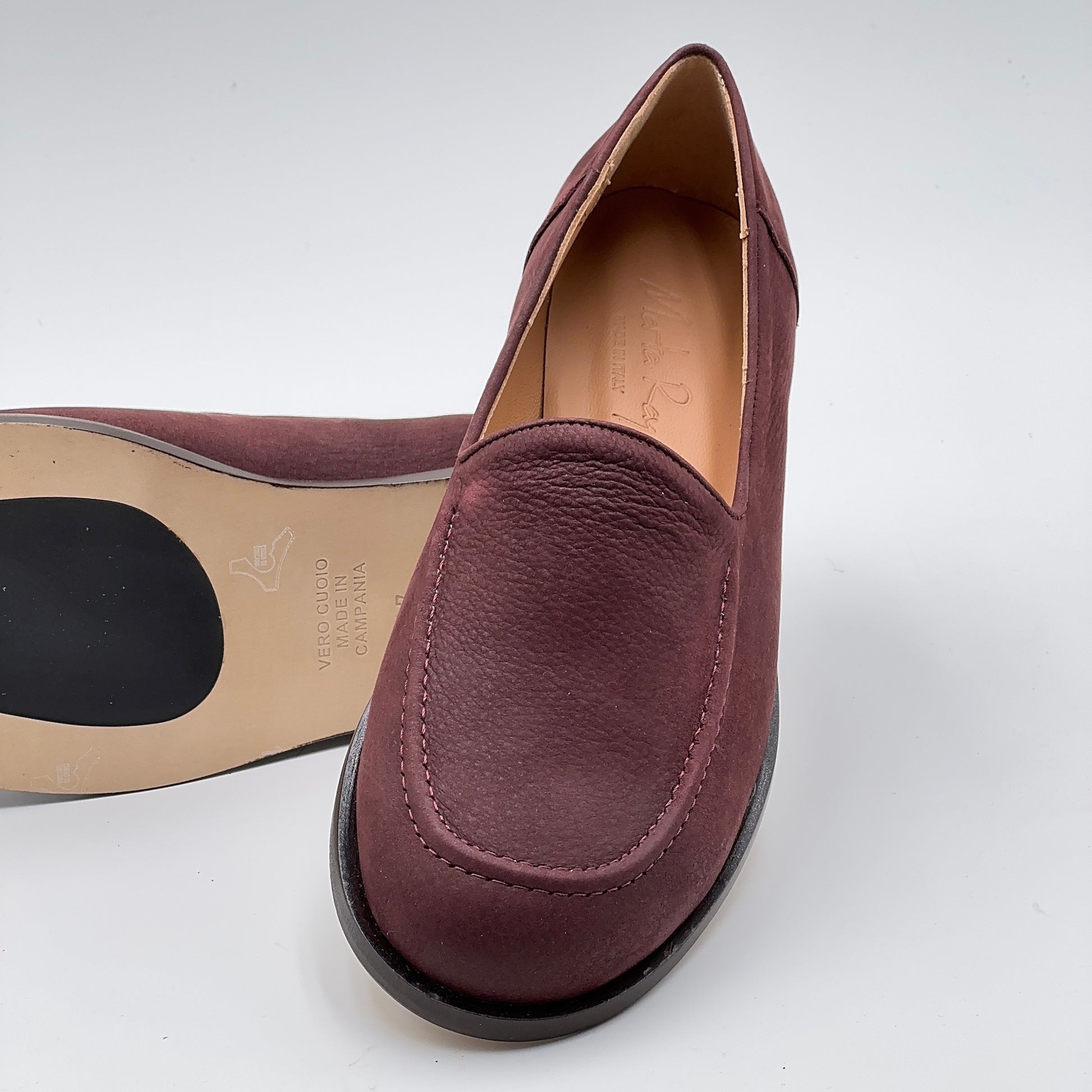 Mocassino dal design essenziale in pelle pieno fiore, color bordeaux.