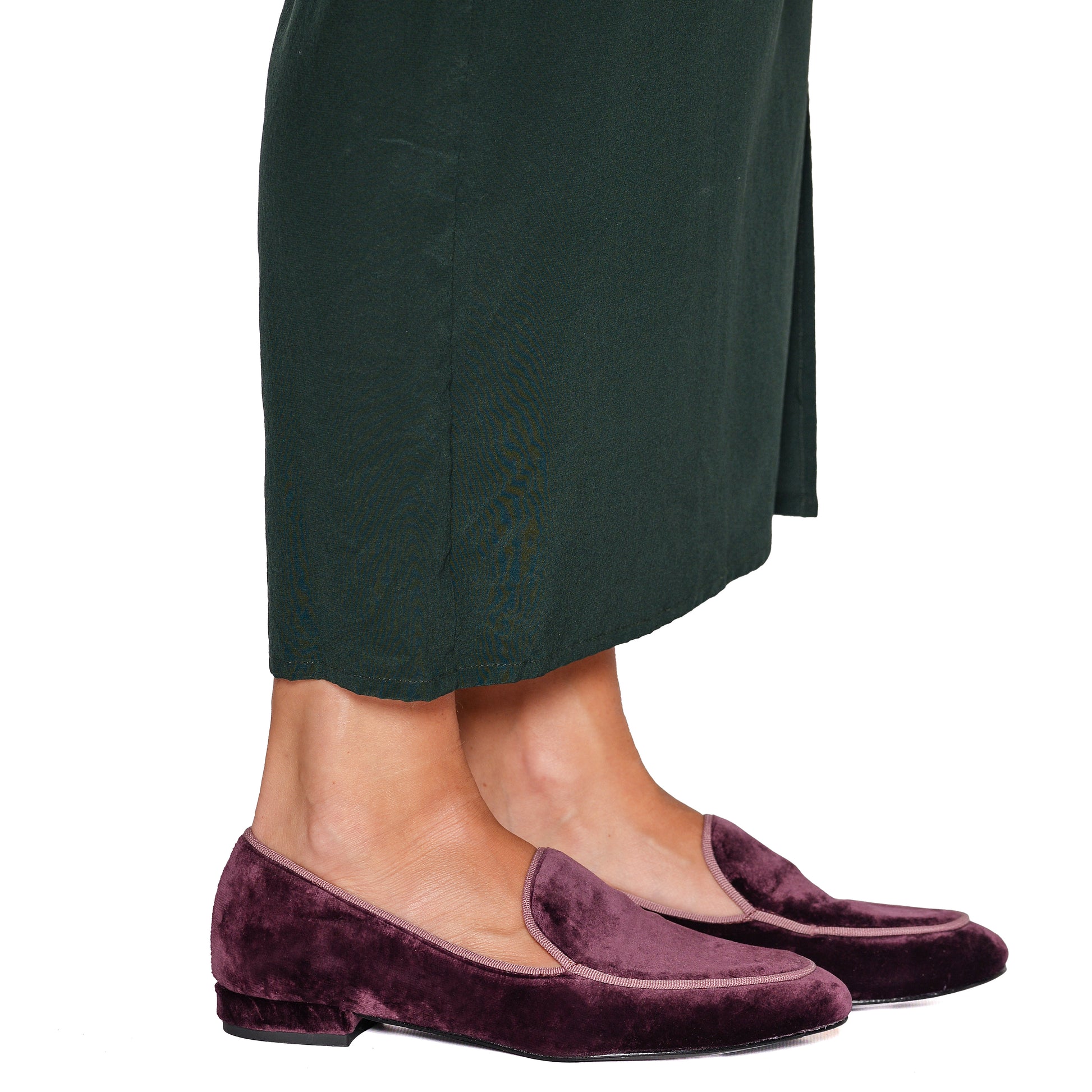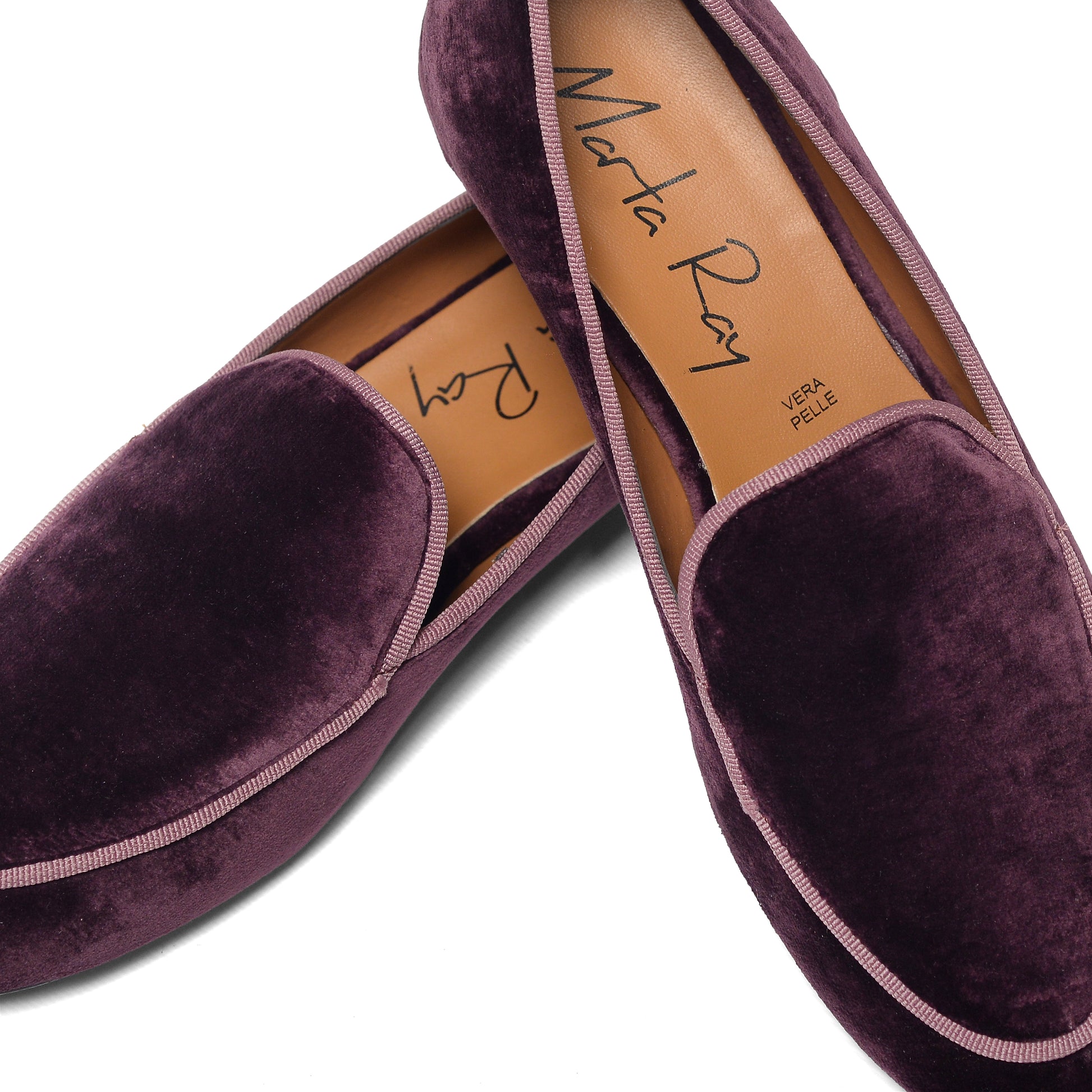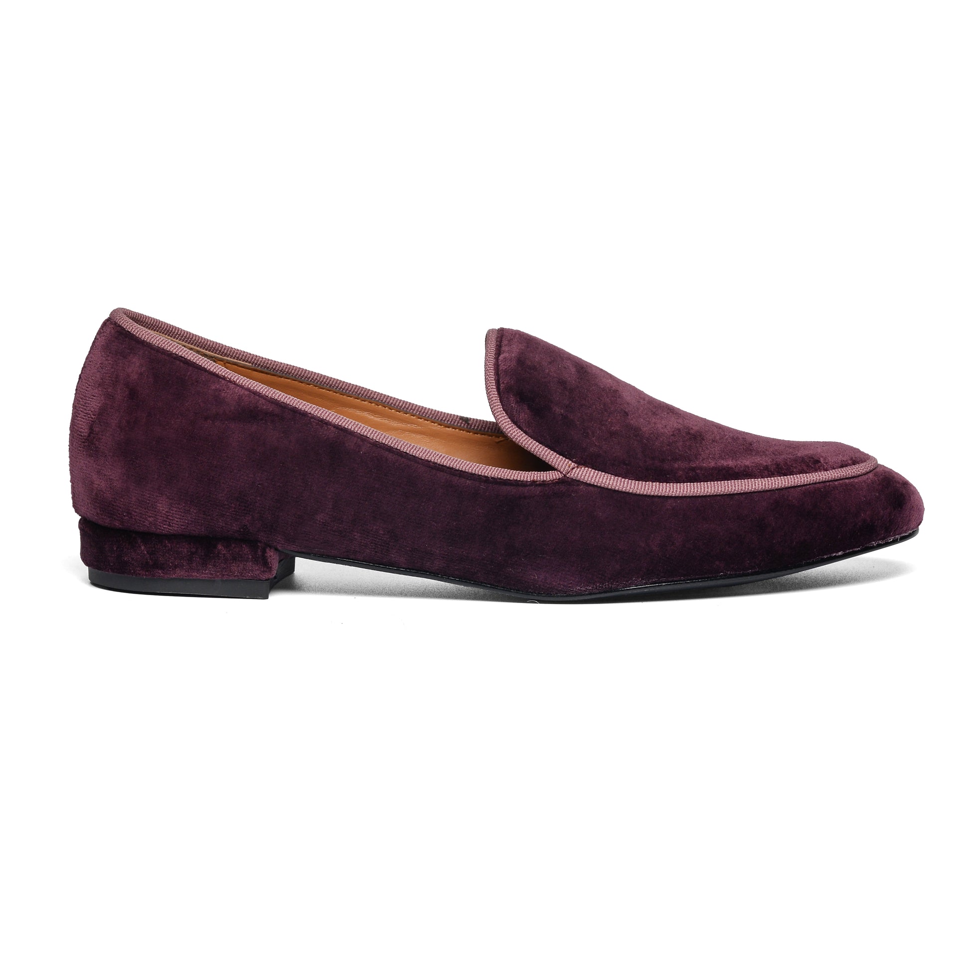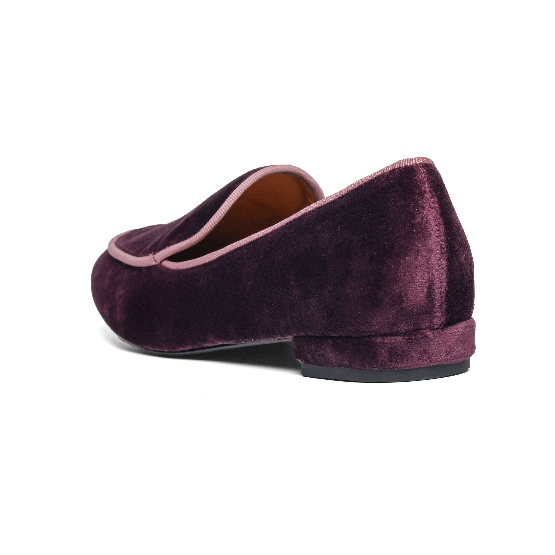 Realizzato in velluto, il mocassino presenta una linea pulita ed è dotato di profilo bordato in contrasto cromatico. Con un tacco basso per un comfort ottimale, rappresenta un'opzione pratica ed elegante, senza però scendere a compromessi sulla versatilità.