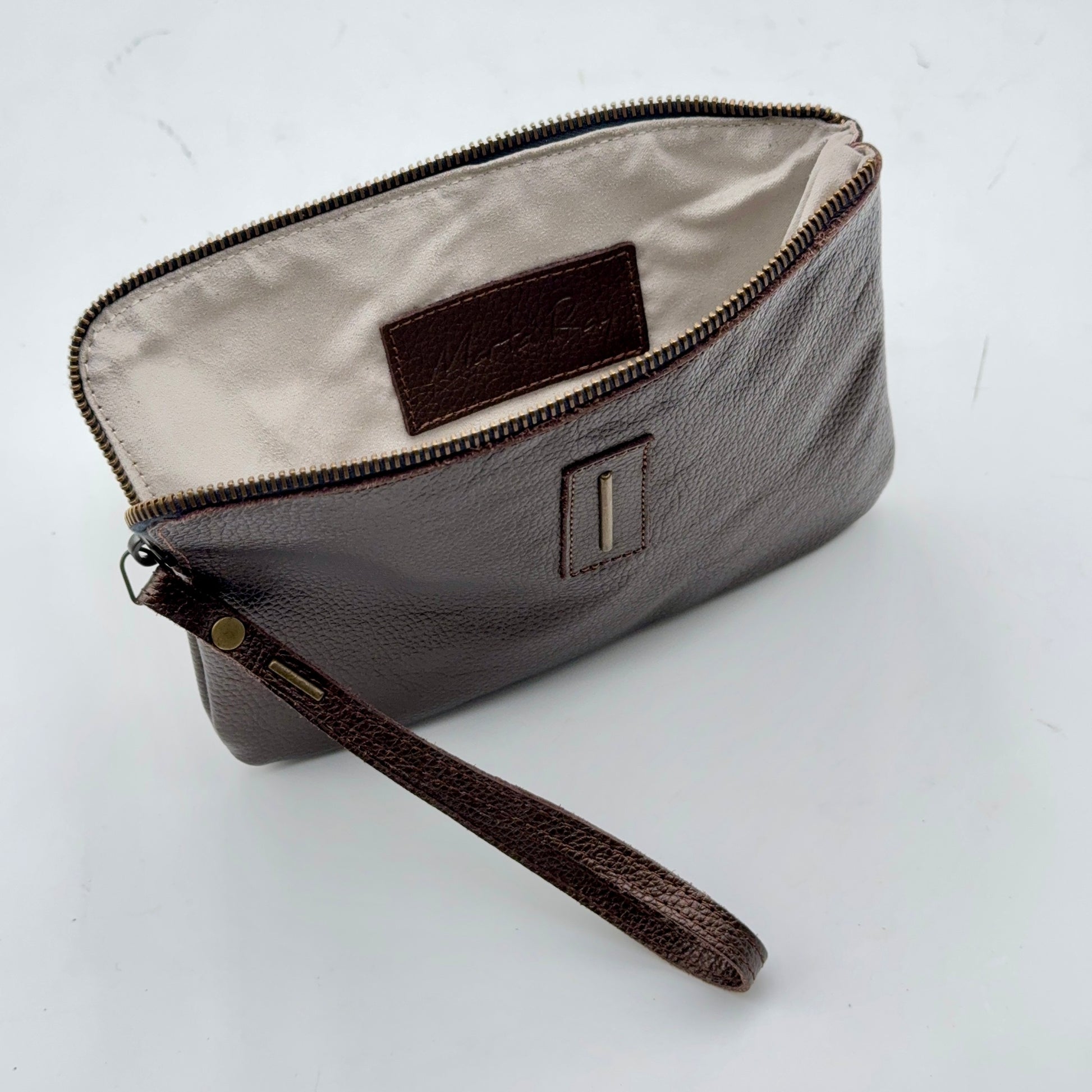 Ideale per organizzare la borsa. Chiusa da una zip in ottone che supera il lato lungo, per permettere una apertura ampia.