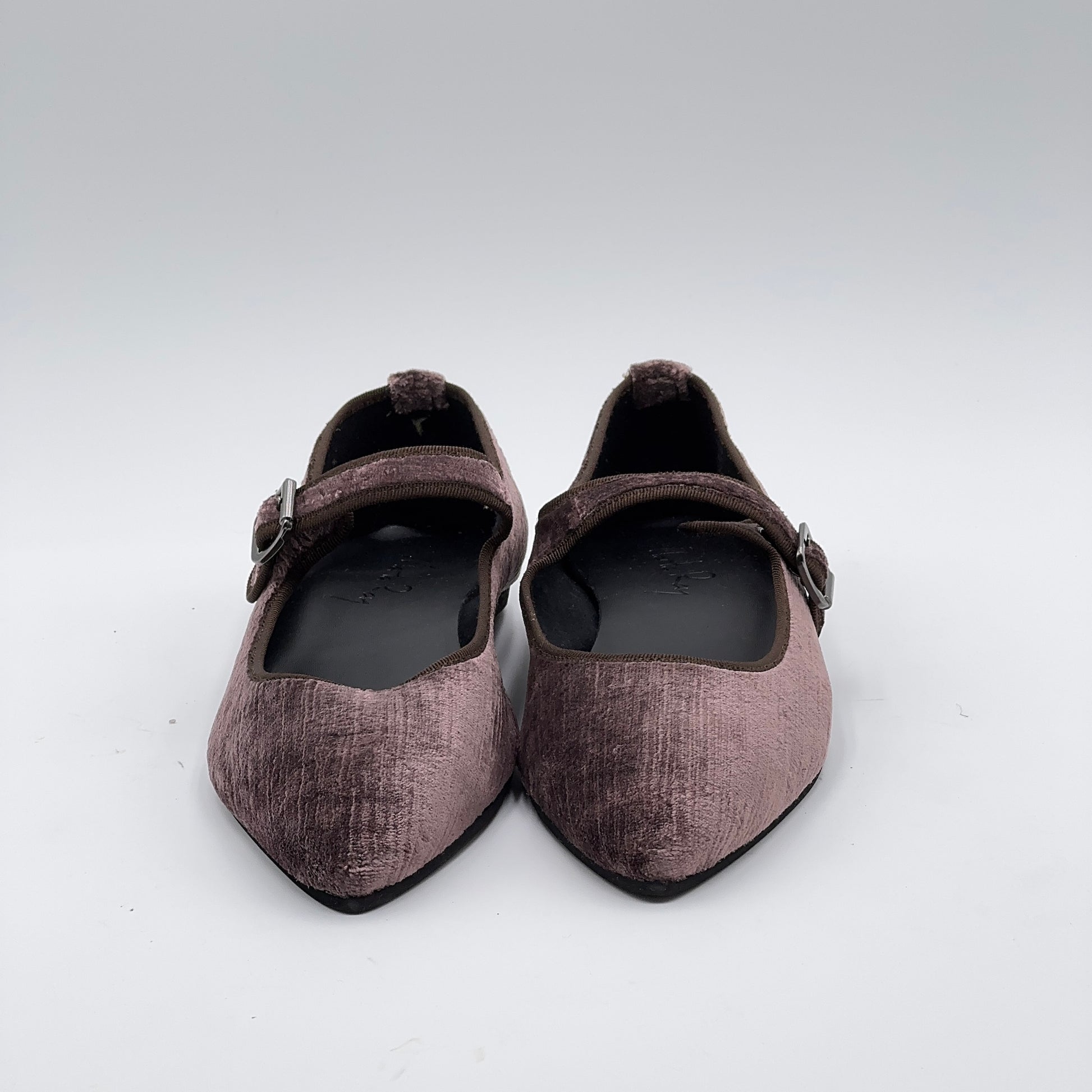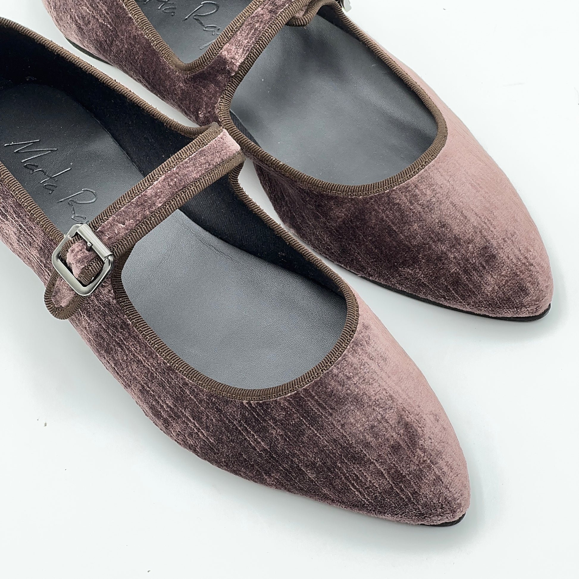 Delicata ma con carattere. Flavia MJ nel colore marrone perlato unisce la morbidezza del velluto e la forma senza tempo delle mary-jane.