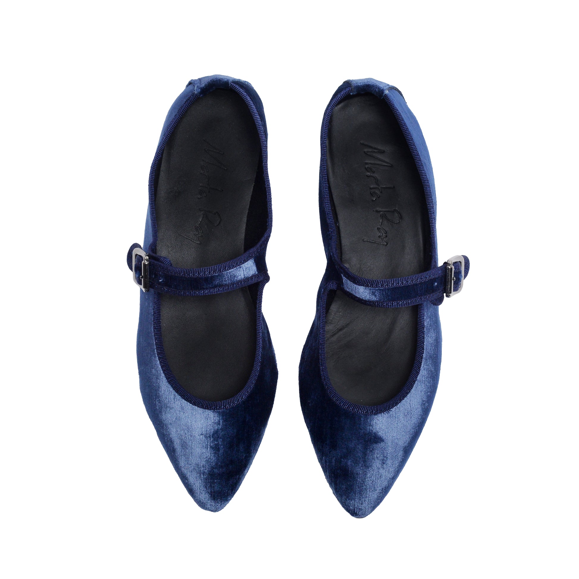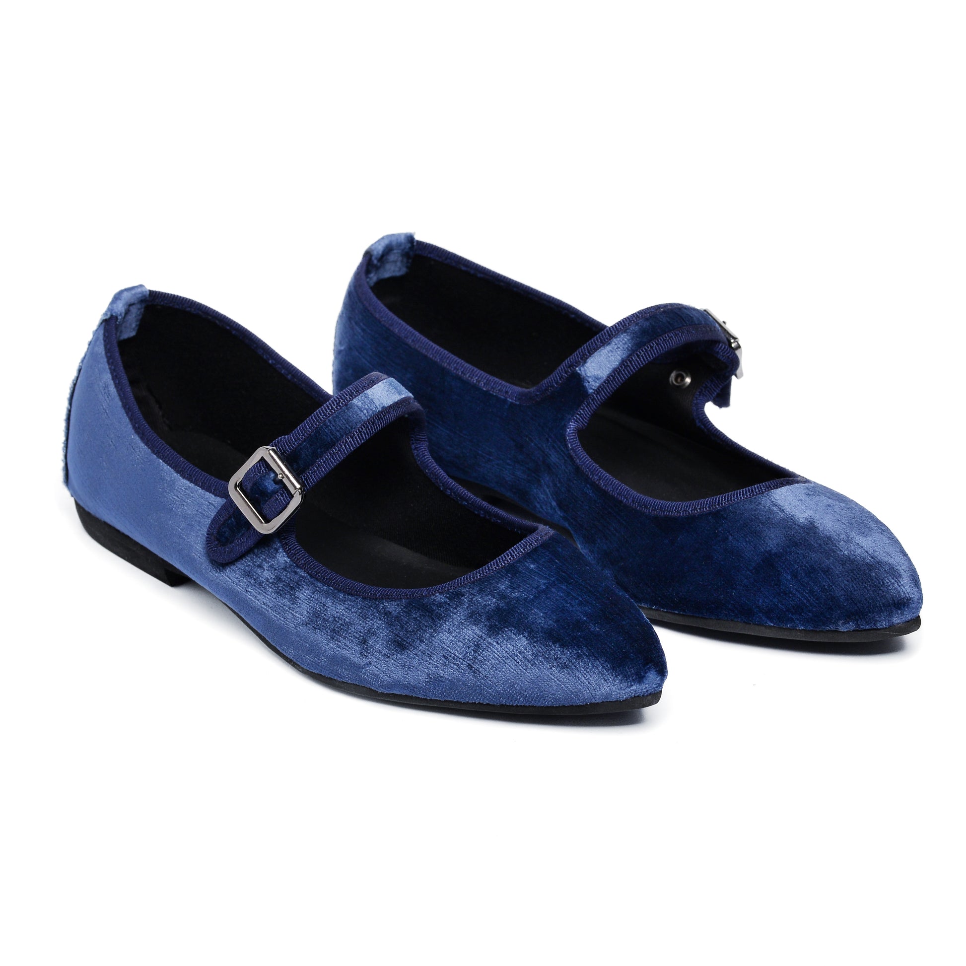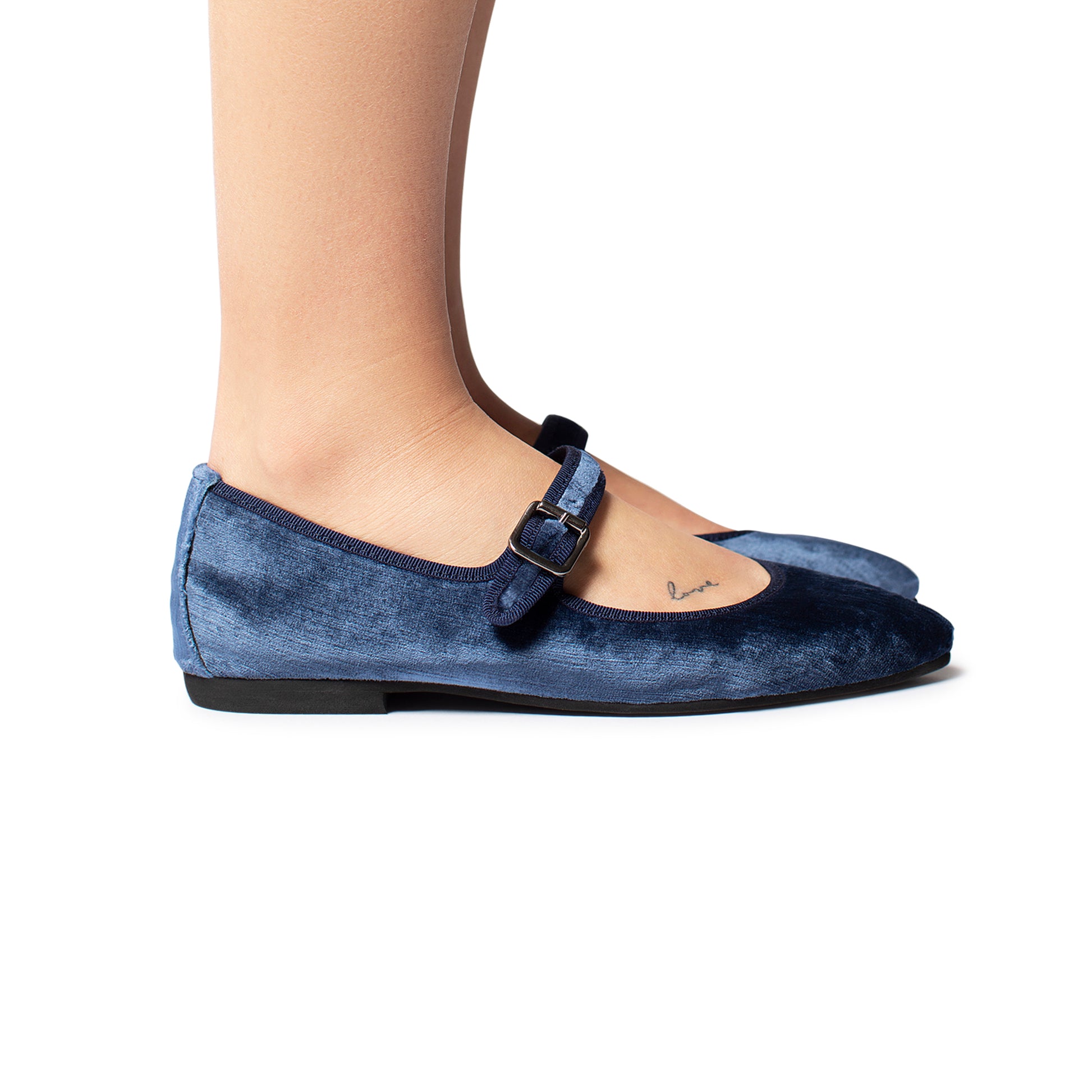 Comoda Scarpetta rialzata Mary Jane in velluto perlato mosso.