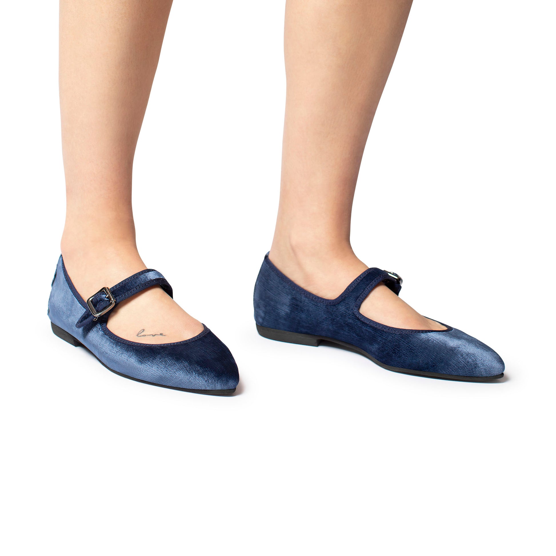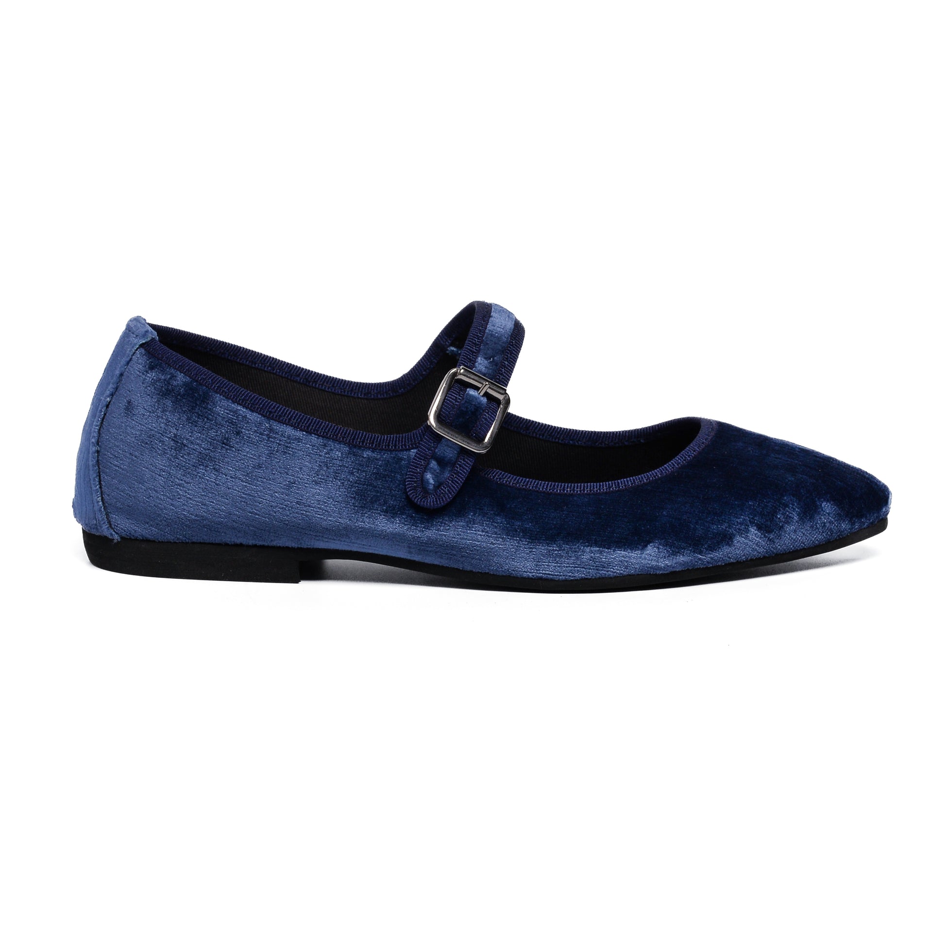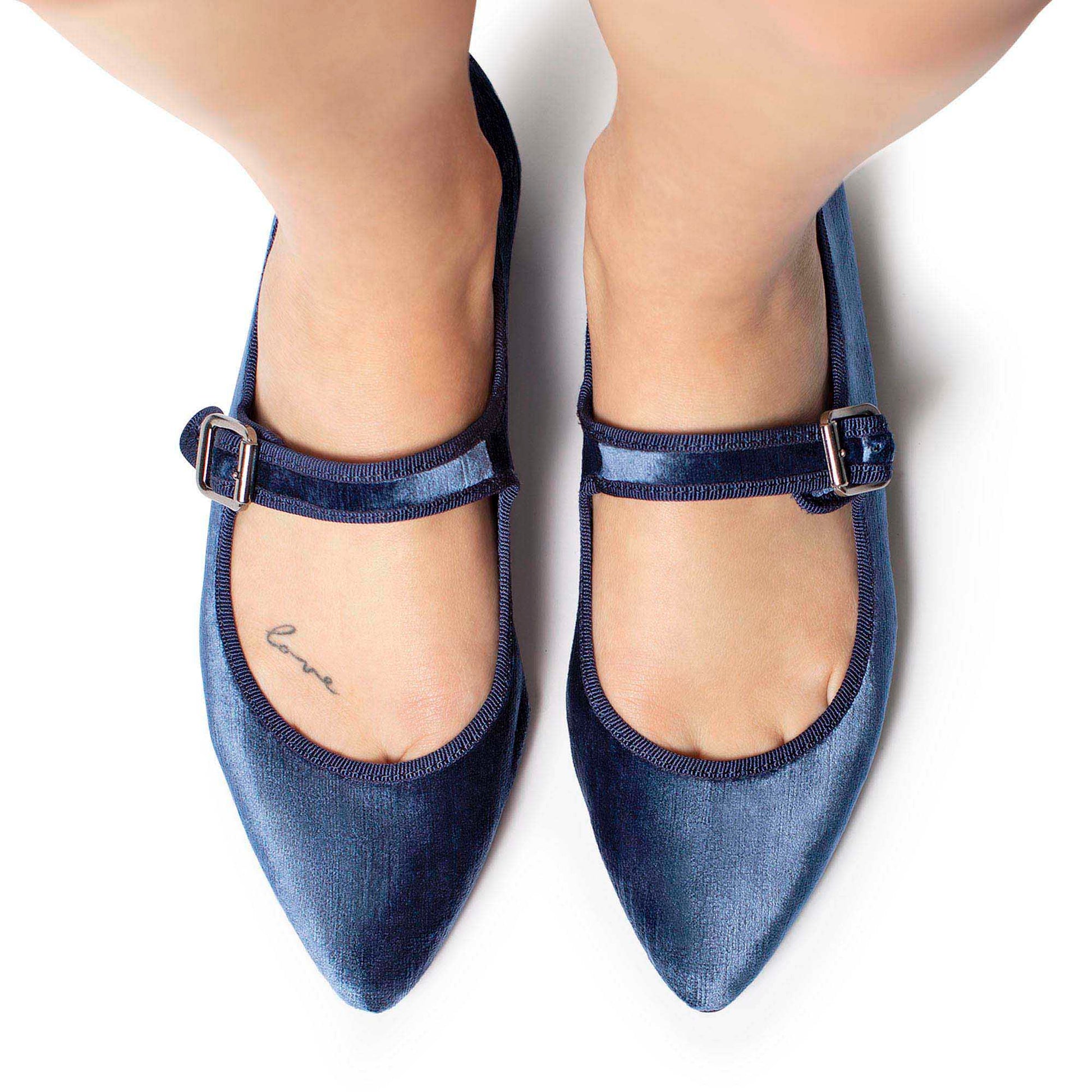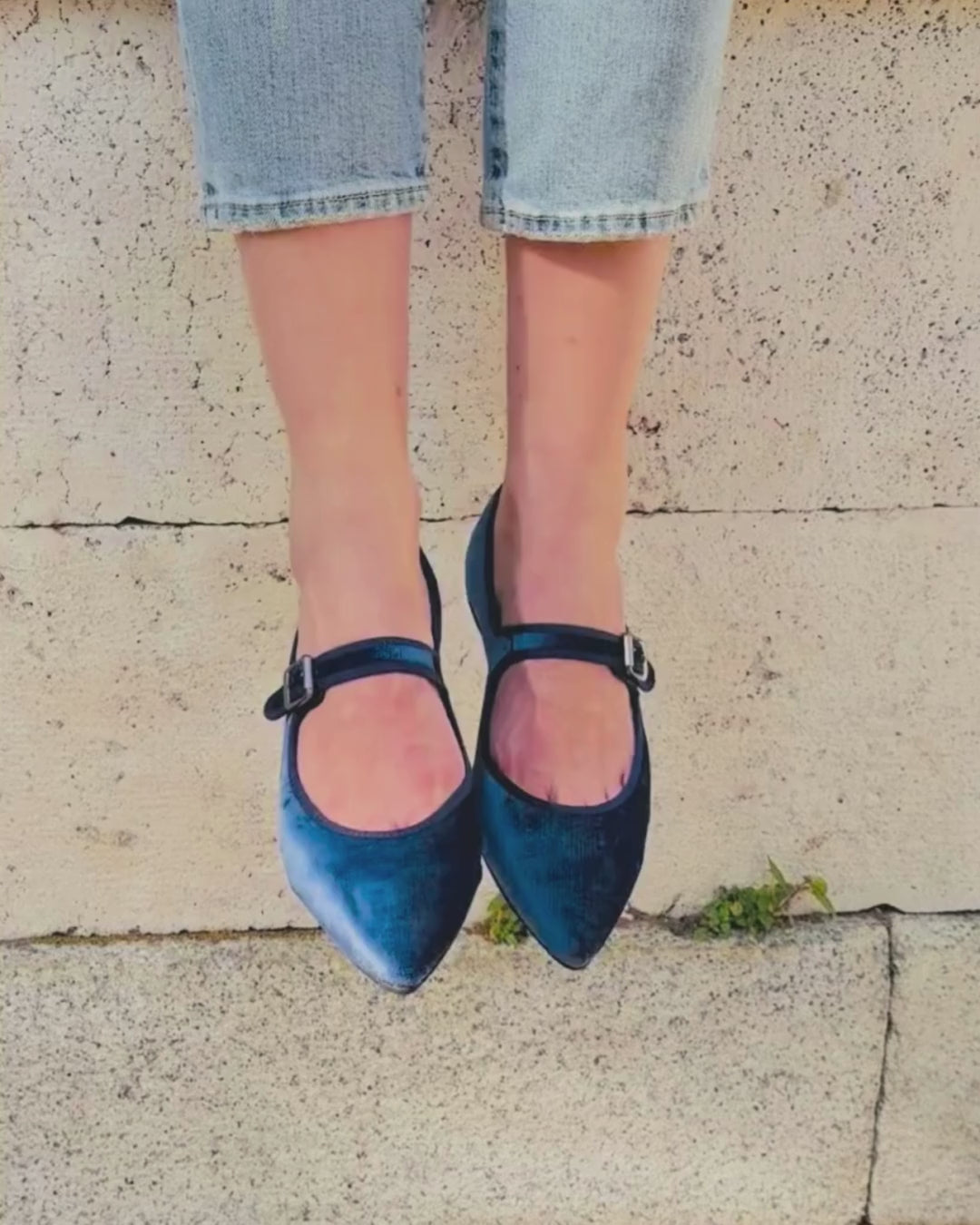 Comoda Scarpetta rialzata Mary Jane in velluto perlato mosso.