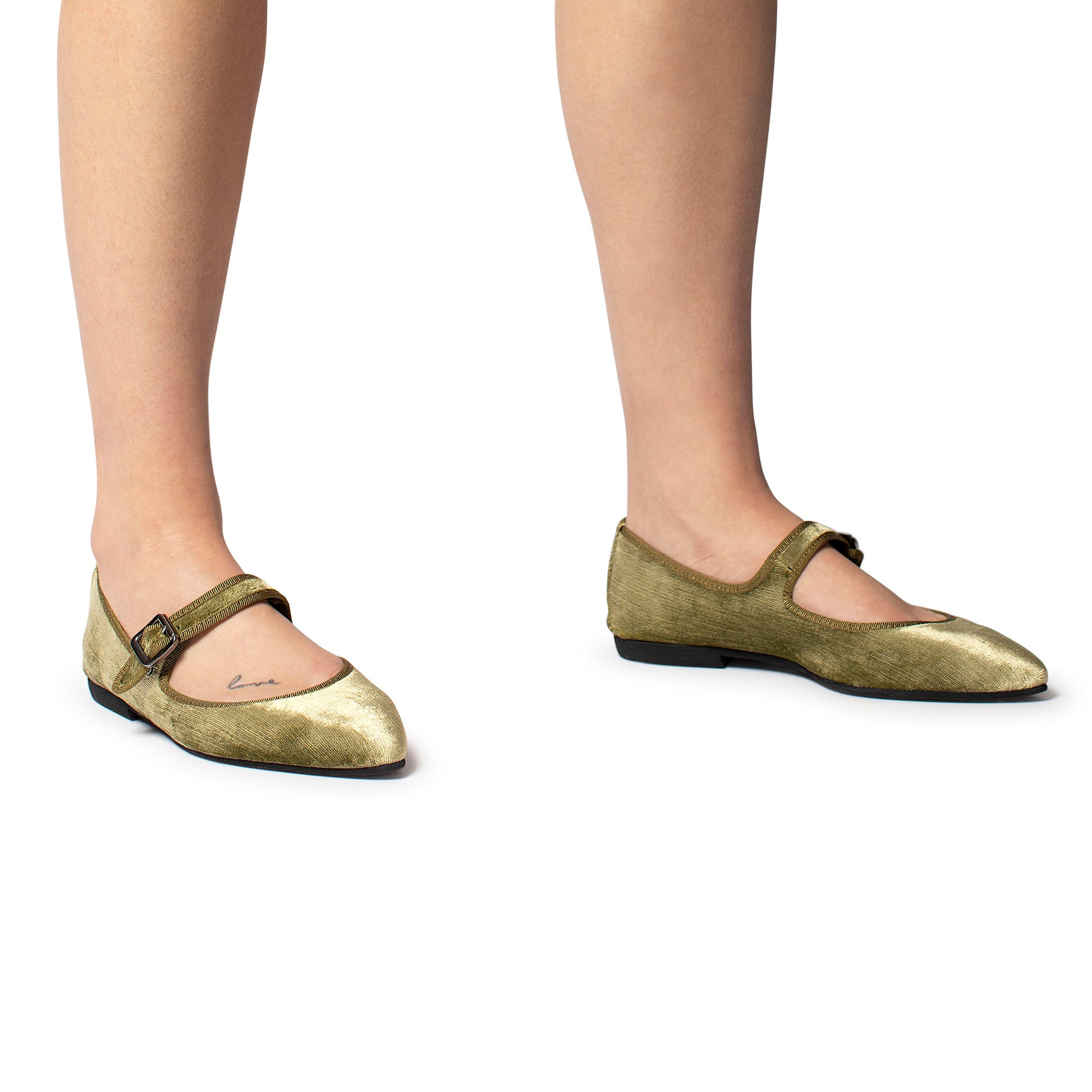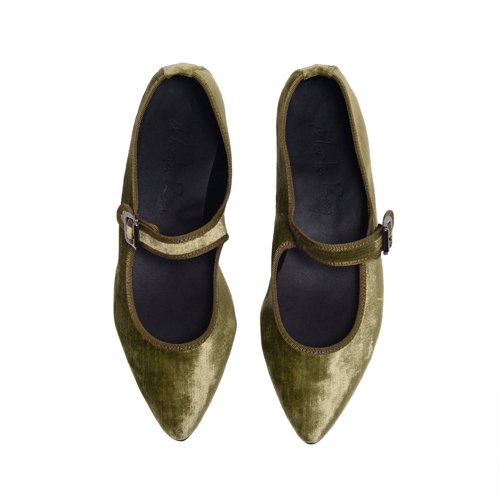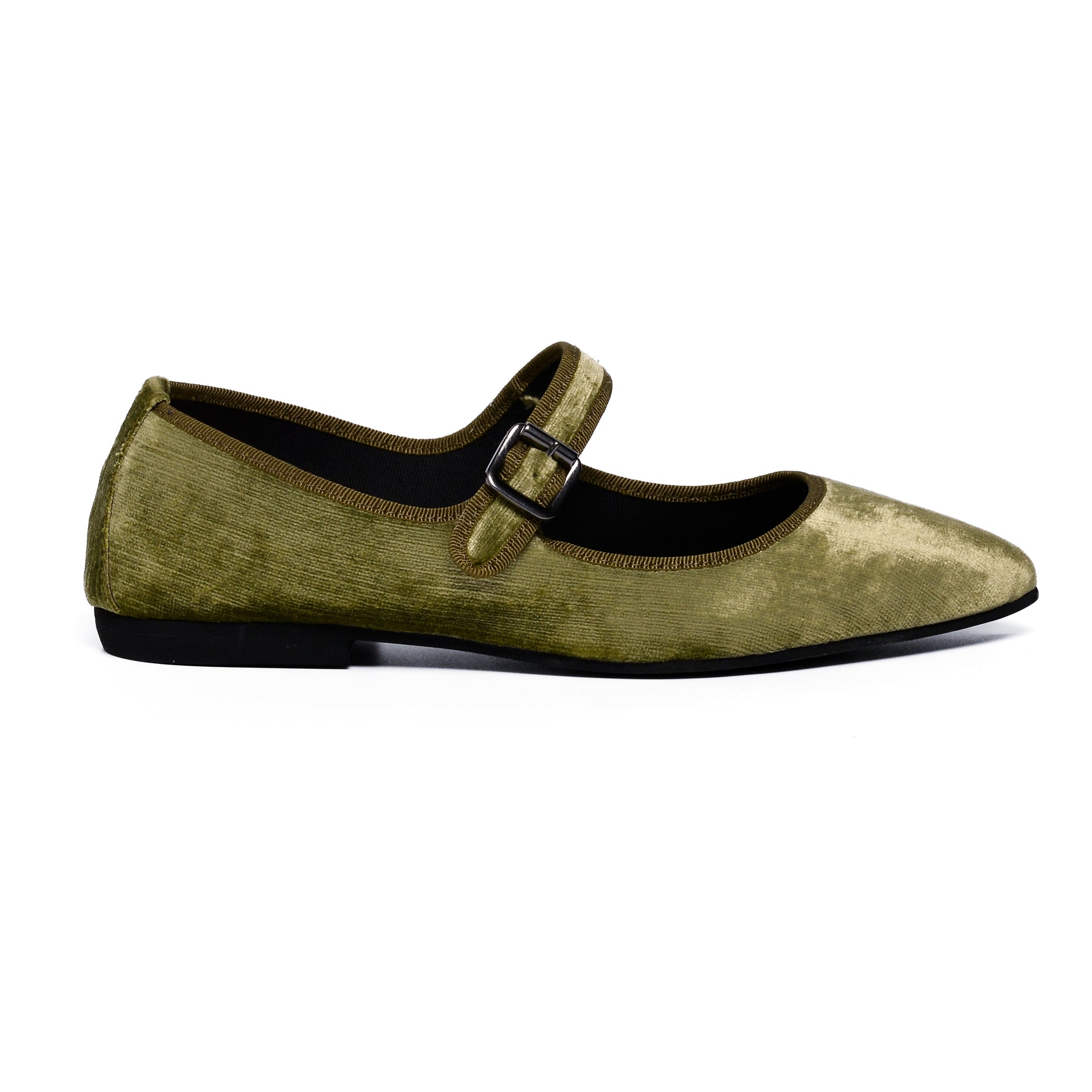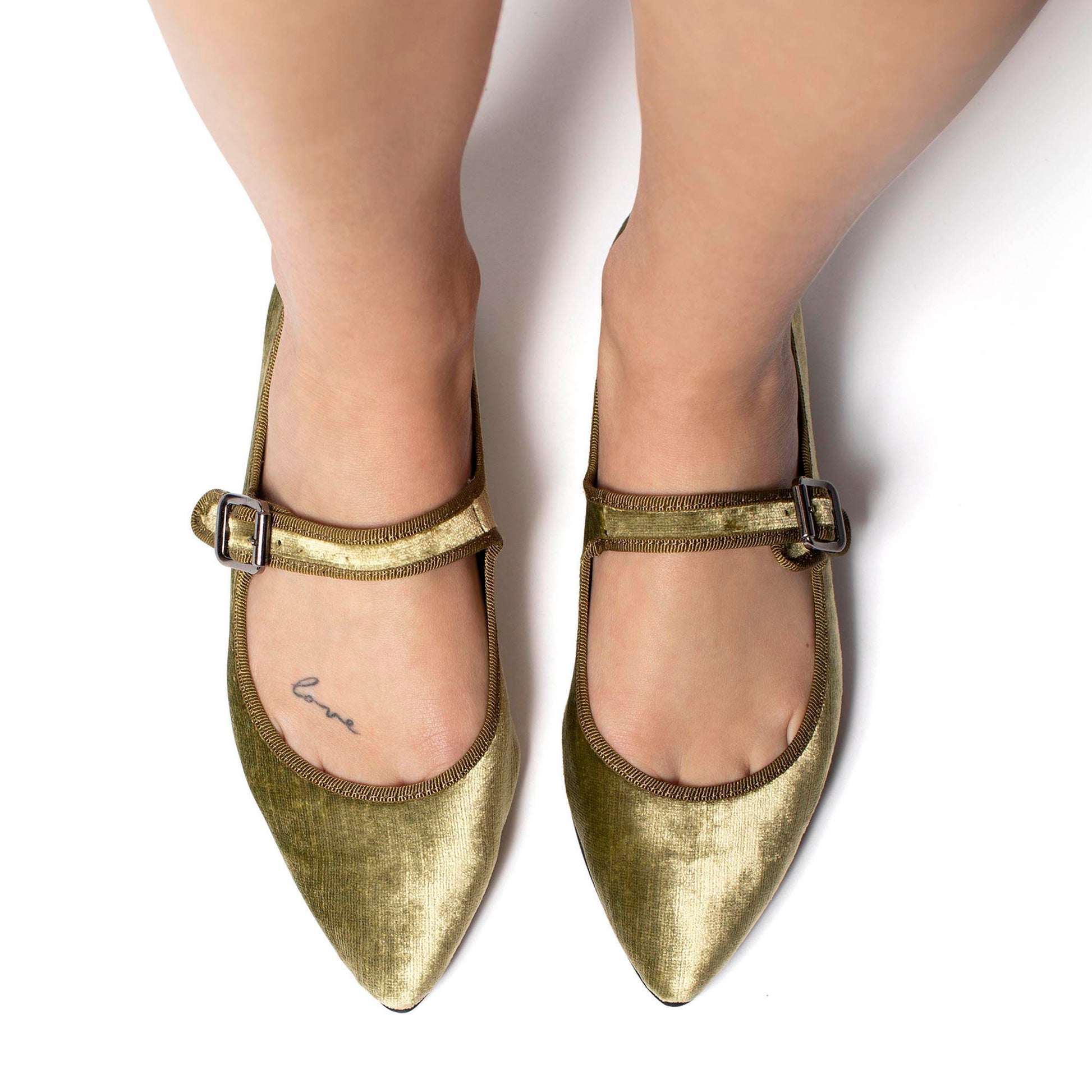 Comoda Scarpetta rialzata Mary Jane in velluto perlato mosso.