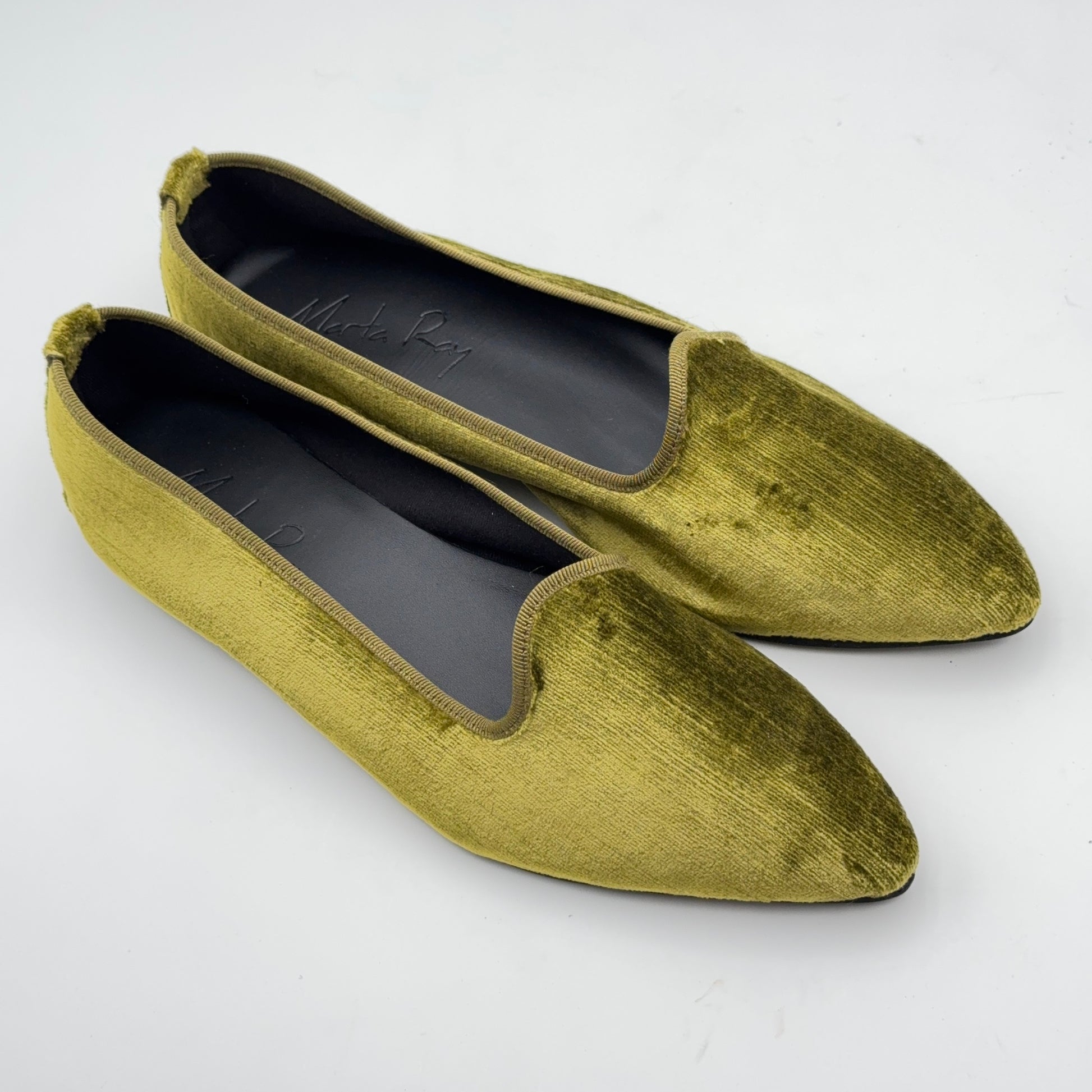 Friulana a punta realizzata in un morbido velluto che ben si abbina a questo modello.