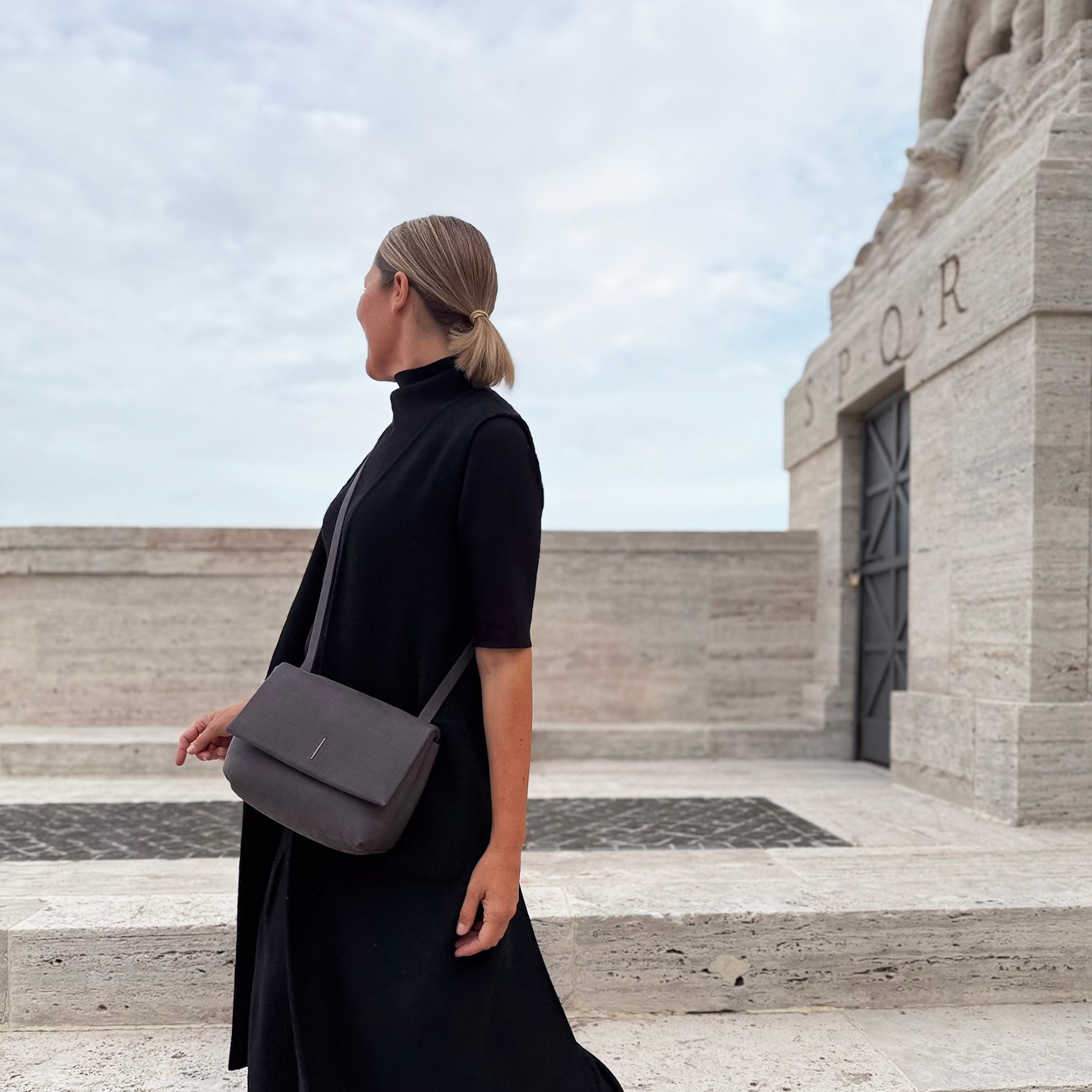 Borsa di medie dimensioni in pelle Long Beach color fumo, una tonalità di grigio elegante e senza tempo. Leggera e morbida al tatto grazie all’imbottitura, mantiene comunque la forma e si adatta con naturalezza. Patta con chiusura magnetica, tracolla regolabile, interno foderato in microfibra con tasca. La pelle Long Beach ha un carattere naturale e opaco, che con il tempo diventa ancora più morbido e unico.